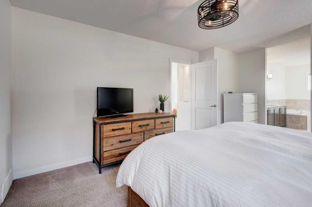 Inside, the home offers 4 bedrooms and 3.5 bathrooms, thoughtfully designed for both comfort and functionality. The primary suite is a true retreat, featuring a spacious layout, walk-in closet, and a luxurious 5-piece ensuite with dual vanities and a relaxing soaker tub. Two additional generously sized bedrooms upstairs each include their own walk-in closets. The upper level is completed by a bright and spacious bonus room with built-in storage and a dedicated upper laundry room.