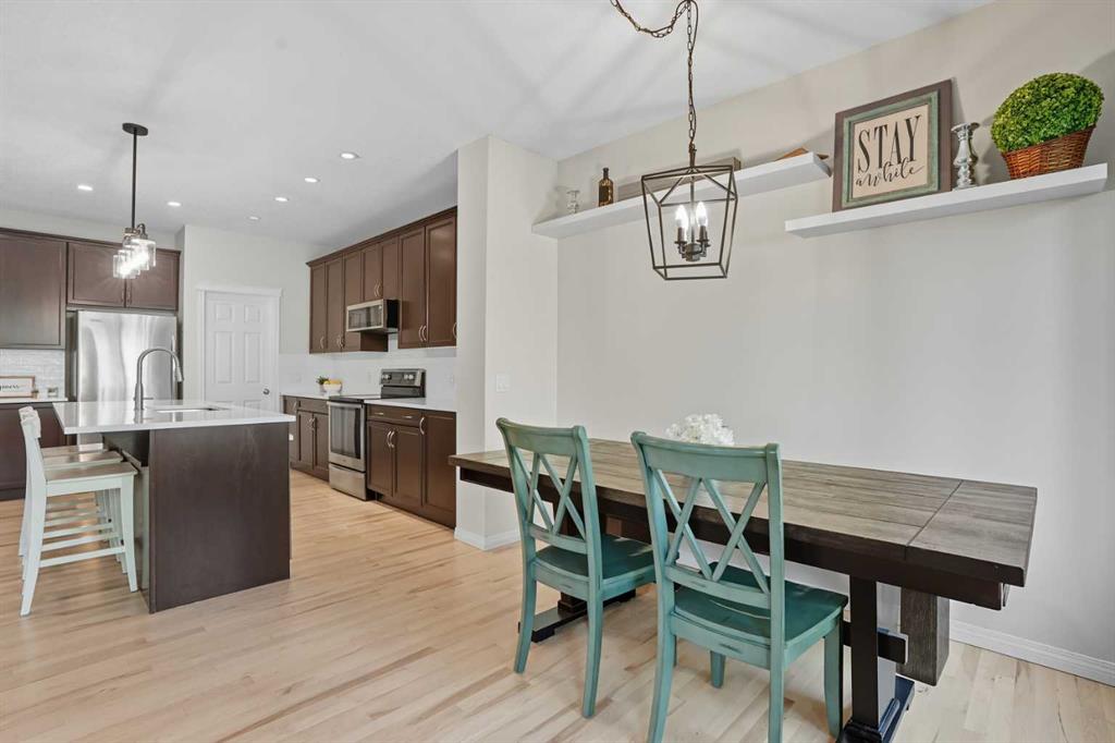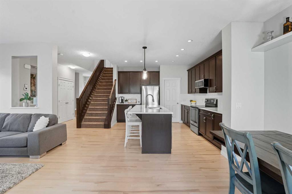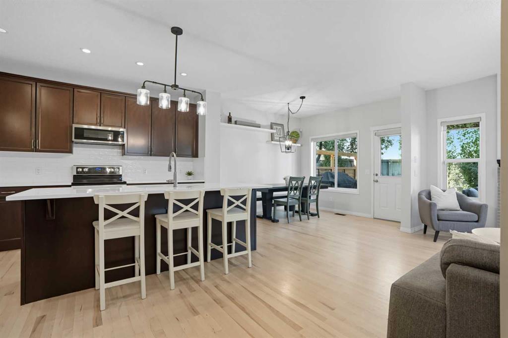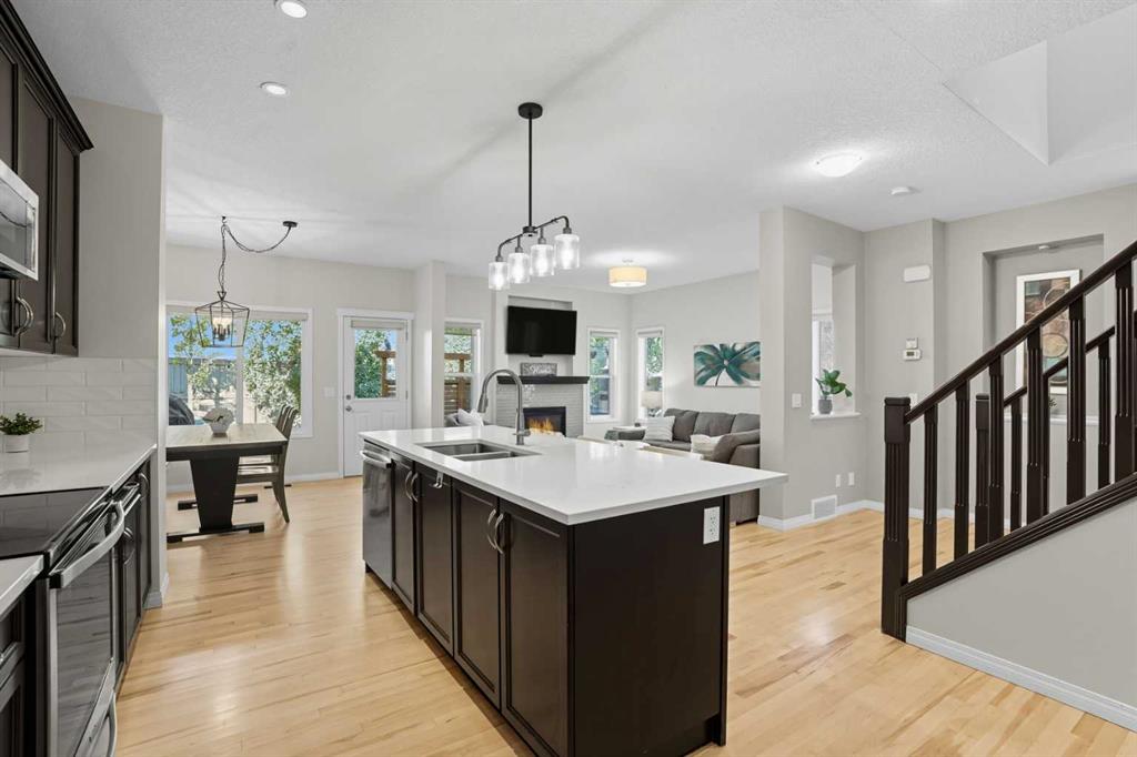 Welcome to this 4 bedroom, 4 bathroom, FULLY FINISHED home in the sought-after community of Kincora. This home is situated on a pie-shaped lot, backing a walking path and only a short drive to all the amenities you need. This home offers pride in ownership and has been freshly painted. Walk inside and be greeted by a functional and thoughtful layout, with a large entry featuring a built-in bench and stunning hardwood floors ( Recently refinished) . The OPEN FLOOR plan features a cozy living room with a gas fireplace and mantel with a recessed space perfect for the TV. The Dining room is spacious and connects to the Kitchen. The kitchen is truly the heart of this home with a massive island with BRAND NEW WHITE QUARTZ counters, plenty of cabinets, plus a walk-through pantry with more cabinets and counter space. The pantry connects to the boot room right off the DOUBLE ATTACHED GARAGE and again offers even more storage. Upstairs you will find at the top of the stairs two well-sized bedrooms both with WALK-IN CLOSETS (One having built in organizer), a 4 piece bathroom with matching quartz counters, and a walk-in LAUNDRY ROOM with even more built-in storage! There is a large west-facing BONUS room with built-in cabinetry and desks and the PRIMARY BEDROOM is tucked away with a 5 piece ENSUITE and WALK-IN CLOSET with Custom built in organizer! The basement has been professionally finished by the builder and features a large Family room with a built-in WET BAR, a FULL 4 piece Bathroom ( Great when you have company) and a 4th spacious Bedroom, plus there is a ton of extra storage in the utility room! The backyard is well-manicured with a tree line ( MUTURE FULL TREES THAT GIVE AMPLE PRIVACY IN THE SPRING and SUMMER) , a Composite Deck, and privacy walls, there is space and hookups for a hot tub, a Central AIR CONDITIONER, plus plenty of room for the kids and dogs to still play and run, the back fence also has access to the walking paths backing the property that will connect you to the fantastic walking paths through Kincora. As if this house isn’t perfect enough, it also has a brand new roof , siding and garage door! There is still enough time to move in before Christmas so book your showing TODAY!