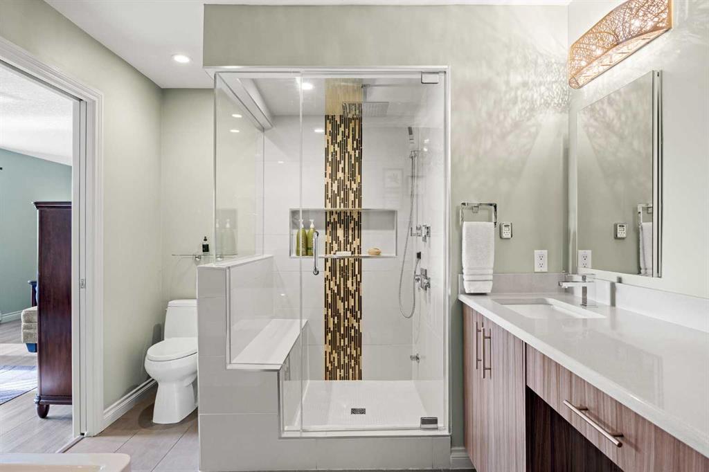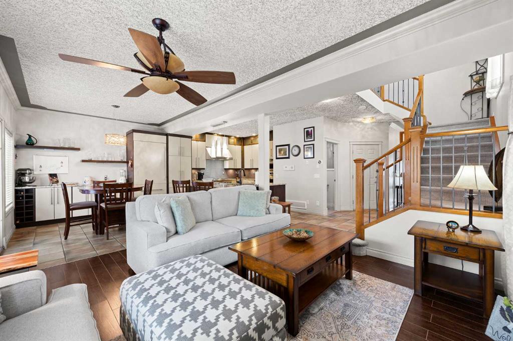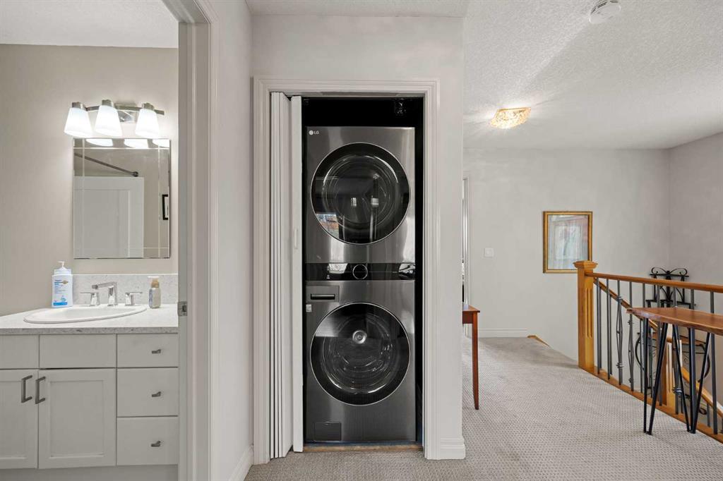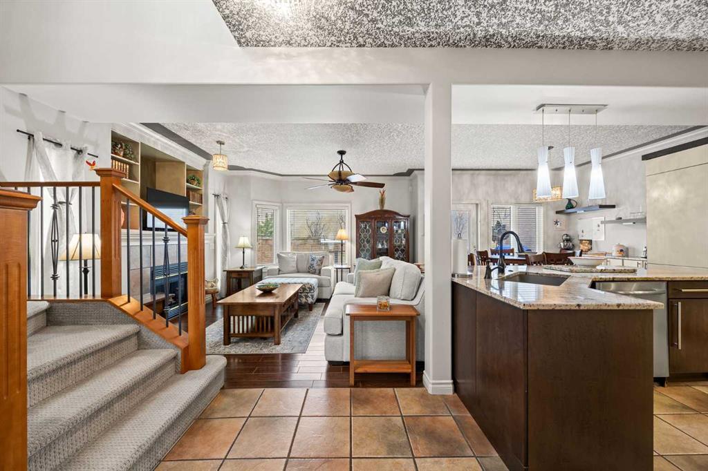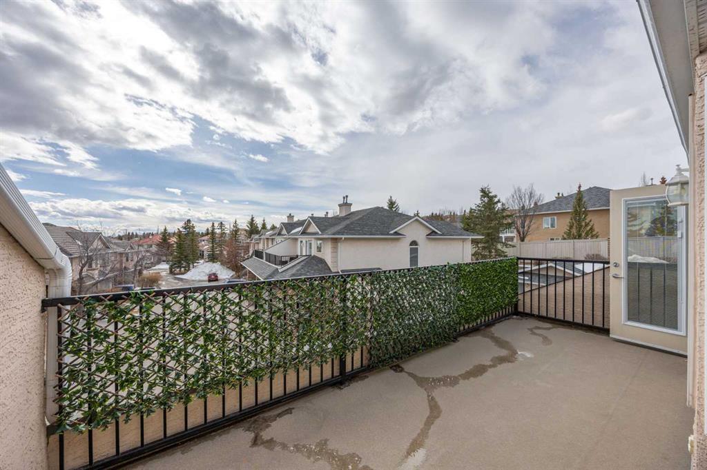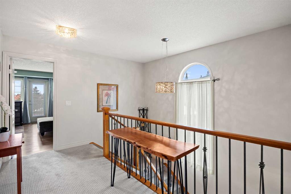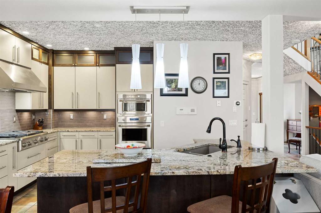 Set within Signal Hill Estates, this beautifully updated executive-style home blends comfort, quality, and thoughtful upgrades throughout. With extensive improvements already completed, this is a residence you can move into and enjoy from day one. The main floor offers an open and inviting layout designed for both everyday living and entertaining. Tiled flooring runs through the entry, kitchen, and dining areas, while warm hardwood anchors the living room, where a gas fireplace creates a welcoming focal point. At the heart of the home is a custom-designed kitchen built with exceptional attention to detail. Full ceiling-height cabinetry provides abundant storage and incorporates soft-close doors and drawers, built-in recycling and garbage, spice storage, and under-cabinet lighting. Premium appliances include a Sub-Zero refrigerator and Monogram gas range with grill, along with a built-in oven and microwave/speed oven. Granite countertops, a subway tile backsplash, custom hood fan, and a generous island complete a space that is both highly functional and beautifully finished. The adjoining dining area opens directly onto a private deck with gas BBQ hookup, creating the perfect setting for summer evenings and outdoor dining. The living room offers a comfortable gathering space centred around the fireplace. Upstairs, the spacious primary retreat provides a peaceful escape, featuring a large walk-in closet and access to a private south-facing balcony with downtown skyline views for much of the year. The renovated spa-inspired ensuite includes a freestanding soaker tub, dual vanity, heated towel rack, and a luxurious steam shower with rain head, body jets, and glass enclosure. The upper level also includes a second bedroom and a flexible bonus room that can easily serve as a home office, media room, or third bedroom. A full bathroom and convenient upper-floor laundry with LG ThinQ high-capacity tower washer and dryer complete the level. The updated basement expands the living space with a large recreation room, an additional bedroom, a three-piece bathroom, and excellent storage. Fresh paint and new carpeting create a bright and comfortable environment for guests or family living. Numerous upgrades throughout the home enhance both comfort and efficiency, including triple-pane windows, central air conditioning, a new hot water tank, refurbished furnace, upgraded attic insulation, water softener, updated lighting with dimmers, high-quality ceiling fans, USB outlets, Nest thermostat, Phantom screen doors, and replaced door springs. The heated double attached garage is meticulously maintained and professionally serviced annually. The condominium board has also completed significant exterior improvements, including a new roof, upgraded eaves and downspouts, sealed driveway, new upper deck and railing, and enhanced irrigation. Combining thoughtful upgrades, executive comfort, and a prime location, this is a home that truly stands apart.