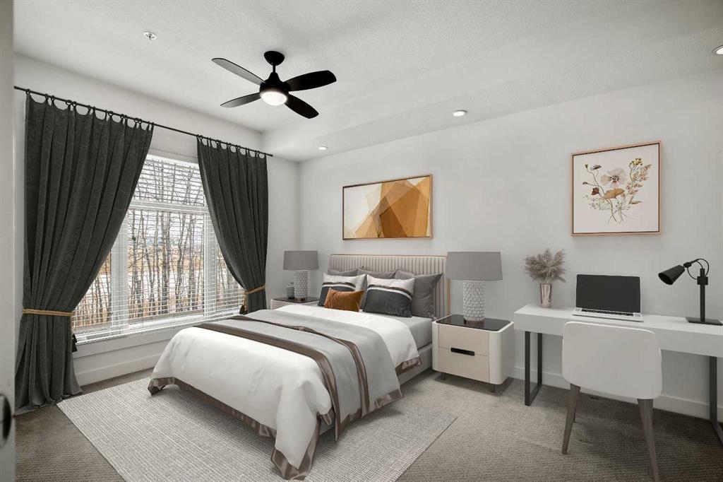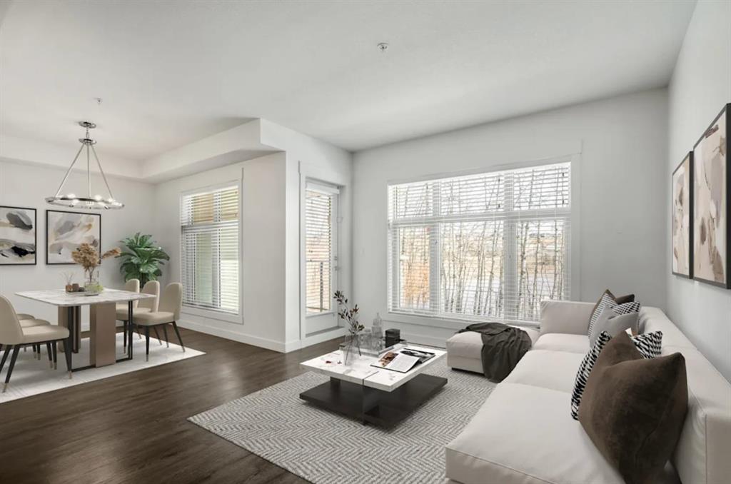 EXCEPTIONAL VALUE UNDER $320,000 l PRIVATE/SERENE PATIO l AMAZING LOCATION/WALKING DISTANCE TO SAFEWAY l LARGE WALK-IN CLOSET l UNDERGROUND PARKING l Welcome to Valmont at Aspen Stone, nestled in the heart of highly desirable Aspen Woods. This beautifully maintained ground level, 1 bedroom, 1 bathroom condo offers 673 sq ft of bright, functional living space with a modern, open-concept design. Large windows fill the home with natural light and overlook a peaceful grove of aspen trees, creating a private, serene setting. Enjoy the comfort of in-floor heating throughout. The contemporary kitchen features granite countertops, stainless steel appliances, refinished cabinetry, a new microwave, and a convenient breakfast bar, perfect for casual dining or entertaining. The spacious bedroom comfortably fits a king sized bed with additional room for a desk or sitting area, and includes a ceiling fan with light and large closet space. The well appointed 4-piece bathroom showcases a tiled tub surround. Additional highlights include in-suite laundry, updated light fixtures, and a private patio backing onto tranquil green space where you may spot local wildlife. This unit comes complete with secure underground parking (ideally located near the unit), separate storage, and intercom access for visitors. Residents enjoy excellent building amenities including a fitness centre (2nd floor), bike storage, elevators, and rentable guest suites. Condo fees include heat, water, and sewer. Ideally situated within walking distance to Aspen Landing Shopping Centre, restaurants, and everyday amenities, plus close to parks, pathways, transit, and top-rated schools. An exceptional opportunity to own in one of Calgary’s most prestigious communities. Quick possession available.