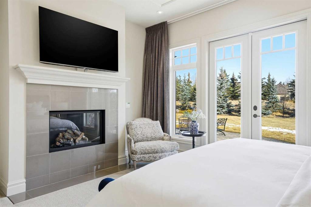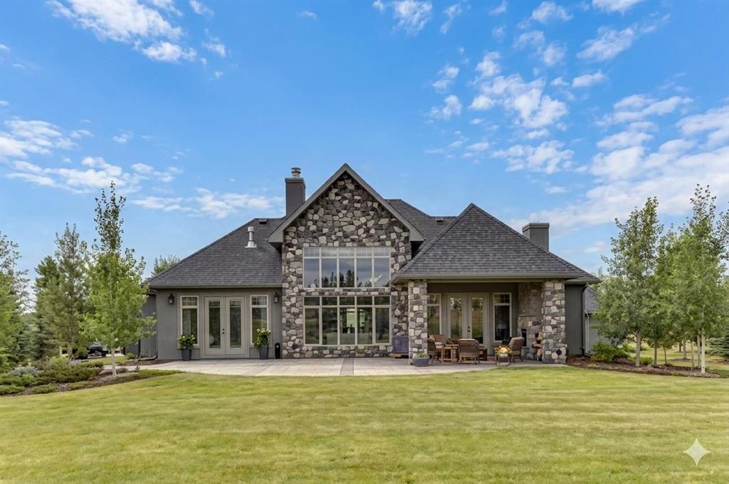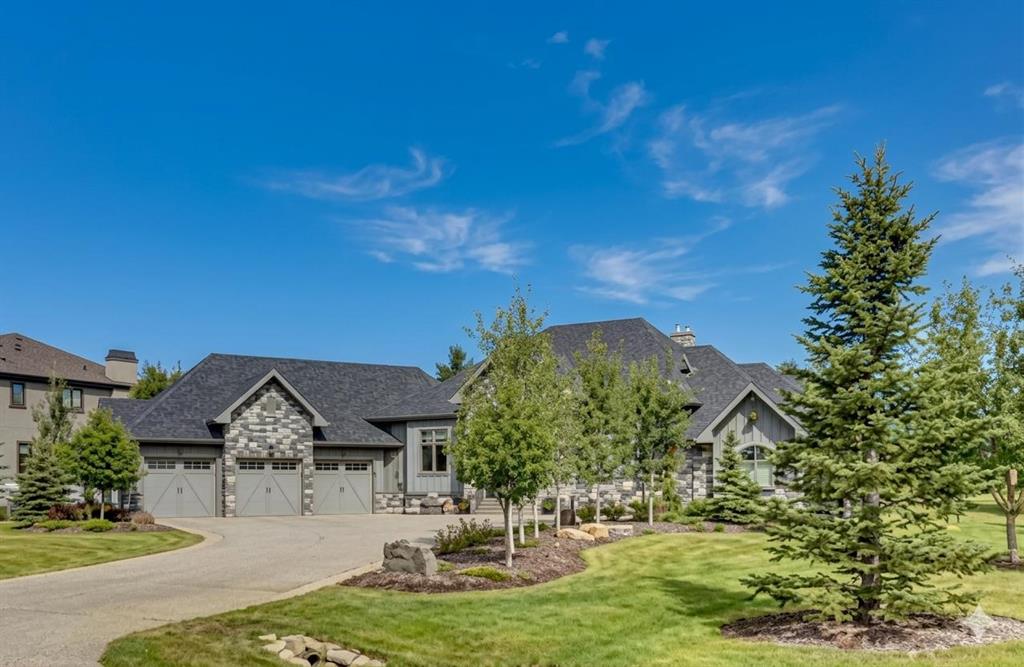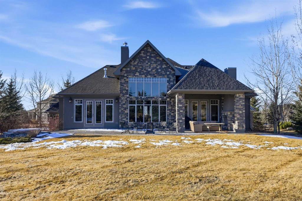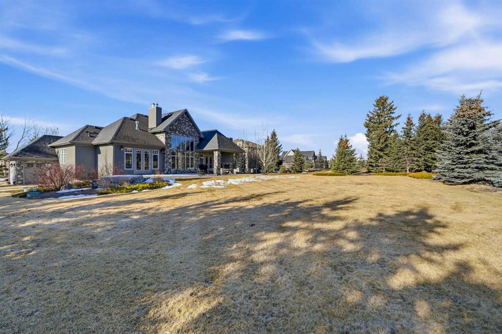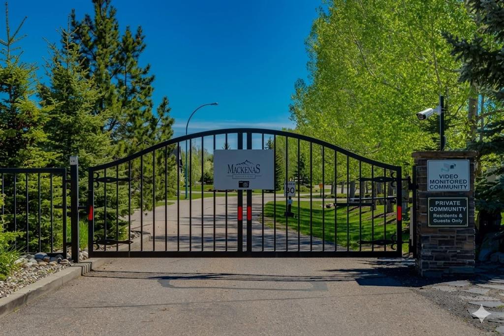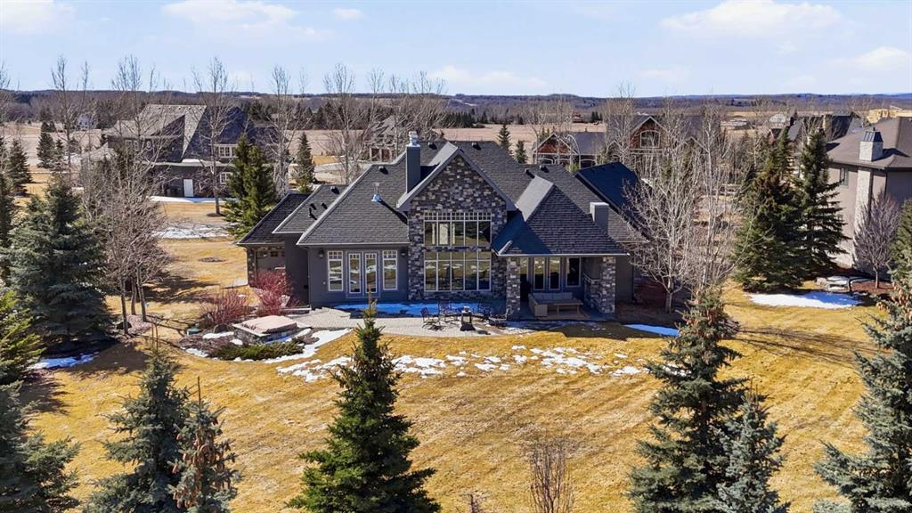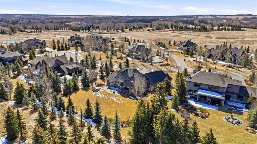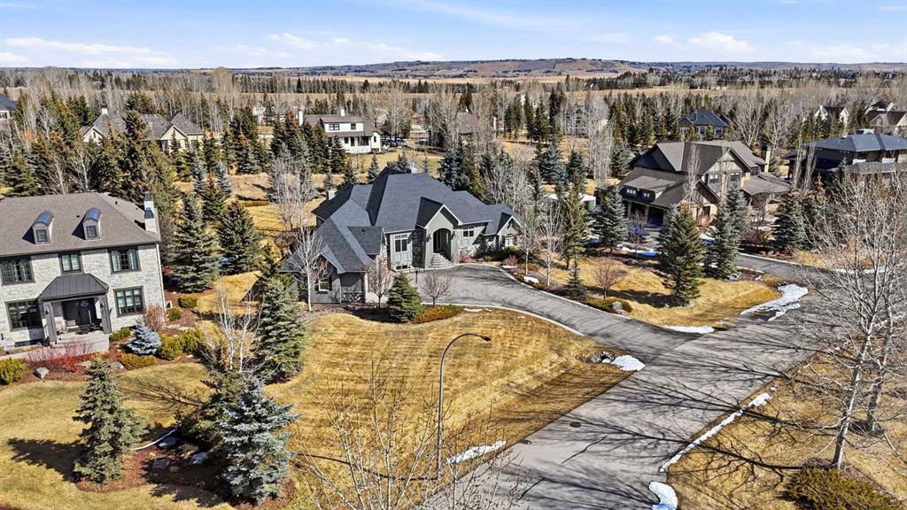 Welcome to Mackenas Estates, one of Calgary’s most exclusive gated communities, offering unparalleled privacy, security, and estate-level living. Situated on a rare 0.75-acre lot and surrounded by expansive green space and natural landscape, this exceptional custom-built bungalow by Wolf Custom Homes delivers over 4,500 sq.ft. of meticulously designed living space, perfectly balancing luxury, comfort, and functionality—all just 25 minutes from downtown Calgary. From the moment you enter, you are greeted by a dramatic 13-foot foyer that opens into a stunning great room featuring 16-foot floor-to-ceiling windows and a statement fireplace. Rich architectural detailing, site-finished hardwood flooring, custom millwork, and curated finishes showcase the craftsmanship and quality throughout. The gourmet kitchen is designed for both everyday living and elegant entertaining, featuring premium Wolf & Sub-Zero appliances, custom cabinetry, luxury stone surfaces, and seamless flow into the main living and dining areas. The main floor primary retreat offers a private, resort-inspired experience, complete with a gas fireplace, sitting area, spa-like ensuite with heated floors, and direct access to outdoor living, including a sunken hot tub. The fully developed lower level is equipped with in-floor heating throughout and is ideal for entertaining and extended family living, featuring a spacious recreation room with a two-sided fireplace, full wet bar, wine room, media/theatre room (equipment included), and multiple bedrooms including a private ensuite and a Jack & Jill bathroom. A beautifully designed curved staircase with custom iron detailing adds a striking architectural element to the home. Outdoors, enjoy your own private oasis with professionally landscaped grounds, expansive stone patios, irrigated lawns and gardens, and a European-inspired courtyard with a Rumford fireplace, perfect for year-round enjoyment. Additional features include a heated oversized triple attached garage (with in-floor heat), a well-designed mudroom with walk-through pantry, and a separate garden house with garage door for added flexibility. Located within a boutique gated community of just 21 homes and within the highly regarded Springbank school district (with school bus service to the gate), this property offers a rare opportunity to own a truly exceptional estate home in one of Calgary’s most desirable locations.