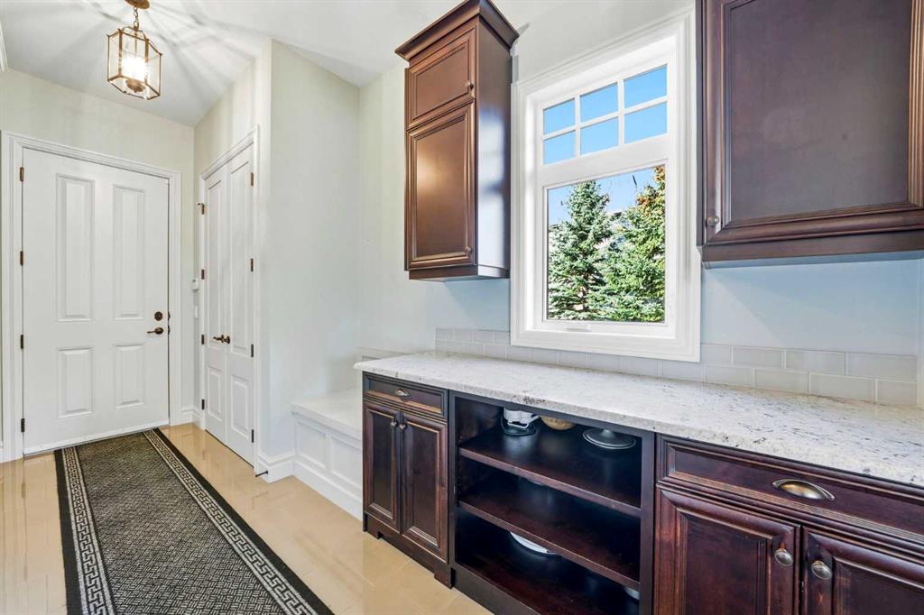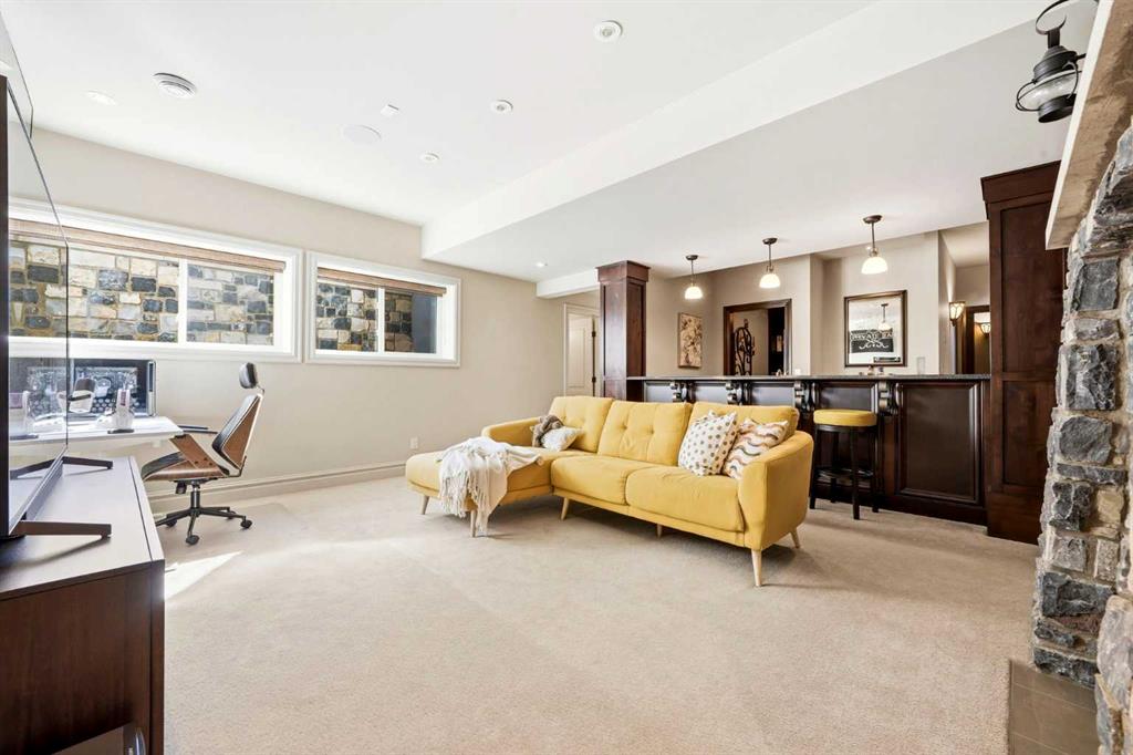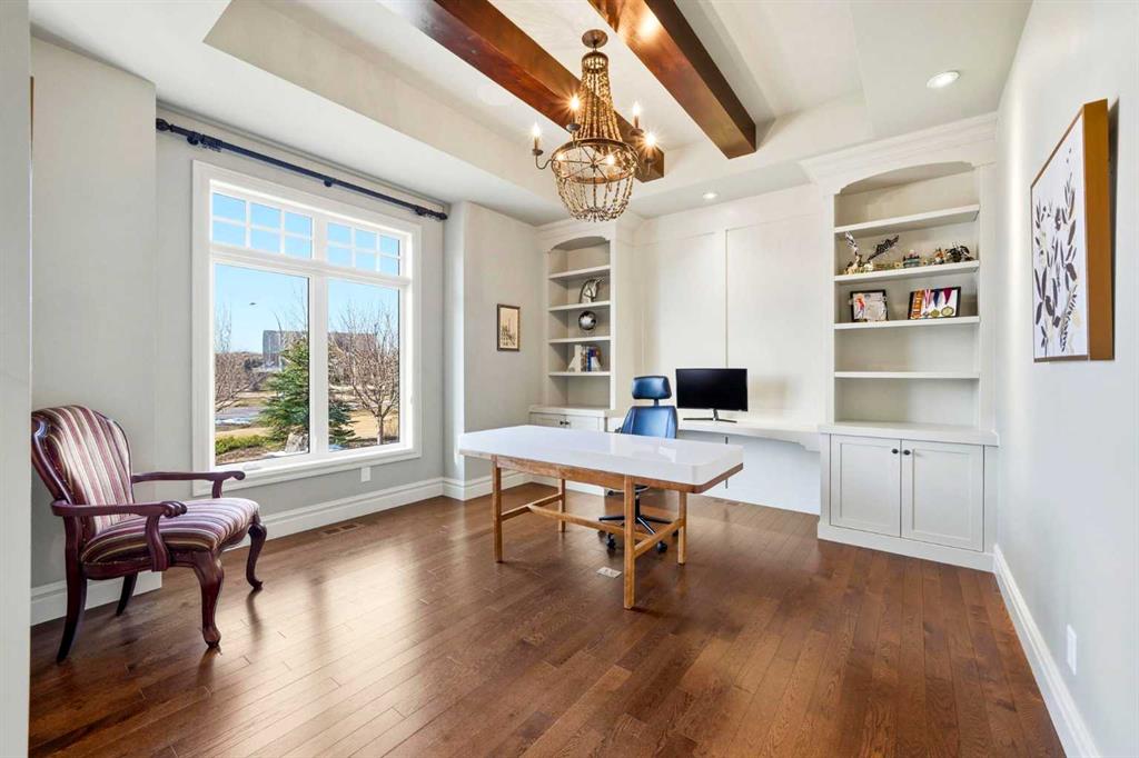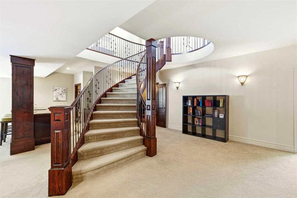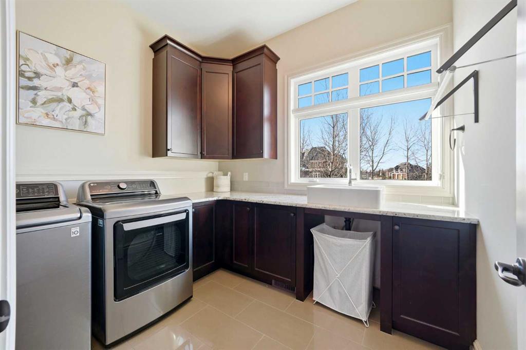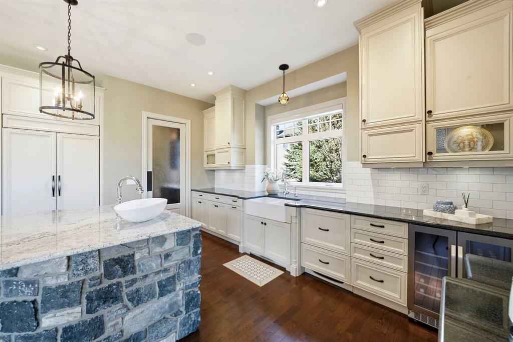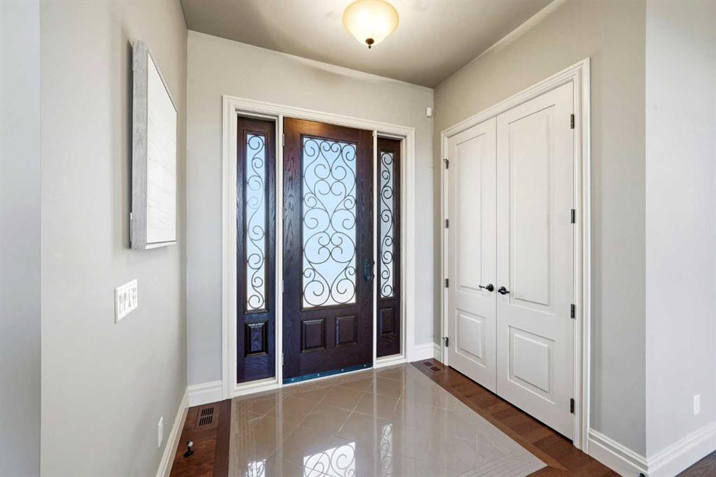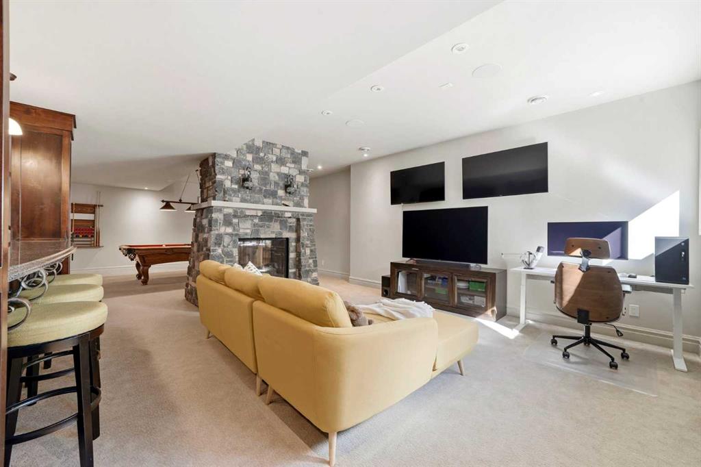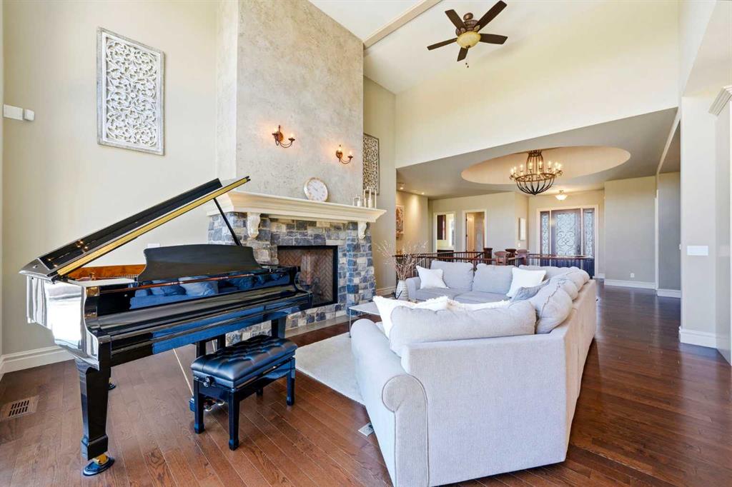 Welcome to Mackenas Estates, one of Calgary’s most exclusive gated communities, offering unparalleled privacy, security, and estate-level living. Situated on a rare 0.75-acre lot and surrounded by expansive green space and natural landscape, this exceptional custom-built bungalow by Wolf Custom Homes delivers over 4,500 sq.ft. of meticulously designed living space, perfectly balancing luxury, comfort, and functionality—all just 25 minutes from downtown Calgary. From the moment you enter, you are greeted by a dramatic 13-foot foyer that opens into a stunning great room featuring 16-foot floor-to-ceiling windows and a statement fireplace. Rich architectural detailing, site-finished hardwood flooring, custom millwork, and curated finishes showcase the craftsmanship and quality throughout. The gourmet kitchen is designed for both everyday living and elegant entertaining, featuring premium Wolf & Sub-Zero appliances, custom cabinetry, luxury stone surfaces, and seamless flow into the main living and dining areas. The main floor primary retreat offers a private, resort-inspired experience, complete with a gas fireplace, sitting area, spa-like ensuite with heated floors, and direct access to outdoor living, including a sunken hot tub. The fully developed lower level is equipped with in-floor heating throughout and is ideal for entertaining and extended family living, featuring a spacious recreation room with a two-sided fireplace, full wet bar, wine room, media/theatre room (equipment included), and multiple bedrooms including a private ensuite and a Jack & Jill bathroom. A beautifully designed curved staircase with custom iron detailing adds a striking architectural element to the home. Outdoors, enjoy your own private oasis with professionally landscaped grounds, expansive stone patios, irrigated lawns and gardens, and a European-inspired courtyard with a Rumford fireplace, perfect for year-round enjoyment. Additional features include a heated oversized triple attached garage (with in-floor heat), a well-designed mudroom with walk-through pantry, and a separate garden house with garage door for added flexibility. Located within a boutique gated community of just 21 homes and within the highly regarded Springbank school district (with school bus service to the gate), this property offers a rare opportunity to own a truly exceptional estate home in one of Calgary’s most desirable locations.