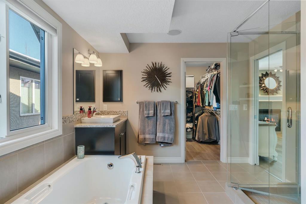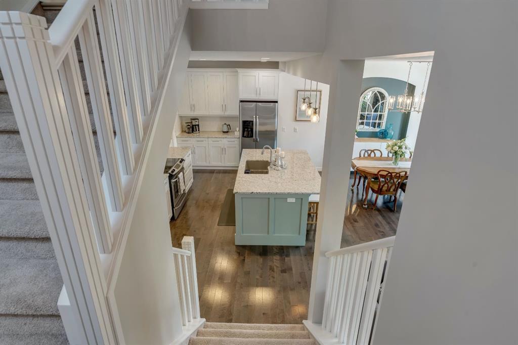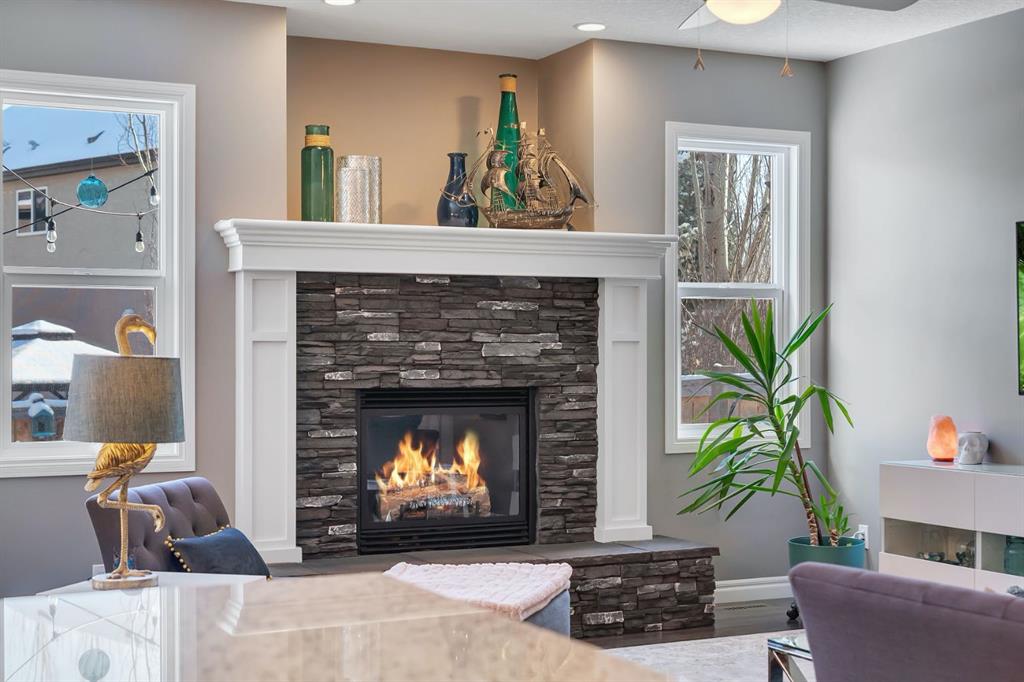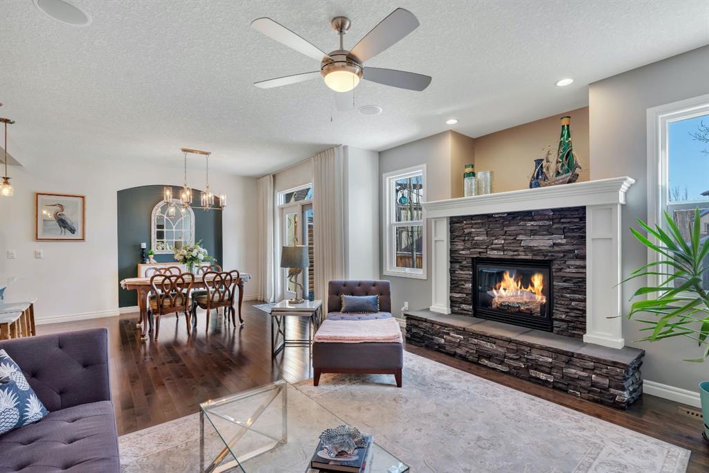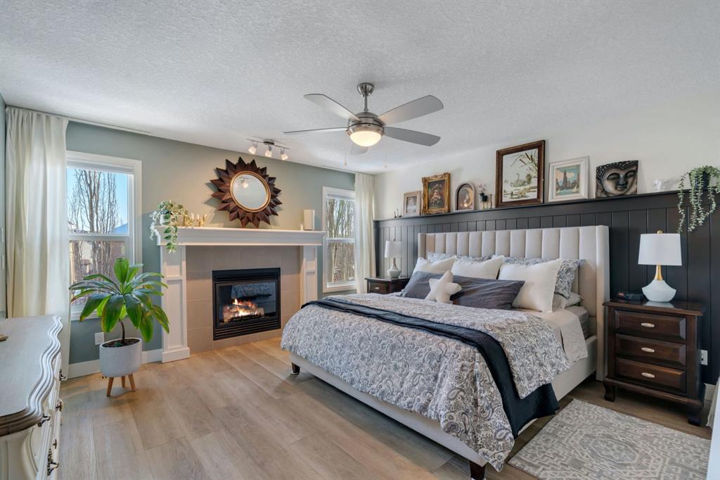 From the moment you walk in you will feel the pride of ownership and the warmth this home has been filled with. A grand light filled foyer welcomes you with expansive windows and designer finishes throughout, including high end lighting, draperies, feature walls, wainscoting, and rich hardwood flooring! The open concept main floor is perfect for entertaining, with the kitchen, dining, and living areas flowing seamlessly together. The chef inspired kitchen features full height cabinetry, granite countertops, a custom coloured island, upgraded appliances including a new dishwasher, a large island for gathering, and a walk-through pantry offering exceptional storage. The bright dining area with storage niche opens directly onto the low maintenance backyard with a gas bbq line and a beautiful stone patio. The cozy living room is anchored by a soothing gas fireplace, creating the perfect space to relax. A 2 piece powder room and functional mudroom complete the main level. Upstairs, custom railing, board and batten detailing, shiplap accents and upgraded baseboards elevate this amazing thoughtful design. Upgraded vinyl plank flooring runs throughout the second floor. The spacious primary retreat easily accommodates a king sized suite and features custom wainscoting, great windows for abundant natural light and a gas fireplace for cozy winter nights. The spa inspired 5 piece ensuite includes dual sinks, a soaker tub, a separate shower with 10mm glass, timeless tile, and a mammoth walk-in closet. The upper level also offers two additional well sized bedrooms, a stunning bonus room with a raised vaulted ceiling, 4 piece main bath, and a convenient laundry room. The basement is perfect for future development if desired and features rough ins for a future bath, networking cables, excellent storage, and an on demand hot water system. Outside, the well manicured lot showcases a 20 foot diameter Rundle flagstone patio and excellent sun exposure. This location at this price point is exceptional with the pathway to the coveted Mahogany Wetlands right there! Additional upgrades include 9 foot ceilings on the main and upper levels, central air conditioning, majority of the home is freshly painted, recently painted exterior boards and garage door, designer upgrades throughout, custom window coverings, millwork detailing, and shiplap feature walls. Mr. and Mrs. Clean truly live here. This is a home where pride of ownership is unmistakable. Start enjoying lake living this summer in Mahogany, Calgary’s award winning four season lake community. This property is the ultimate combination of beauty, comfort, and long term value. A forever home designed for your family and memories on the water. Do not miss it! Call today!