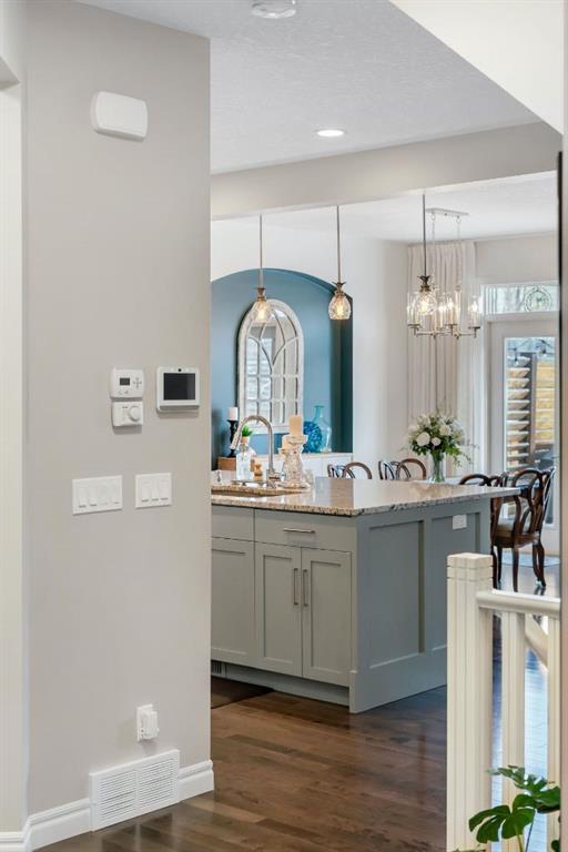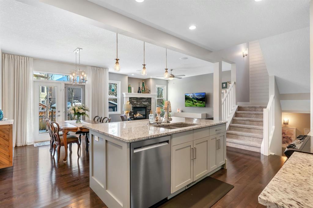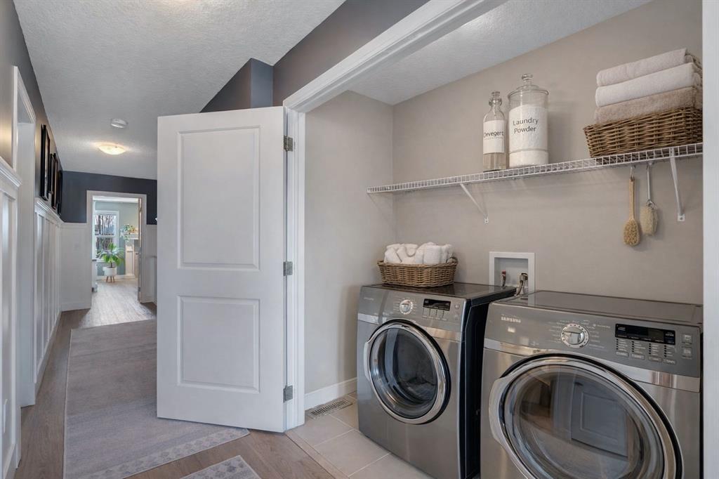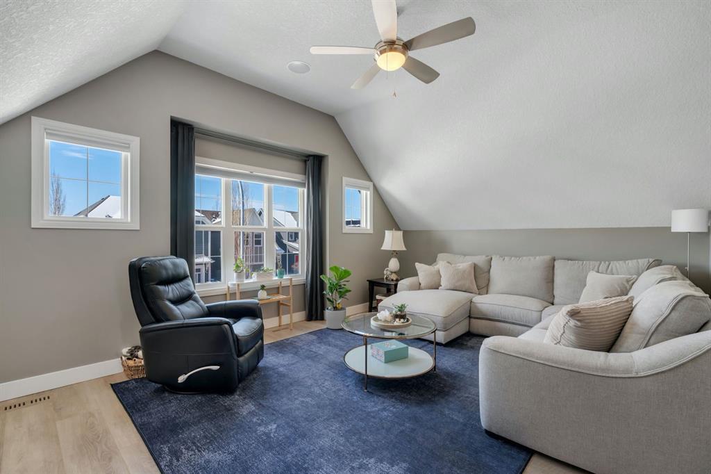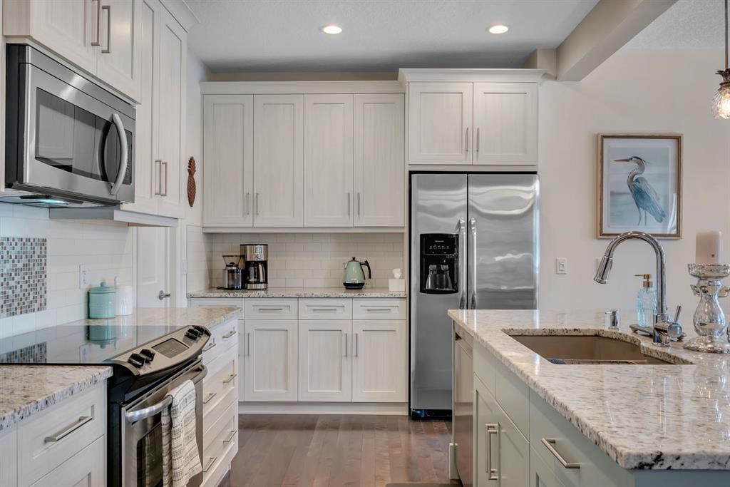 From the moment you walk in you will feel the pride of ownership and the warmth this home has been filled with. A grand light filled foyer welcomes you with expansive windows and designer finishes throughout, including high end lighting, draperies, feature walls, wainscoting, and rich hardwood flooring! The open concept main floor is perfect for entertaining, with the kitchen, dining, and living areas flowing seamlessly together. The chef inspired kitchen features full height cabinetry, granite countertops, a custom coloured island, upgraded appliances including a new dishwasher, a large island for gathering, and a walk-through pantry offering exceptional storage. The bright dining area with storage niche opens directly onto the low maintenance backyard with a gas bbq line and a beautiful stone patio. The cozy living room is anchored by a soothing gas fireplace, creating the perfect space to relax. A 2 piece powder room and functional mudroom complete the main level. Upstairs, custom railing, board and batten detailing, shiplap accents and upgraded baseboards elevate this amazing thoughtful design. Upgraded vinyl plank flooring runs throughout the second floor. The spacious primary retreat easily accommodates a king sized suite and features custom wainscoting, great windows for abundant natural light and a gas fireplace for cozy winter nights. The spa inspired 5 piece ensuite includes dual sinks, a soaker tub, a separate shower with 10mm glass, timeless tile, and a mammoth walk-in closet. The upper level also offers two additional well sized bedrooms, a stunning bonus room with a raised vaulted ceiling, 4 piece main bath, and a convenient laundry room. The basement is perfect for future development if desired and features rough ins for a future bath, networking cables, excellent storage, and an on demand hot water system. Outside, the well manicured lot showcases a 20 foot diameter Rundle flagstone patio and excellent sun exposure. This location at this price point is exceptional with the pathway to the coveted Mahogany Wetlands right there! Additional upgrades include 9 foot ceilings on the main and upper levels, central air conditioning, majority of the home is freshly painted, recently painted exterior boards and garage door, designer upgrades throughout, custom window coverings, millwork detailing, and shiplap feature walls. Mr. and Mrs. Clean truly live here. This is a home where pride of ownership is unmistakable. Start enjoying lake living this summer in Mahogany, Calgary’s award winning four season lake community. This property is the ultimate combination of beauty, comfort, and long term value. A forever home designed for your family and memories on the water. Do not miss it! Call today!