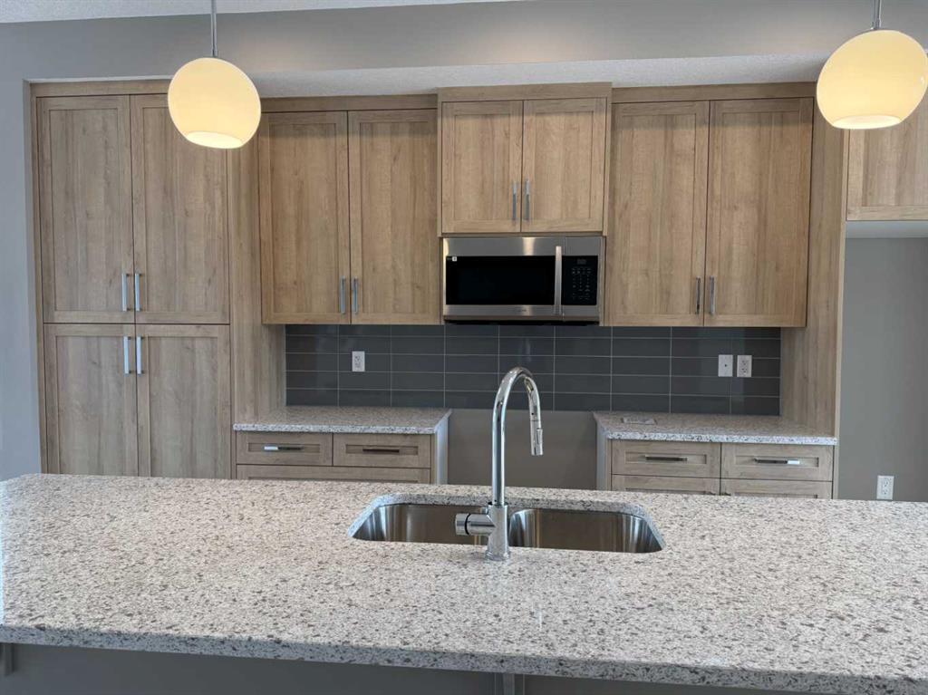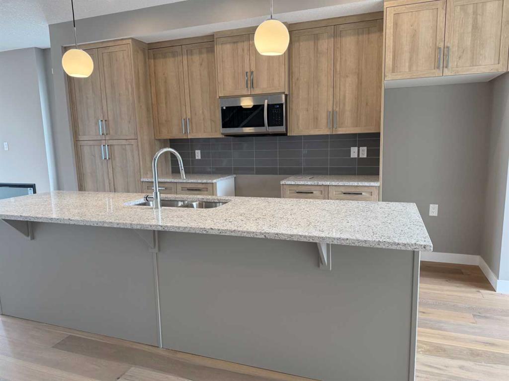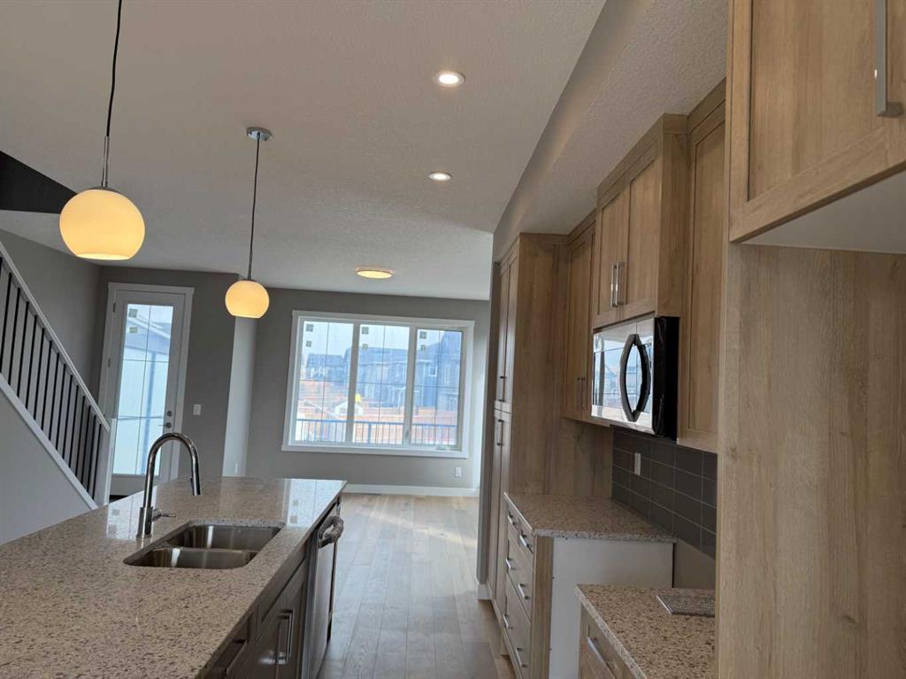 The contemporary kitchen is beautifully appointed with quartz countertops, ample cabinetry, a central island, and a premium builder-grade stainless steel appliance package, flowing seamlessly into the dining nook and great room, making the space ideal for both daily living and entertaining…