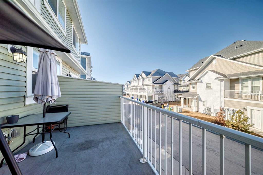 Modern Sophistication, Rare Privacy, & Exceptional Value in Copperfield. Welcome to 240 Copperleaf Way SE, a meticulously maintained 3-bedroom townhouse that perfectly balances premium positioning with contemporary design. A Rare Sense of Privacy: Uniquely situated within the complex, this home offers a superior level of privacy with no direct views of neighboring units. Instead, the property overlooks detached residences with a significant setback, providing an open, residential feel and an abundance of natural light. Designed for Lifestyle: Step inside to a bright, open-concept main floor defined by soaring 9-foot ceilings that amplify the sense of space. The stylish kitchen, featuring sleek finishes and a central breakfast bar, flows effortlessly into airy dining and living areas—perfect for both daily life and sophisticated entertaining. Exceptional Features: • Ultimate Parking: Ground-level tandem garage with extra storage, complemented by a full-length driveway for a rare 3rd dedicated parking spot. • Convenience: The upper level features a sun-drenched primary suite with a 4-piece ensuite and walk-in closet, plus two additional bedrooms and top-floor laundry. • Low Monthly Costs: Benefit from low condo fees that ensure a hassle-free, low-maintenance lifestyle without breaking the budget. Unbeatable Walkability: • Copperfield School (K-5): 4-minute walk (290m). • St. Isabella (K-9): 12-minute walk (850m). • Recreation: Steps from scenic Copper Pond pathways and playgrounds. With quick access to 52nd St and Stoney Trail, this home offers suburban tranquility with urban accessibility. Low-maintenance living at its finest—book your private showing today!