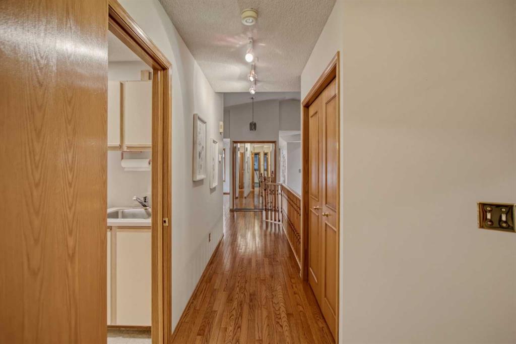 ** BEAUTIFUL Walkout Bungalow – on a very quiet cul-de-sac location in this highly sought out community of Varsity Estates. Walking distance to community parks, hiking paths, community shopping and LRT. Short distance to U of C, major shopping malls and great access to several major traffic arteries. ** This is a truly special home with meticulous landscaping and a gorgeous PRIVATE well treed SW backyard. ** Very bright, open functional plan with a spacious sunken living room and formal dining room off the kitchen. The kitchen & breakfast nook is very bright and airy – with a centre island, loads of cabinets featuring quartz counter tops, There is also a large corner pantry and a full compliment of quality/ upgraded appliances. The spacious eating nook has a patio door leading to a lvery large sunny south exposed deck – that overlooks this very well treed / private backyard. ** This also leads to a cozy family room with custom paneling and a brick faced fireplace. 88 Back to the front entry we have a good sized den/office with custom paneling a built in bookshelves. ** From here we go down the hall wich leads to the spacious back entry / laundry room with a laundry sink and access to the double insulated attached garage. ** This then leads to the very large bright “primary bedroom” featuring a large walk-in closet and a dream ensuite with a terrific walk-in shower, double vanity with beautifull raised vessel sinks -and- a terrific makeup counter with added custom shelves and storage. ** The second bedroom is also a good size with a walk-in closet. The main bathroom has been beautifully upgraded featuring a deep contoured soaker sink, perfect for the slow enjoyable soaks. ** DOWNSTAIRS has ben fully developed and features a cozy family room with fireplac, a hot tub overlooking the backyard and a patio door opening onto a covered patio area and access to the gorgeous sunny south exposed backyard. ** The third bedroom is a huge with a walk-in closet. The fourth bedroom is also a great size with ample closet space. Plus, a nice 4 piece bathroom. ** WOW – then comes this massive entertainment / recreation room featuring custom shelving & bookcases, a custom wetbar with built-ins, beautiful perimeter wainscotting — TRULY — a great area to enjoy your family and friends. ** FEATURES include – vaulted ceilings, cleaming hardwood floors, TWO fireplaces and so much more! ** A RARE FIND — on a very quiet location. ** Don’t miss out – CALL your favorite REALTOR or come by our “OPEN Houses” both Saturday & Sunday from 1:30 pm to 4:00 pm. – love to see you there!