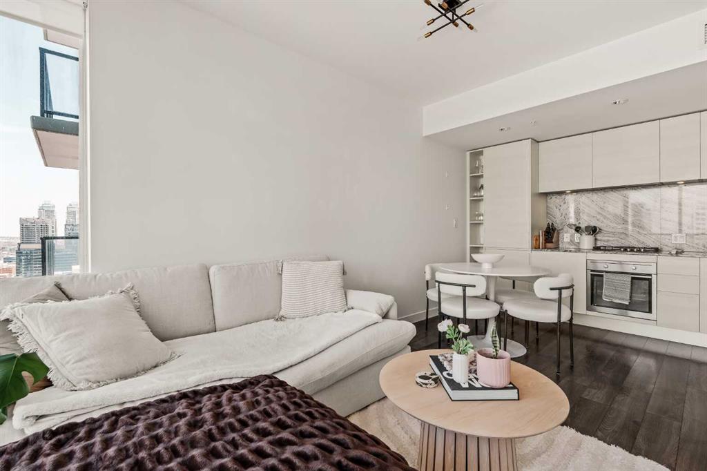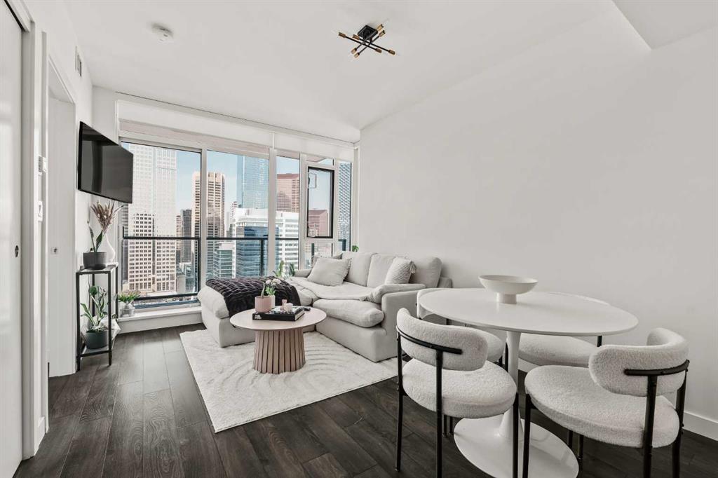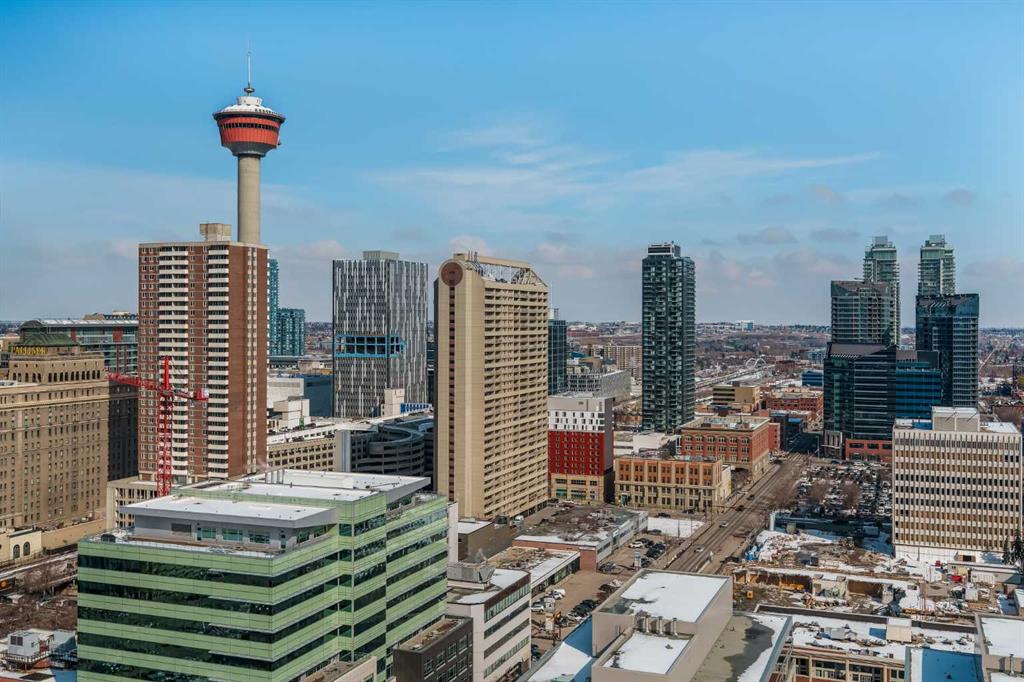 Welcome to Park Point, one of Calgary’s most sought after buildings in the heart of the Beltline. This one bedroom plus den is perfectly positioned on the 24th floor, offering stunning views of the Calgary Tower and the downtown skyline through floor to ceiling windows that fill the space with natural light. The thoughtfully designed layout includes a versatile den that is ideal for a home office, along with a modern kitchen featuring sleek cabinetry, integrated appliances, and clean contemporary finishes. The open concept living area flows seamlessly onto your private balcony, where you can take in the city views day and night. This home also features air conditioning and titled underground parking for year round comfort and convenience. This location offers an exceptional walkability score of 98 out of 100, putting Calgary’s best dining and amenities right at your doorstep. Ten Foot Henry, Native Tongues Taqueria, Bridgette Bar, Major Tom Bar, Proof Cocktail Bar, Analog Coffee, Deville Coffee, and Park by Sidewalk Citizen are all just steps from your door. Park Point is a pet friendly building and offers premier amenities including concierge service, a fully equipped fitness centre, yoga studio, sauna and steam room, social lounge, and beautifully designed outdoor spaces. Perfect for professionals, investors, or anyone looking to enjoy vibrant inner city living with incredible views, top tier dining, and unbeatable walkability.