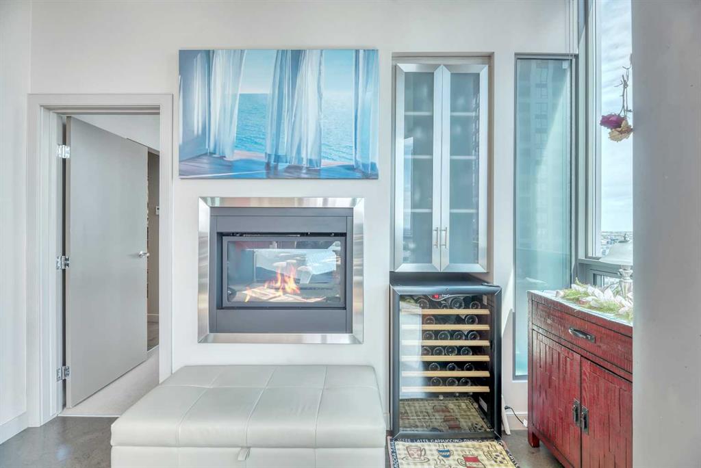 A double-sided fireplace anchors the inviting living room and carries through to the serene primary suite. Here, step out to your own private balcony, relax in a spa-inspired ensuite with heated floors, and enjoy the convenience of a custom walk-in closet. A second bedroom and bathroom are strategically separated to ensure privacy for guests.