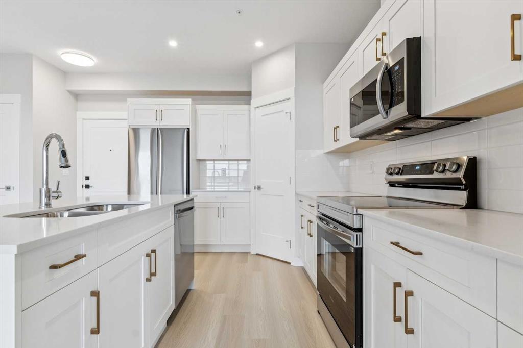 Discover condo 2405 at Seton West Phase II. A brand new, never lived in condo with direct views of the pond. Here are 5 things we LOVE about this home (and we’re sure you will too): 1. A SPACIOUS AND FUNCTIONAL FLOOR PLAN: Condo 2405 is the Nicholl 2 floorplan, featuring 2 separated bedrooms, 2 full bathrooms and an actual dining space; a rarity in modern condos. Offering 762 SqFt of functional, open concept living space, 9’ ceilings, and oversized windows. The stunning kitchen opens seamlessly into the living & dining areas while the large balcony becomes an extension of your living space in the warmer months and is equipped with a BBQ gas line. The primary bedroom boasts a walkthrough closet and a designer 5-piece while the second bedroom features an adjacent 4-piece bathroom. Convenient underground titled parking and an assigned storage locker are included. 2. A PRIME SOUTHEAST COMMUNITY: Seton is one of SE Calgary’s most convenient and well-appointed neighbourhoods. Residents enjoy world-class amenities, including 130,000 sq. ft. of retail space featuring shops, services, and restaurants, the South Health Campus, and the amazing Brookfield Residential YMCA (the largest YMCA in North America). The upcoming Homeowners Association will feature a splash park, hockey rink, tennis courts, firepit area, sports courts, and an amphitheater. Commuting is a breeze with easy access to both Deerfoot and Stoney Trails. 3. THAT KITCHEN: The kitchen is truly the heart of this home, featuring sleek white cabinetry with classic bronze hardware, quartz counters, a white subway tile backsplash, stainless-steel appliance package, and ample work/storage space including a corner pantry. Whether you’re preparing a feast or warming up leftovers, you’ll feel right at home here. 4. RARE POND-FACING LOCATION: Typically, in newer Calgary suburbs the prime pond backing locations are reserved for estate-level detached homes and million-dollar budgets. Not the case here as Seton West Phase II has secured one of the best locations in the community with building 2000 backing directly onto the pond. 5. ONE OF SOUTHEAST CALGARY’S BEST BUILDINGS: Seton West Phase II is a three-building low-rise condo community built by award-winning Logel Homes. Residents enjoy best-in-class workmanship, spacious and beautifully appointed suites and lush common greenspace and walking paths in a tranquil pond-side location.