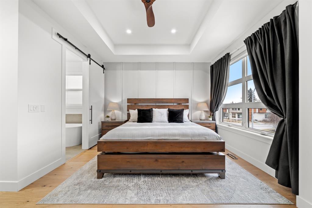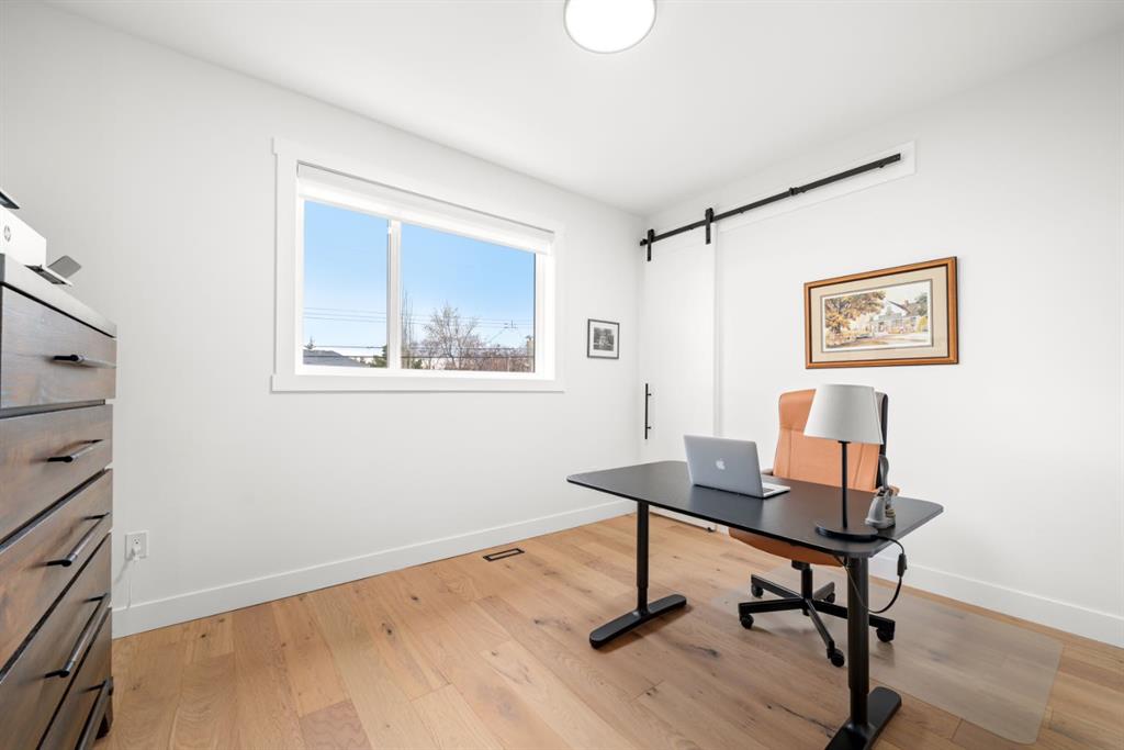 Exceptionally walkable and convenient KILLARNEY! This beautifully appointed home offers over 2,800 sq ft of thoughtfully curated living space in one of Calgary’s most desirable inner-city communities, just minutes from downtown. With a landscaped west-facing backyard and a fully finished, heated double garage, this home blends modern luxury with everyday comfort. The main level is designed for both entertaining and relaxed daily living, featuring 10-ft painted ceilings, wide-plank engineered hardwood flooring, and extensive custom built-ins throughout. The heart of the home is the stunning kitchen, highlighted by ceiling-height white cabinetry with glass accents, under-cabinet lighting, and an incredible oversized quartz island—perfect for gathering, hosting, or casual family meals. High-end stainless steel appliances, including a gas cooktop, complete the space, while the dining area is elevated by a striking decorative feature wall. The living room is filled with warm afternoon light from west-facing windows and anchored by a beautifully tiled fireplace, creating an inviting and refined atmosphere. Ascending the gorgeous open-riser staircase, the upper level continues with hardwood flooring throughout. Here you’ll find two generous secondary bedrooms with custom built-in closet systems, a spacious laundry room, a well-appointed four-piece bathroom, and a serene primary retreat. The primary suite features soaring ceilings, a designer feature wall, and a spa-inspired ensuite complete with heated tile floors, dual vanities, a steam shower, and a deep soaker tub—your own private escape at the end of the day. The fully developed basement extends the living space and is perfect for entertaining, offering a full wet bar, built-in media area with projection TV rough-in, hydrostatic in-floor heating throughout, a fourth bedroom, a four-piece bathroom, and additional storage. Additional highlights include built-in ceiling speakers, central air conditioning, central vacuum rough-in, and a rough-in for a security system. Ideally located close to parks, schools, local amenities, and the LRT, with quick access to downtown via Bow Trail or 17th Avenue, and within walking distance to the Killarney Aquatic & Recreation Centre and community garden. An exceptional home offering elevated inner-city living in an unbeatable location.
