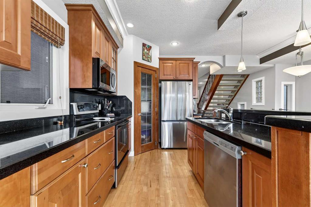 Ideally situated on a quiet, tree-lined street in the heart of Killarney, this well-maintained 4-bedroom, 3.5-bathroom detached home offers a functional layout with thoughtful improvements throughout. The main floor boasts a bright living room and a spacious dining area with large west-facing windows showcasing mature trees and filling the space with warm afternoon and evening light. The kitchen is equipped with granite countertops, stainless steel appliances, and an island that seamlessly flows into a cozy eat-in nook. An adjoining family room opens to the rear deck, offering easy indoor-outdoor living and a gas three-way fireplace connects the nook, kitchen and family room. Upstairs, the primary retreat features vaulted ceilings, a walk-in closet, private balcony, and an ensuite with a soaker tub and fireplace. Completing the upper level are two additional bedrooms, a full bathroom, and a convenient built-in computer desk at the top of the stairs – ideal for a home office or homework station. The fully developed basement includes a large family or media room with bright windows, a fourth bedroom, another full bathroom, a dedicated laundry room, and extra storage. Recent upgrades include a new furnace (2024), brand-new washer and dryer, fresh paint throughout, and more. Central air conditioning adds to the home’s year-round comfort and convenience. Outside, enjoy a resodded yard with updated landscaping and a double detached garage. Walk to convenient favourites like Luke’s Drug Mart for your morning coffee or a summer soft serve, along with so many restaurants and local eateries just steps from your door. Enjoy the endless potential Killarney offers, all just minutes from parks, schools, and convenient inner-city amenities.