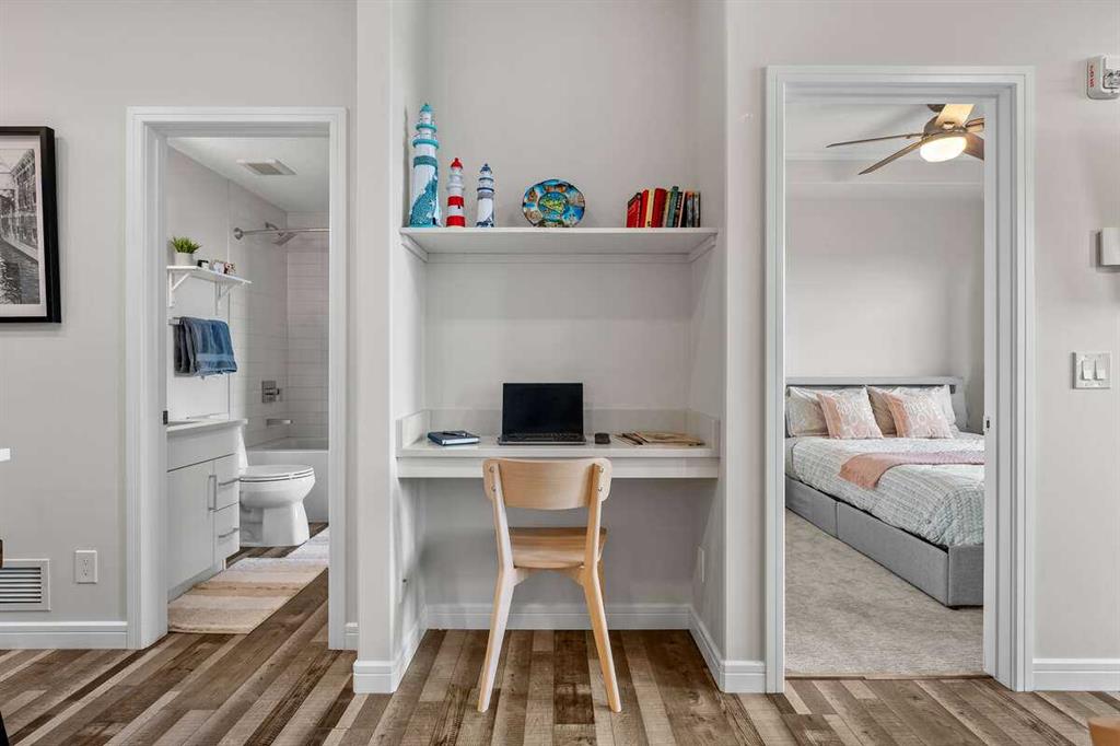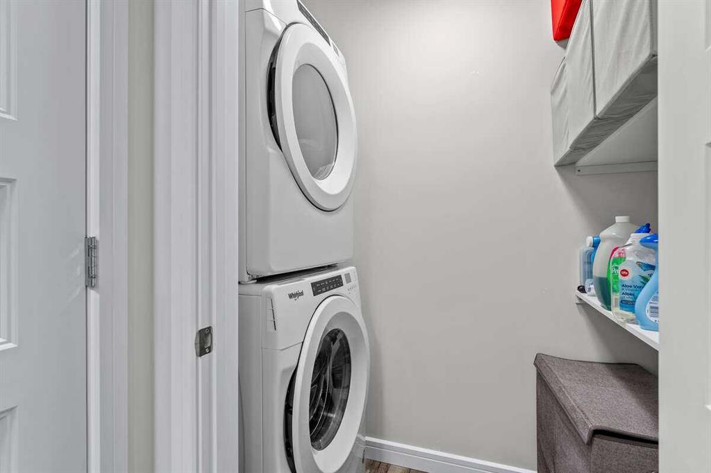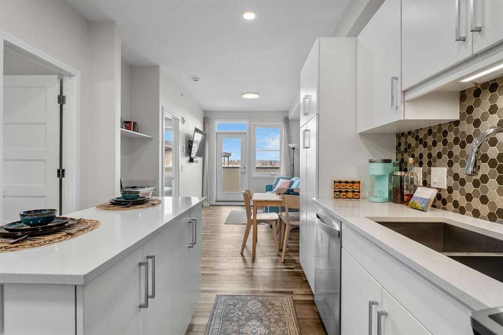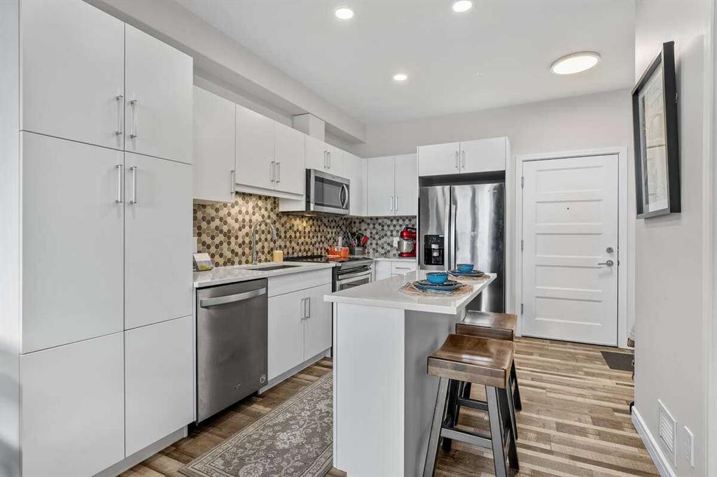 Welcome to Your New Home in Greenwich, Calgary! Nestled in the sought-after Greenwich community, this charming 1-bedroom condo offers the perfect blend of modern convenience and urban living. Located just steps away from the Calgary Farmers’ Market West, you’ll enjoy easy access to fresh local produce, artisanal goods, and delicious eats – all year round! Inside, this condo boasts an open-concept layout with plenty of natural light, creating a welcoming and airy atmosphere. The spacious living area is perfect for both relaxation and entertaining, while the well-appointed kitchen features sleek, contemporary finishes and ample storage space. Key Features: 1 generous bedroom with walkthrough closet; Bright and inviting living area with large windows; Large balcony with natural gas hook-up; LVP flooring with in-floor heating; Upgraded kitchen with quartz countertops, upgraded stainless steel appliances, and functional island; laundry with full-size stacked washer and dryer for ultimate convenience. Condo fees include: Common area maintenance, Heat, Water, Natural gas (BBQ), Waste removal, Parking, Property Management, Reserve Fund contributions. Titled parking stall. Walkable to Calgary Farmers’ Market West for easy shopping and dining. Easy access to WinSport, COP and GoodLifeFitness. Whether you’re a first-time buyer or looking to downsize, this condo offers a perfect balance of comfort and location. Enjoy the best of both worlds – a peaceful retreat with quick access to vibrant shopping, dining, and recreation. Don’t miss your chance to call this condo home.