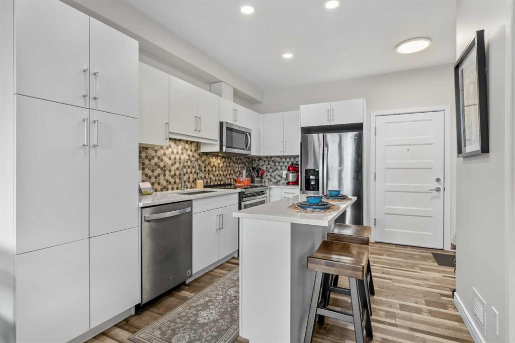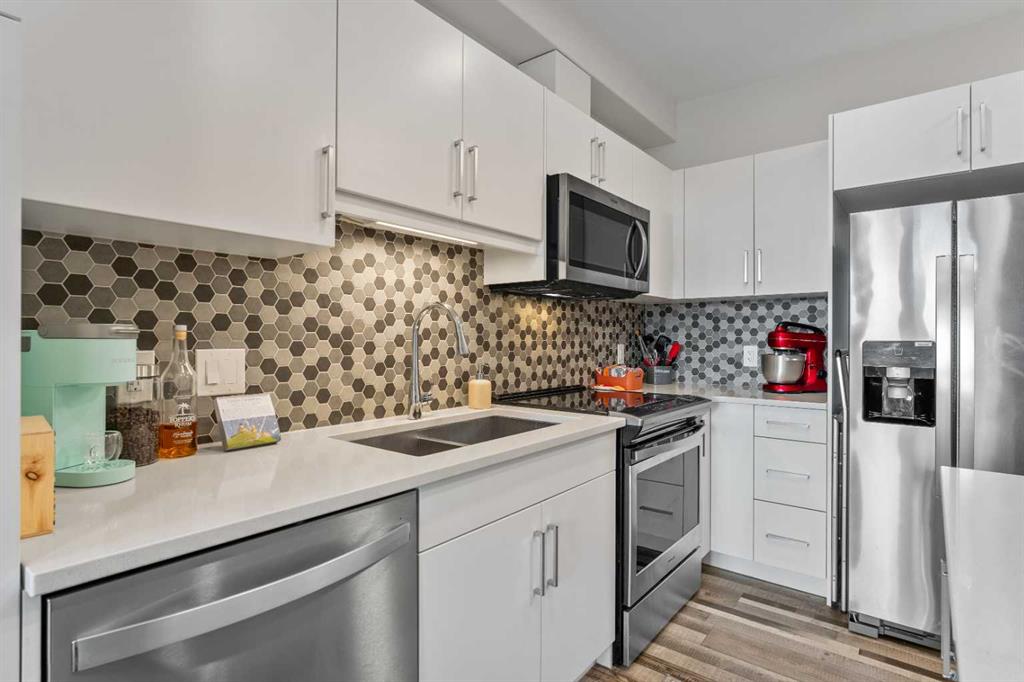 Don’t miss the opportunity to own this TOP-FLOOR unit featuring a functional layout and a huge west-facing balcony, perfect for enjoying the evening sun and BBQ comfortably in any weather conditions. Welcome to modern living in Greenwich, one of Calgary’s growing and well-connected communities. This top-floor, west-facing 1-bedroom condo offers a perfect balance of comfort, style, and everyday convenience—ideal for first-time buyers, downsizers, or investors.