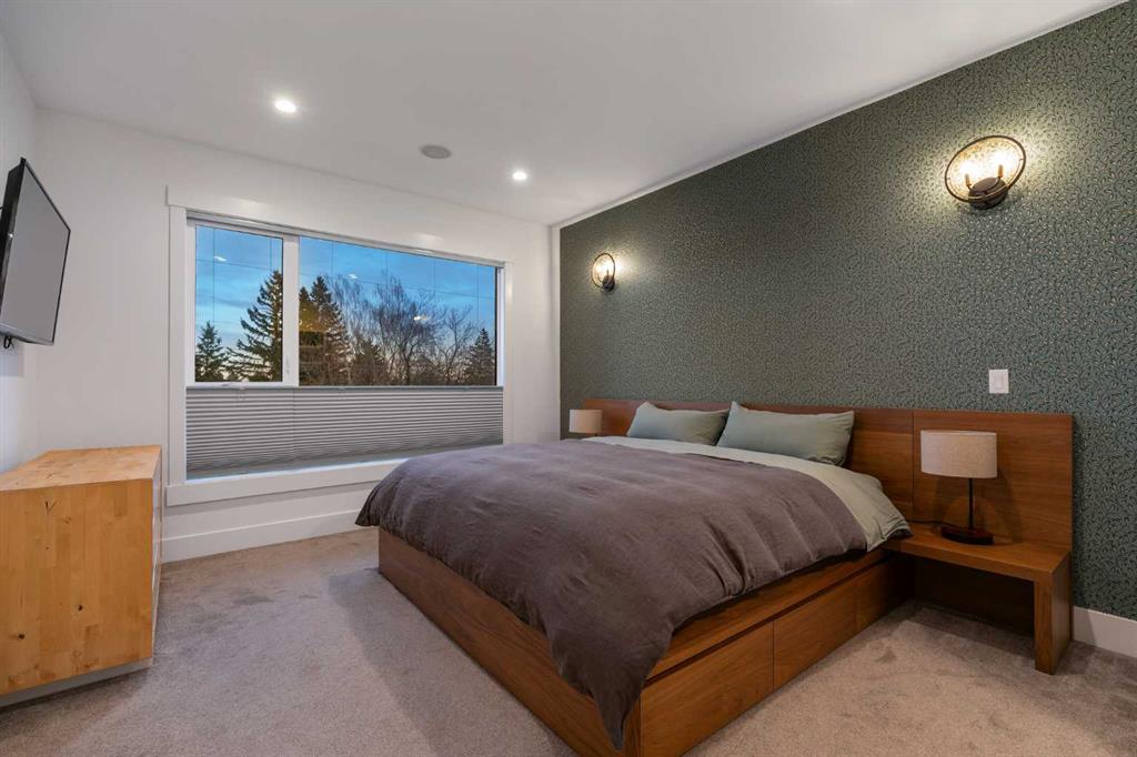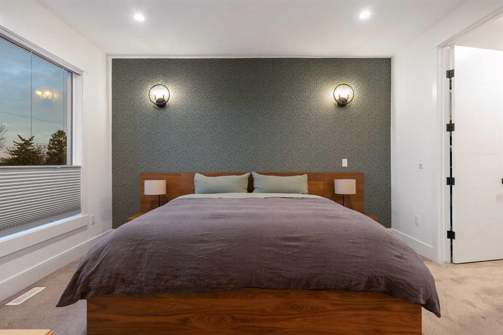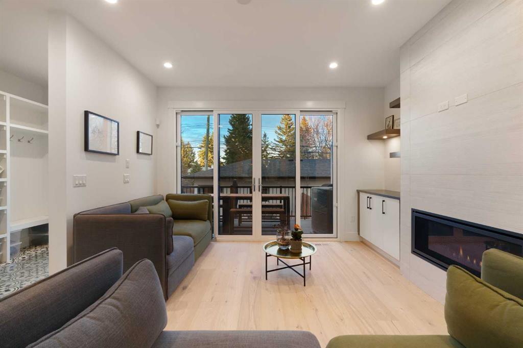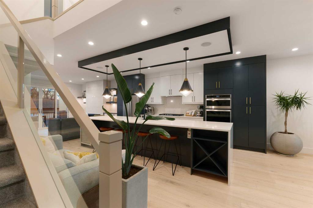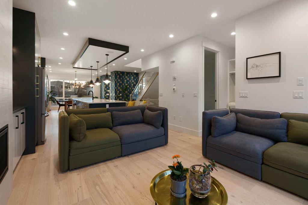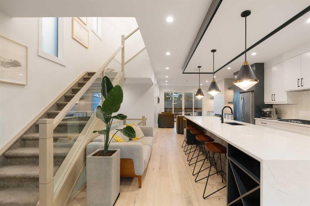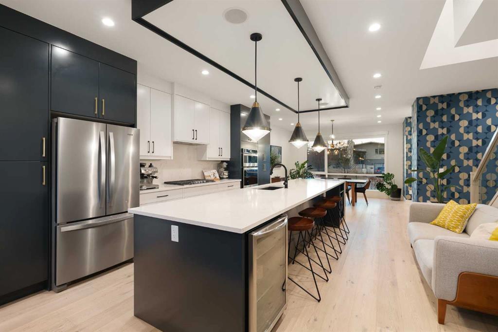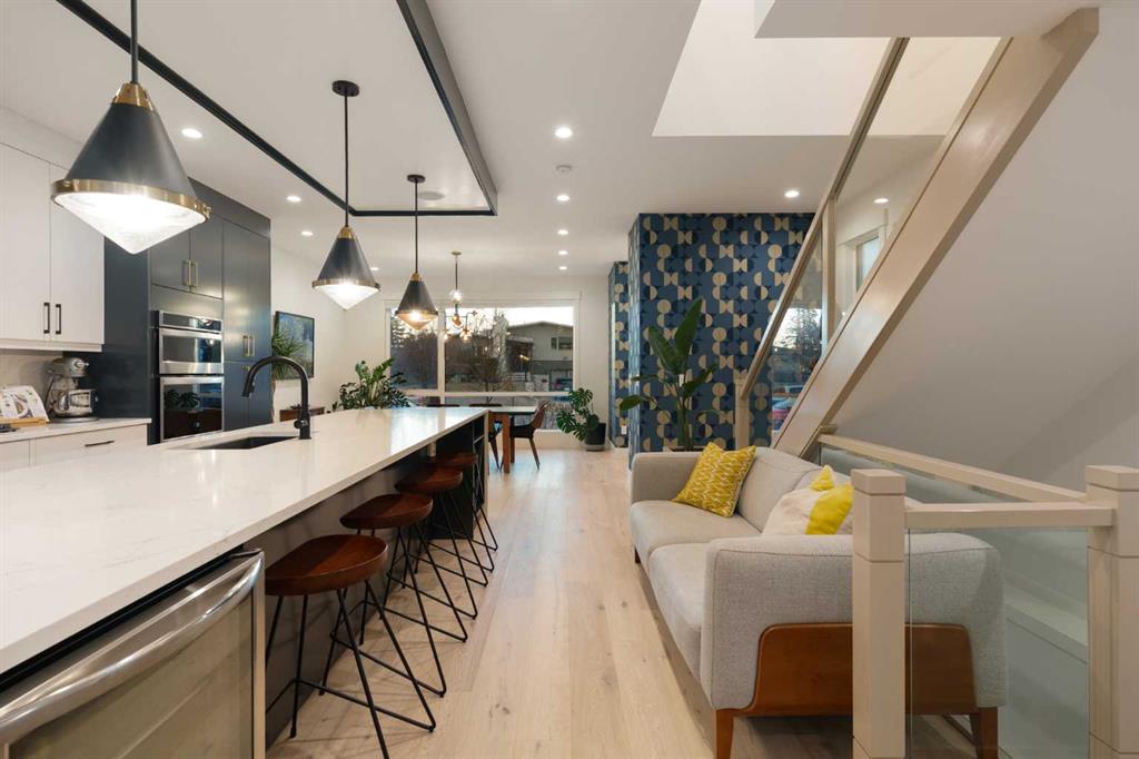 Step into a refined blend of contemporary design and timeless warmth. This beautifully crafted inner city home features wide-plank oak hardwood, painted ceilings, custom millwork, designer wallpaper, central A/C, a skylight that fills the space with natural light, plus a water softener and heat recovery ventilation system for enhanced comfort.