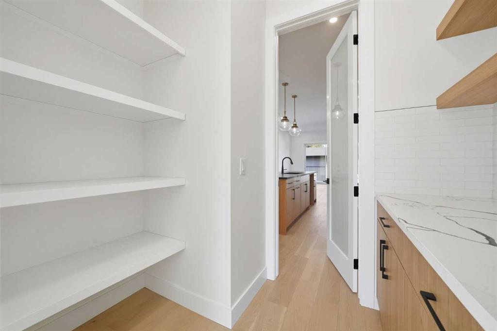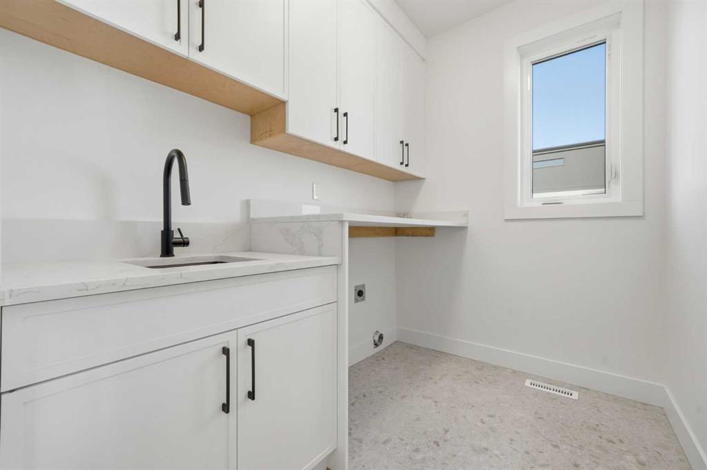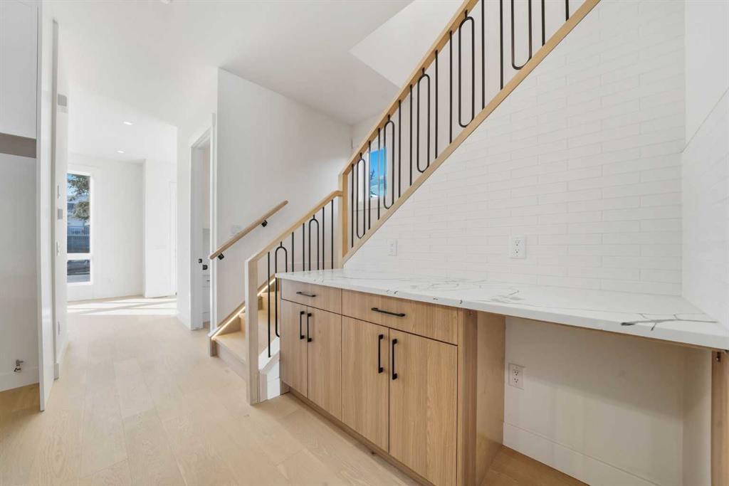 Gorgeous new 3 bedroom home built by Royal Design Homes on a quiet cul-de-sac in sought after Richmond, offering over 2000 sq ft of living space plus a self contained legal 2 bedroom basement suite. The bright & airy main level presents engineered hardwood floors, high ceilings & stylish light fixtures, showcasing the front dining area with beautiful feature wall & ample space to host family & friends. Create culinary masterpieces in the kitchen that’s tastefully finished with contrasting quartz counter tops, large island/eating bar, excellent appliance package & plenty of storage space, including a pantry & lovely built-in banquette. The living room is anchored by a floor to ceiling feature fireplace & built-ins. A cozy office space is tucked away just off the kitchen, perfect for a home office setup. Completing the main level is a convenient mudroom with bench, hooks & storage & a 2 piece powder room with wall paper accent & raised stone sink. Ascend the lighted staircase to the second level that hosts a loft/bonus room, 2 bedrooms, 4 piece bath & laundry room with sink & storage. The primary bedroom with vaulted ceiling boasts an outstanding walk-in closet & posh 5 piece ensuite with dual sinks, make-up vanity, relaxing freestanding soaker tub & rejuvenating steam shower. The fully contained legal basement suite features engineered hardwood floors, a large living/dining area with tons of built-in storage, kitchen with island/eating bar, quartz counter tops & stainless steel appliances. Two bedrooms, a 4 piece bath & dedicated laundry facilities complete the legal basement suite. Other notable features include roughed in air conditioning, 2 furnaces & 2 hot water tanks. Outside, enjoy the beautifully landscaped front garden & back yard with deck & access to a double detached garage. The location is incredibly convenient, close to vibrant Marda Loop, excellent schools, parks, public transit & easy access to 26th Avenue & Crowchild Trail.