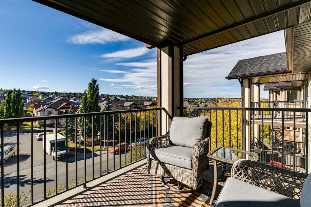 TOP FLOOR | CORNER UNIT | 2 TITLED PARKING STALLS | EXTRA-LARGE STORAGE UNIT | 1,184.80 SQ. FT. OF STYLISH LIVING. Sunlight fills every room of this beautifully designed top-floor corner unit, creating a bright and welcoming space you’ll love coming home to. Step onto your private balcony to enjoy peaceful mornings with coffee or take in the golden hues of the evening sky as the trees change color. Inside, the thoughtful layout offers 2 spacious bedrooms, 2 full bathrooms, and a dedicated office nook—perfect for working from home or keeping life organized. At the heart of the home is a gourmet kitchen that combines style and function, featuring rich granite countertops, stainless steel appliances, undermount lighting, a full pantry, and generous prep space. Whether you’re cooking a quick breakfast or hosting dinner with friends, this kitchen makes it easy to do it all with flair. Other highlights include gleaming laminate floors, attractive built-ins in every closet, and convenient in-suite laundry room with extra space for a stand up freezer. The primary suite offers a true retreat with a large walk-in closet and elegant ensuite, while the second bedroom and full bath are ideal for guests. Practical touches include easy access to the elevator, two titled, heated underground parking stalls—side by side and right next to the elevator—plus one of the largest storage units in the building. All utilities and the HOA fee are included in the condo fee, making for one simple monthly payment. Living here means enjoying everything Panorama Hills has to offer—endless pathways, parks, and playgrounds right outside your door. You’ll have access to the Panorama Hills Community Centre for year-round activities, and you’re just minutes from Country Hills Golf Club, Vivo Rec Centre, great schools, shopping, dining, and theatres.