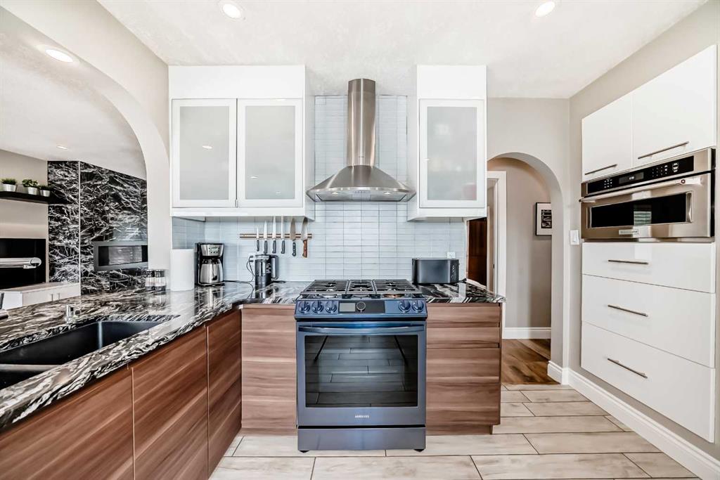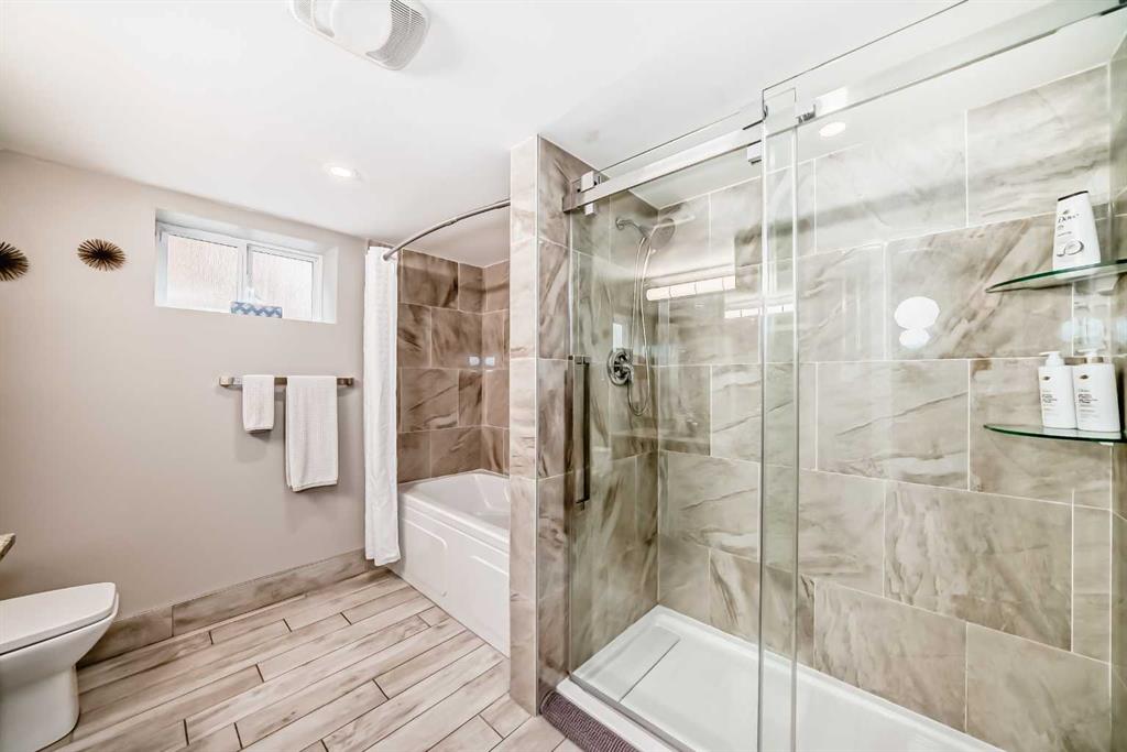 Step into your dream home! This stunning, FULLY RENOVATED modern bungalow in the coveted WEST HILLHURST community is ready to impress. Meticulously cared for, this 5-bedroom (3 up, 2 down), 2.5-bathroom residence blends contemporary elegance with inner-city charm. Perfect for large families or those craving space and privacy, it features a RARE TRIPLE CAR DETACHED GARAGE with a bonus work/storage area. Inside, you’re greeted by a sleek living room anchored by a custom gas fireplace and cooled by CENTRAL AIR CONDITIONING. The stylish kitchen boasts a breakfast bar and flows into a bright dining area, opening to a south-facing backyard with breathtaking downtown and vista views. New kitchen appliances include Samsung Bespoke Glass Panel refrigerator, Samsung Stove and Under Sink Kinetico Reverse Osmosis Water Filter! The main-level primary suite offers a luxurious new en-suite with a steam shower, accompanied by two additional bedrooms and a convenient half bath. The fully reimagined basement is an entertainer’s delight, featuring a cozy family room with a second fireplace, a chic WET BAR, and a comfortable sitting and dining nook. Two more bedrooms, and a modern 5-piece bathroom complete this level. Outside, the expansive south-facing backyard is a private retreat, showcasing fresh landscaping, a large deck, a firepit, underground sprinklers, and new 5 ft fencing for ultimate seclusion. The newly paved back lane ensures smooth access to the oversized triple garage—perfect for car enthusiasts or extra storage needs. Other recent additions to the home include a Huebsch commercial grade gas dryer, and Kinetico water softener system with a charcoal dechlorinator. Move-in ready and brimming with upgrades, this West Hillhurst gem won’t last long. Contact your realtor to book a showing today!