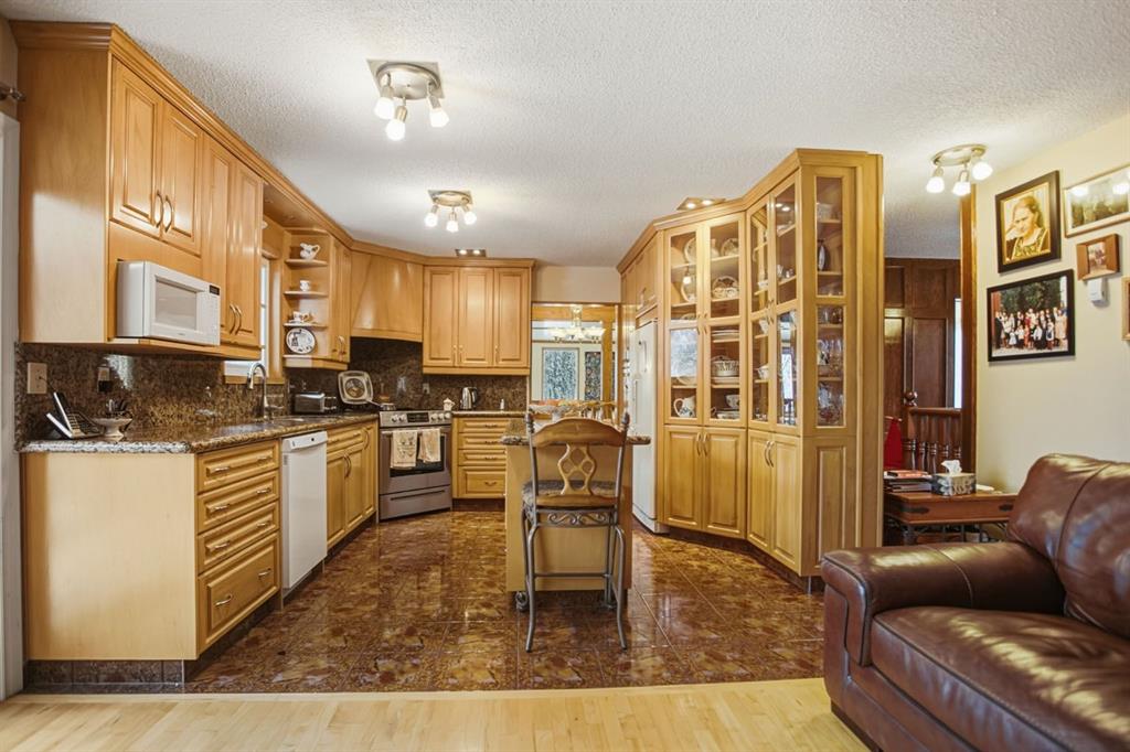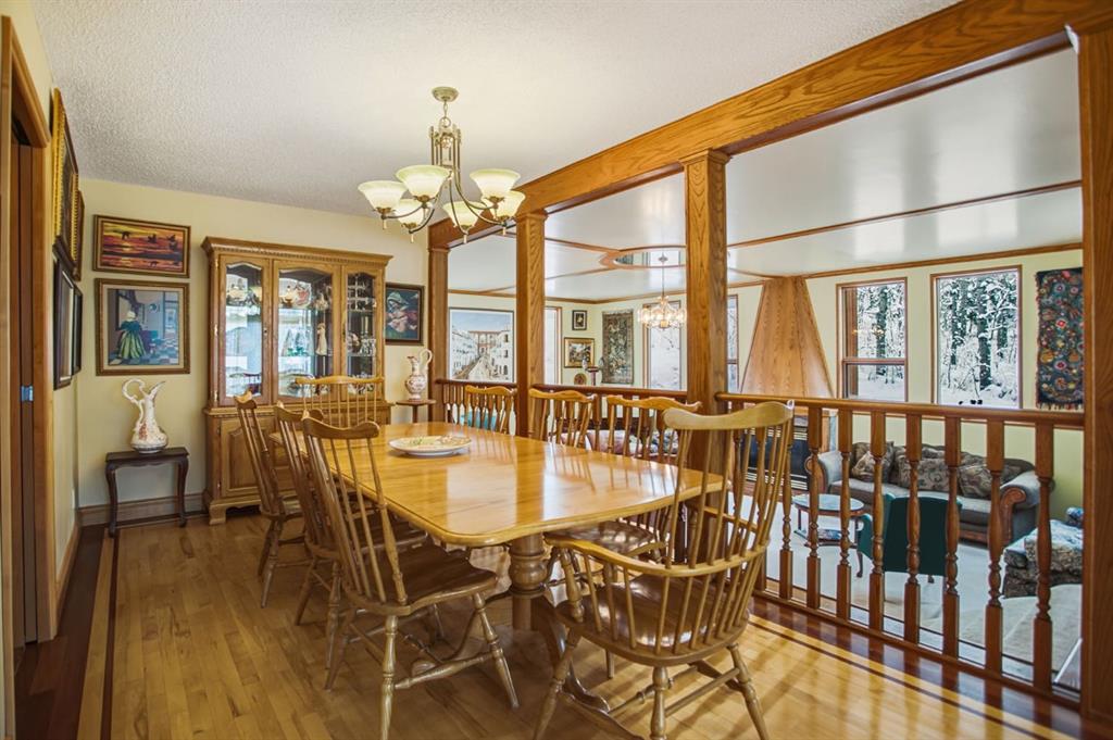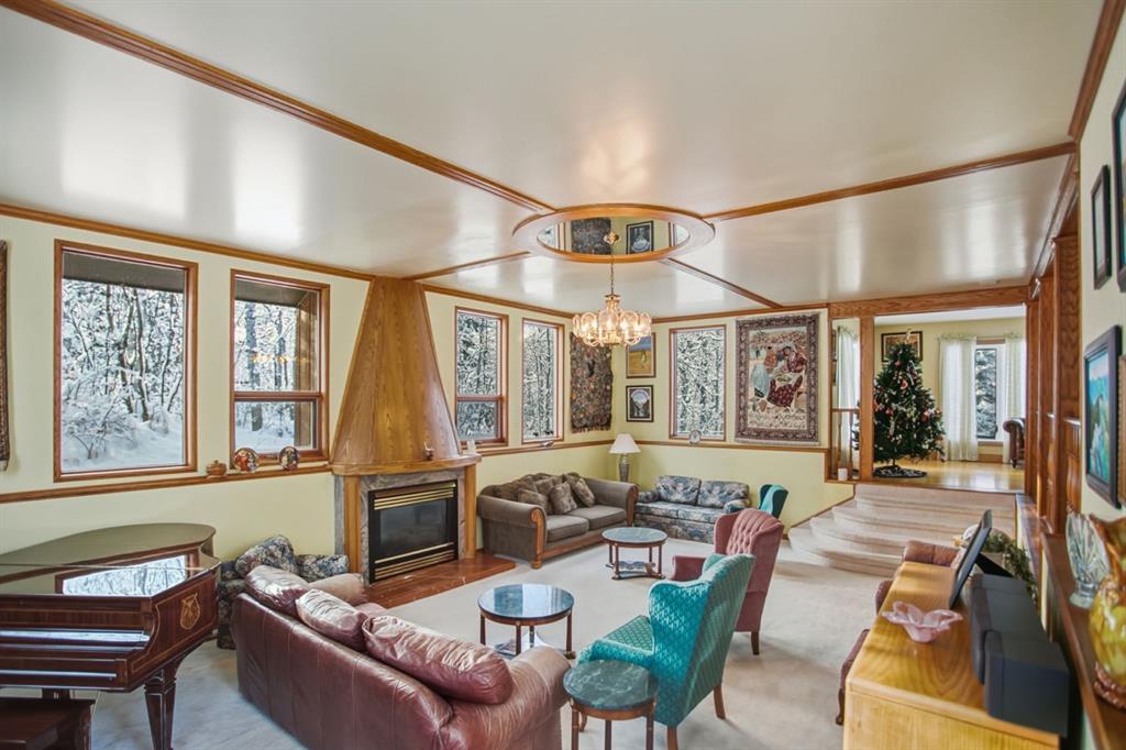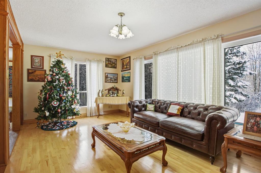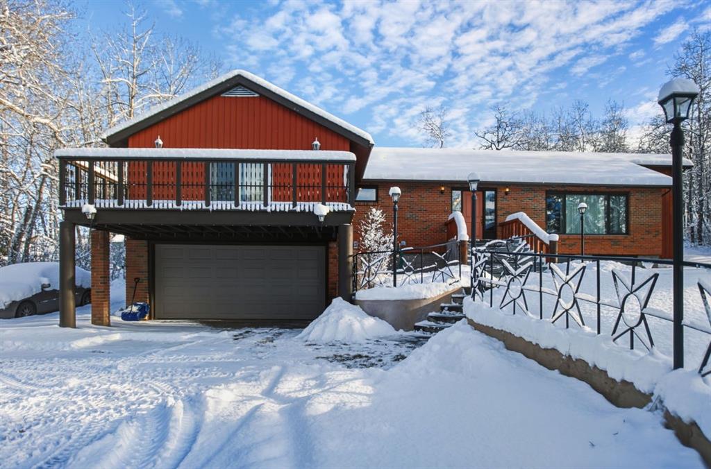 Set in a PRIME LOCATION just minutes from Calgary and close to excellent schools, this exceptional family home offers space, privacy, and a lifestyle that’s increasingly hard to find. With over 4,550 square feet of fully developed living space, this property is designed to accommodate large or growing families, multi-generational living, and memorable entertaining. The home features five generously sized bedrooms, including a huge, primary suite complete with patio doors leading to a large west-facing balcony—the perfect spot to unwind and enjoy evening sunsets. Two fireplaces—one wood-burning and one natural gas—add warmth and character throughout the home. At the heart of the home is a magnificent SUNKEN GREAT ROOM spanning approximately 525 square feet, luxuriously carpeted and rich wood accents. This impressive space with its COZY FIREPLACE is ideal for hosting family gatherings, celebrations, or simply enjoying everyday living on a grand scale. The access to the back patio makes this space perfect for entertaining inside and out. The updated kitchen features granite countertops, a BEAUTIFUL CERAMIC-TILED floor, and updated appliances – perfect for large gatherings or simple family meals. Hardwood, ceramic tile, and carpeted flooring throughout provide both durability and comfort. The fully developed basement includes a summer kitchen, offering excellent flexibility for extended family, guests, or entertaining and a huge rec room for games, workouts or an extra bedroom. Outside, the acreage setting truly sets this property apart. A large, level grassed area offers space for a private soccer pitch or multi-sport play, while the wooded eastern portion of the property adds privacy and a natural buffer. Wildlife—including deer, moose, and a wide variety of birds—are frequent visitors, creating a peaceful, nature-rich environment. Additional highlights include an under-drive double garage, paved road access to the driveway, and a quiet, private setting that still offers easy access to Calgary and nearby amenities. An outstanding opportunity to enjoy acreage living without sacrificing space, comfort, or convenience—this is a home built for family, entertaining, and lasting memories.