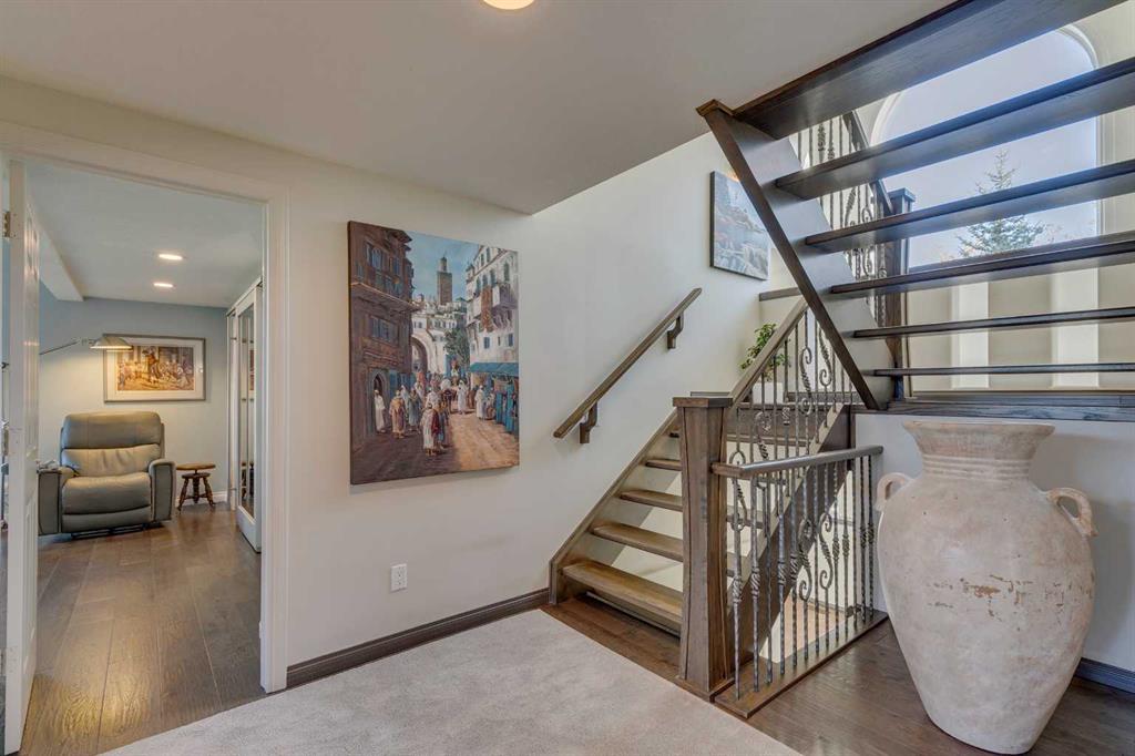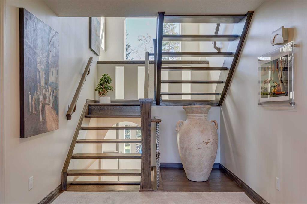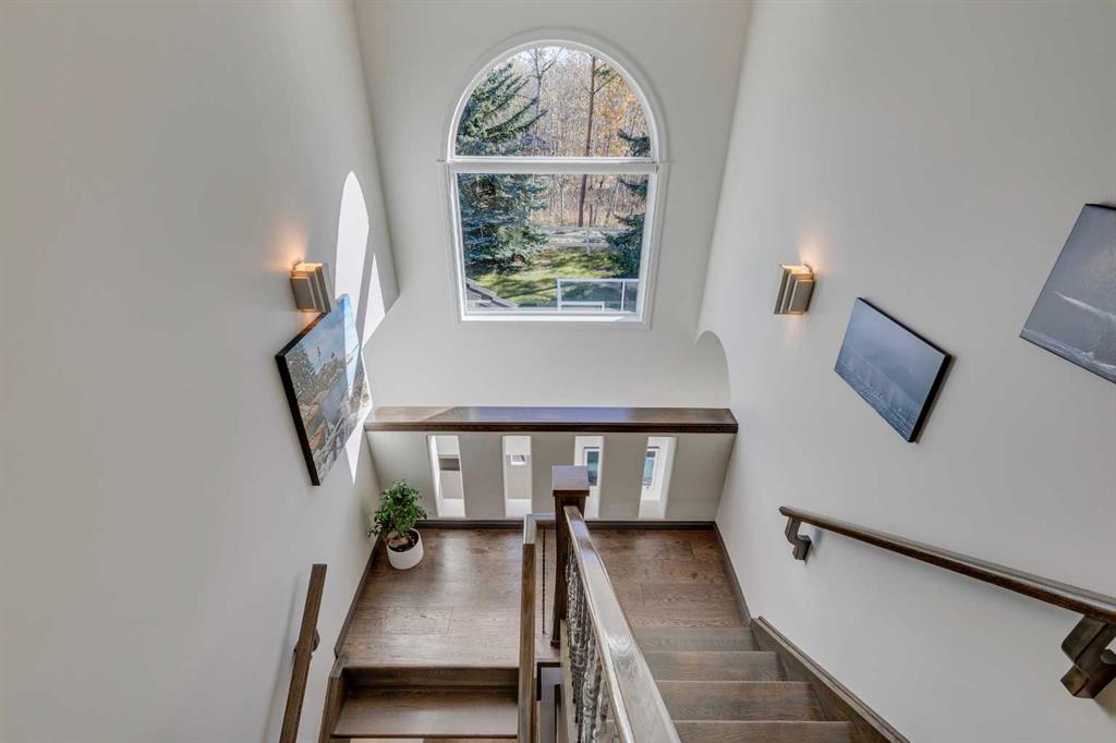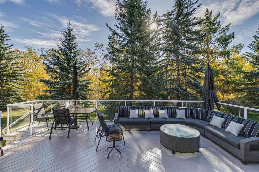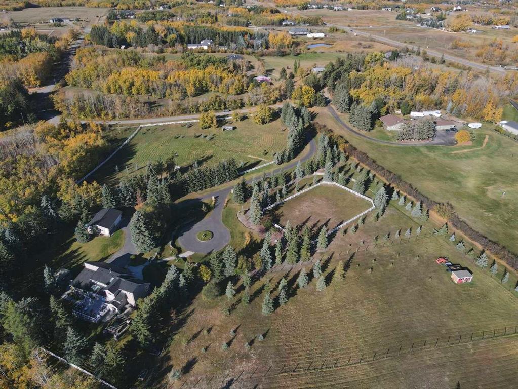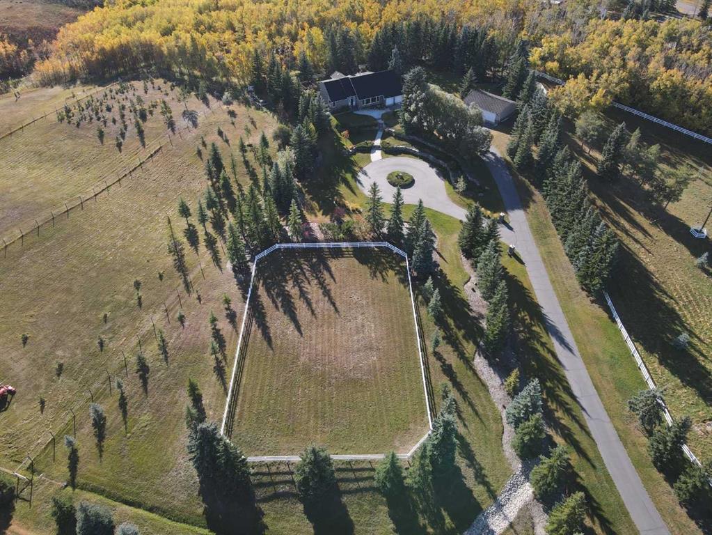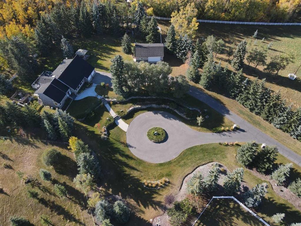 This storybook De Winton acreage welcomes you with a gated entrance and a picturesque tree-lined winding paved drive that hints at the beauty and care woven into every corner of the property. Sunlit paddock areas, mature trees, and thoughtfully designed landscaping with tiered rock hardscaping, create an estate-like first impression, complemented by an impressive circular driveway, extensive stonework, and a nearby workshop that adds both function and charm. Inside, the home blends warmth, character, and meaningful updates. A soaring foyer with a grand chandelier opens to curved archways, an open-riser staircase, and a living room anchored by a striking picture window overlooking the front grounds. The extensively renovated kitchen features granite counters, skylights, a central island, focal 2 sided fireplace and rich architectural details, while the dining room offers its own inviting atmosphere with views of the treed backyard. The main-floor primary suite provides a serene retreat with a beautifully updated ensuite and walk-in closet. Upstairs, two additional bedrooms add flexibility, one offering a whimsical peek into the living room below. The backyard is a true extension of the home’s storybook charm. An expansive composite deck overlooks the forested yard, a professionally handcrafted treehouse, and a gazebo-style hot tub area — all just steps from the network of extensive nature trails that wind through the property. These paths lead to hidden viewpoints at rolling hilltop peaks, wildlife, and a tranquil pond framed by trees and the distant backdrop of the Carnmoney Golf Club. Additional paddocks and well-placed shelters complete the acreage, naturally lending themselves to the vision of horses grazing across the landscape. Meticulously & lovingly maintained, thoughtfully updated, and surrounded by extraordinary natural beauty, this exceptional property offers a rare blend of rural tranquility and refined living just minutes from the city — a place where every detail contributes to a lifestyle that feels both magical and deeply grounded. This is the quintessential country residential dream! ***PLEASE be sure to view the flip-book brochure and video***