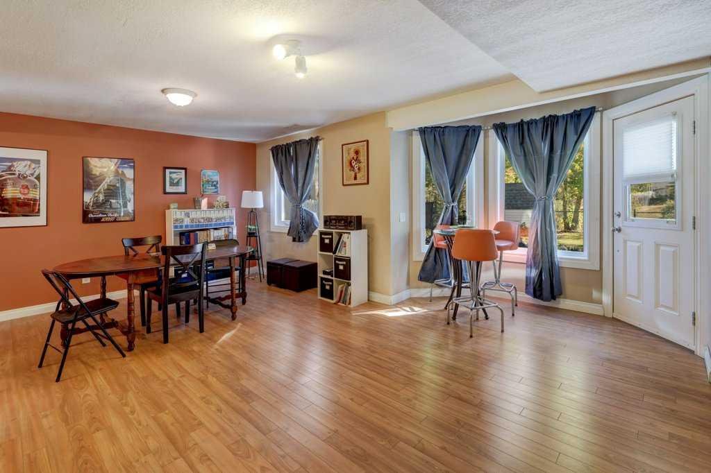 Step inside to a bright, open-concept main floor featuring rich laminate flooring, real wood trim, and an abundance of natural light. The gourmet kitchen has been tastefully upgraded with granite countertops, stainless steel appliances, a tile backsplash, and ample cabinetry—perfect for the home chef. The adjoining dining area and living room with a gas fireplace provide a warm, inviting space overlooking the private, treed backyard.
