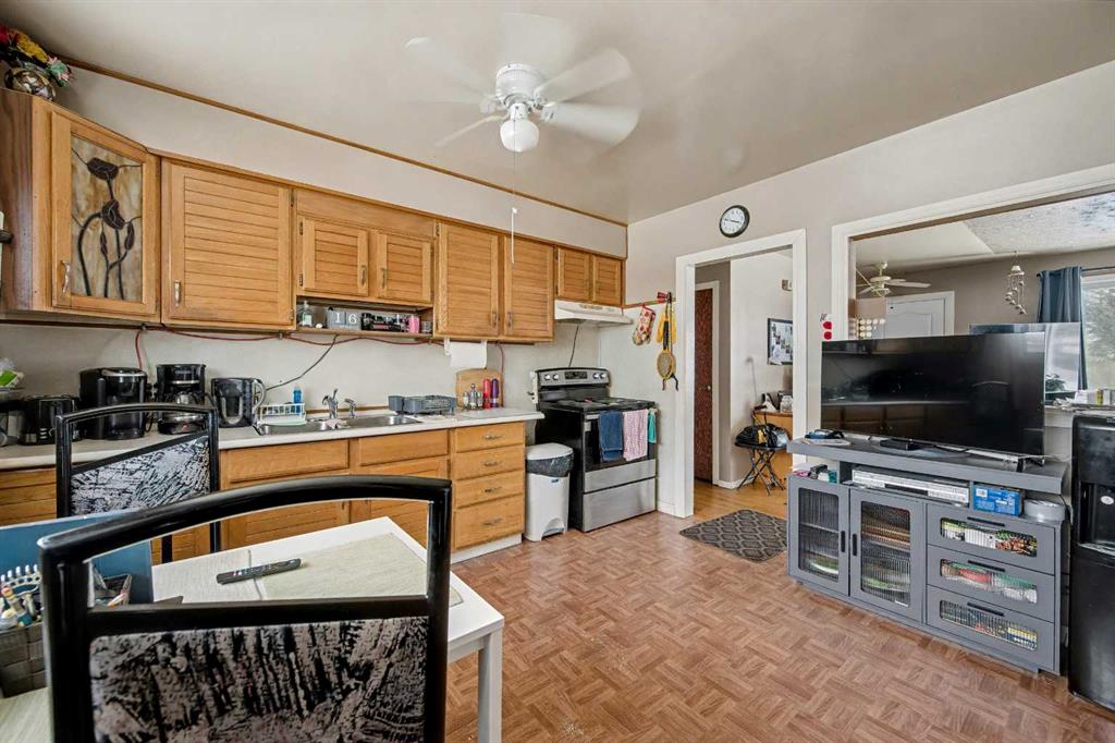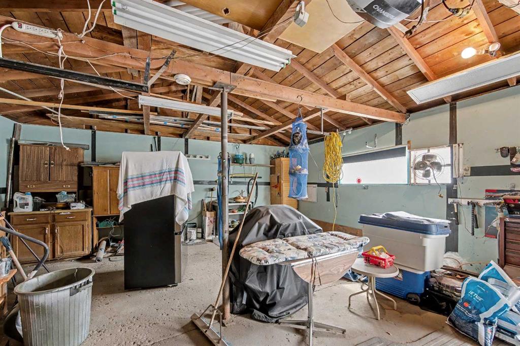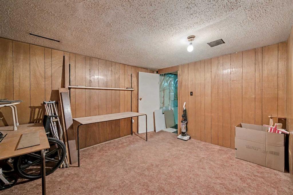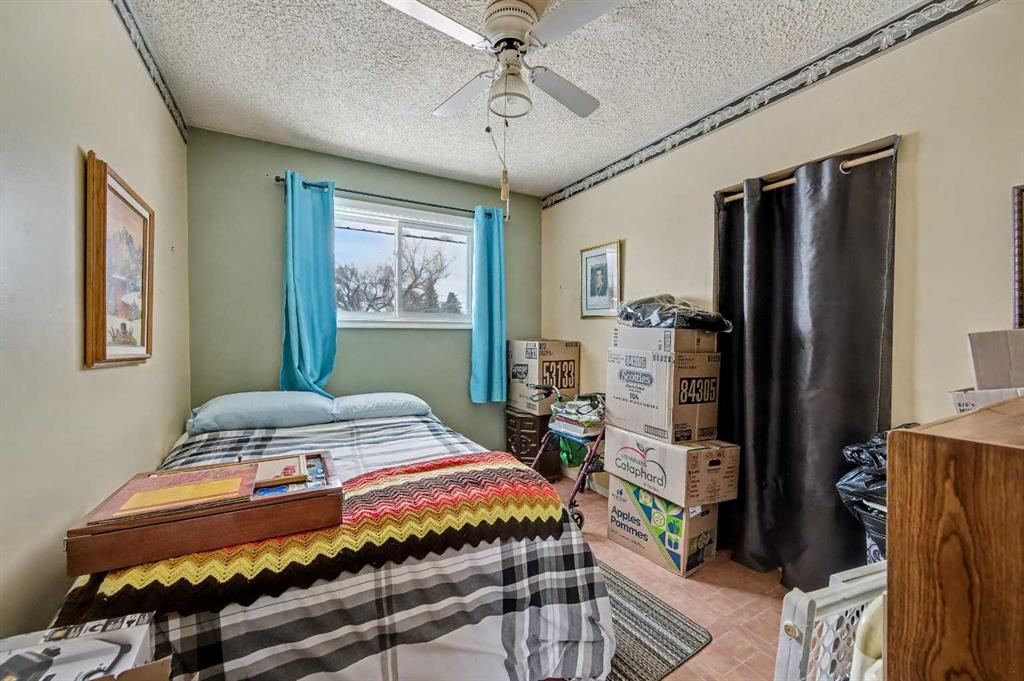 This bungalow offers solid value and is located on a quiet street next to a park. With 1,061 square feet above grade, the main floor includes three bedrooms, a spacious living room, and a kitchen with an eating area. The living room and hallway feature solid hardwood flooring that could be refinished, while the remaining rooms have linoleum. The home has had some key updates over the years, including main floor windows (2024), furnace and central air (2014), roof shingles (2010), and new doors (2026). The main bathroom has been converted to a three-piece for accessibility. The basement includes two additional bedrooms, a recreation space, and a large laundry/mechanical room. The second bathroom requires work but has existing plumbing in place. Outside, there is an oversized double detached garage and a large backyard. Located in Forest Lawn, close to elementary, junior high, and high schools, as well as shopping, transit, and major routes. A good opportunity for buyers looking to update and add value.