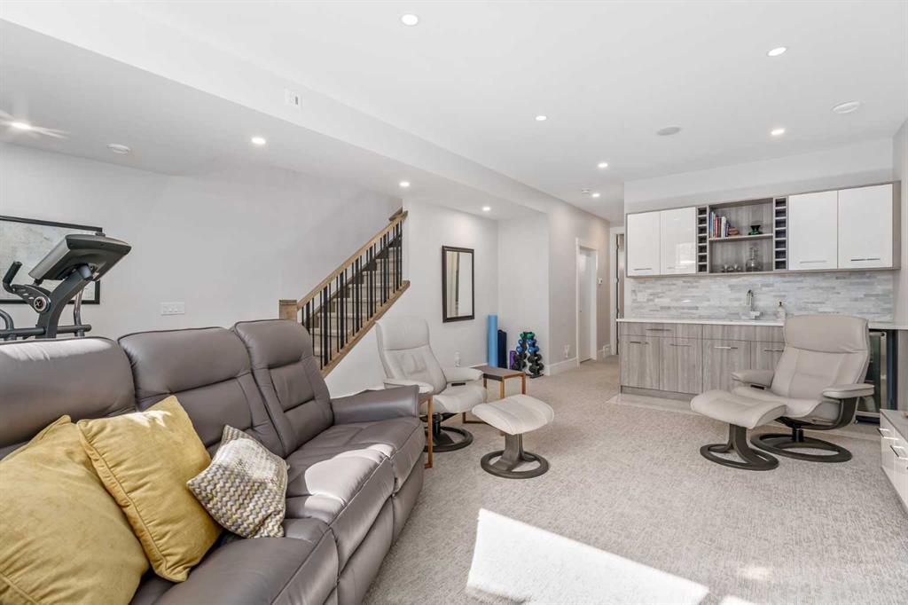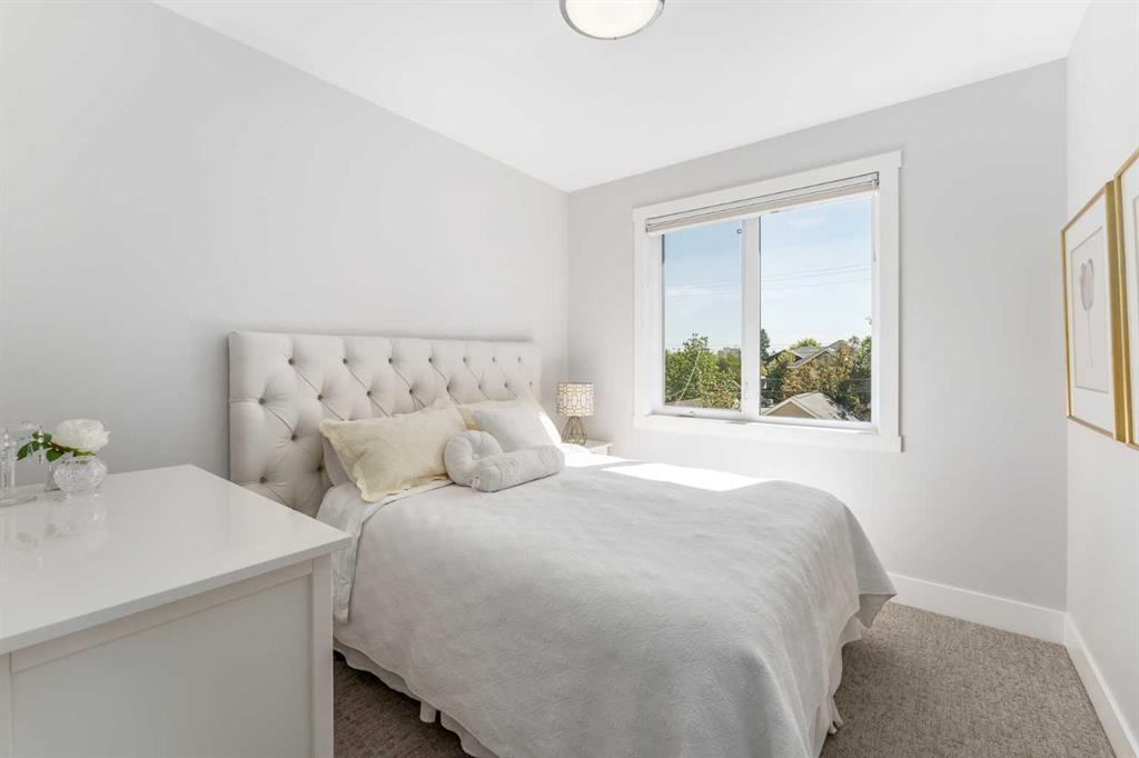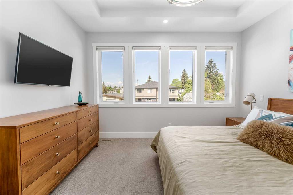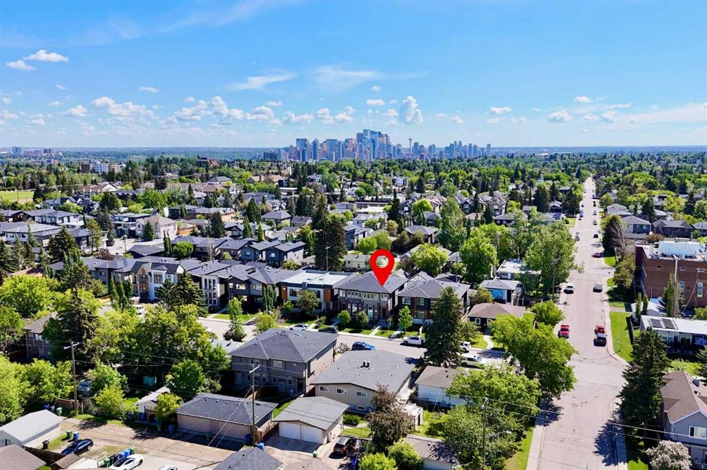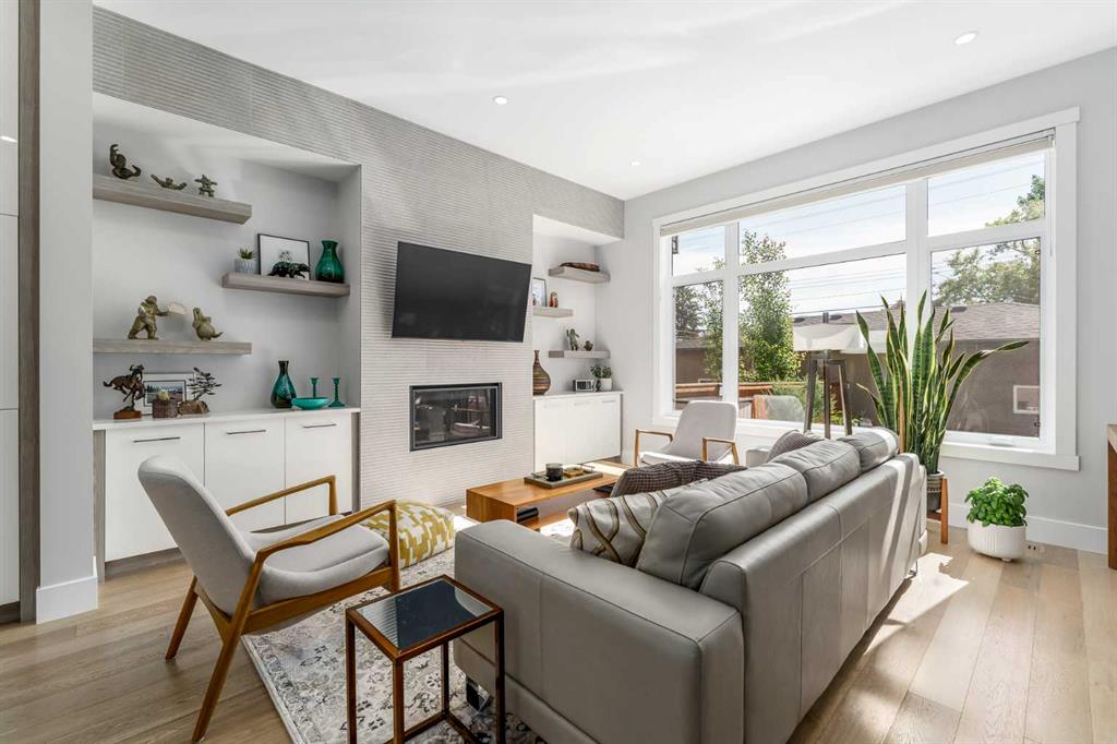Not all infills are created equal. This modern Killarney residence stands apart with craftsmanship you can see, and construction you can feel. Bathed in natural light through oversized windows and framed by 10’ main-floor ceilings, the home balances warm engineered hardwood with a refined, contemporary palette. From the moment you step inside, the fit and finish telegraph quality: crisp lines, precise millwork, and a floor plan that moves effortlessly from everyday living to elegant entertaining. At the front, a formal dining room sets the tone, three large picture windows, a statement light fixture and room for those long, lively dinners. The heart of the home is an oversized chef’s kitchen that’s both beautiful and hard-working: white and warm wood-grain cabinetry to the bulkhead, gleaming waterfall quartz counters, built-in wall oven, a gas cooktop beneath a sleek stand-alone hood fan, and a Carrara marble herringbone backsplash that wraps the hood for a bespoke, designer finish. The generous island invites coffee catch-ups and weekend prep, while the full upgraded stainless appliance package delivers performance worthy of the space. Anchored by a tiled gas fireplace with custom open shelving, the living room is scaled for comfort and conversation. It flows naturally to the backyard for easy summer living, with over $40k in low maintenance landscaping with concrete walkways, a large patio, and BBQ gas hookup so hosting is as simple as turning a knob. Upstairs, the private retreat continues the theme of understated luxury. The primary suite features a tray ceiling, upgraded blinds, and a walk-in closet fit with custom built-ins. The spa-calibre 5-piece ensuite pampers with a freestanding soaker tub, an oversized glass shower, 24″×24″ tile, in-floor heat, and a steam rough-in already planned into the layout. Two additional bedroom suites are thoughtfully finished—each with true walk-in closets and custom storage (one with a stylish wallpaper feature wall). A proper laundry room, complete with cabinetry, folding counter, and sink—keeps the day-to-day running smoothly. The fully finished basement is made for movie nights and game days. A large rec/media area includes a custom wet bar with sink, wood-grain and white cabinetry, marble tile backsplash, and a wine fridge,an entertainer’s ally. Berber carpet adds warmth underfoot, while in-floor heating keeps the entire level comfortable year-round. A sleek 3-piece bathroom with a floating vanity serves guests with style. And because true quality goes beyond finishes, this level was engineered with approximately six inches of insulation beneath the slab for superior efficiency and comfort. Set on a quiet inner-city street in the heart of Killarney—close to parks, schools, transit, and the best of local cafés and amenities—this home delivers the rare combination of design, durability, and day-to-day livability. If you value details you can feel as much as finishes you can see, you’ll know…this is the one.