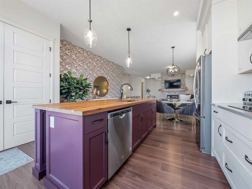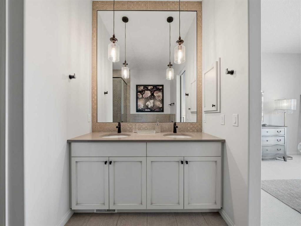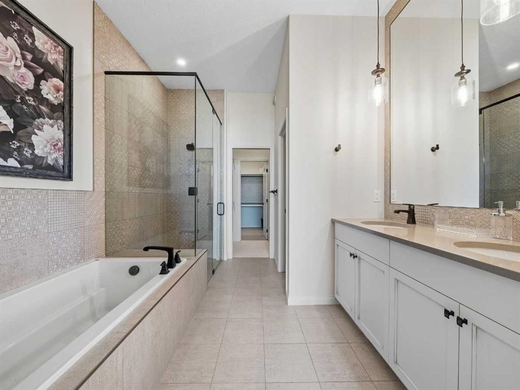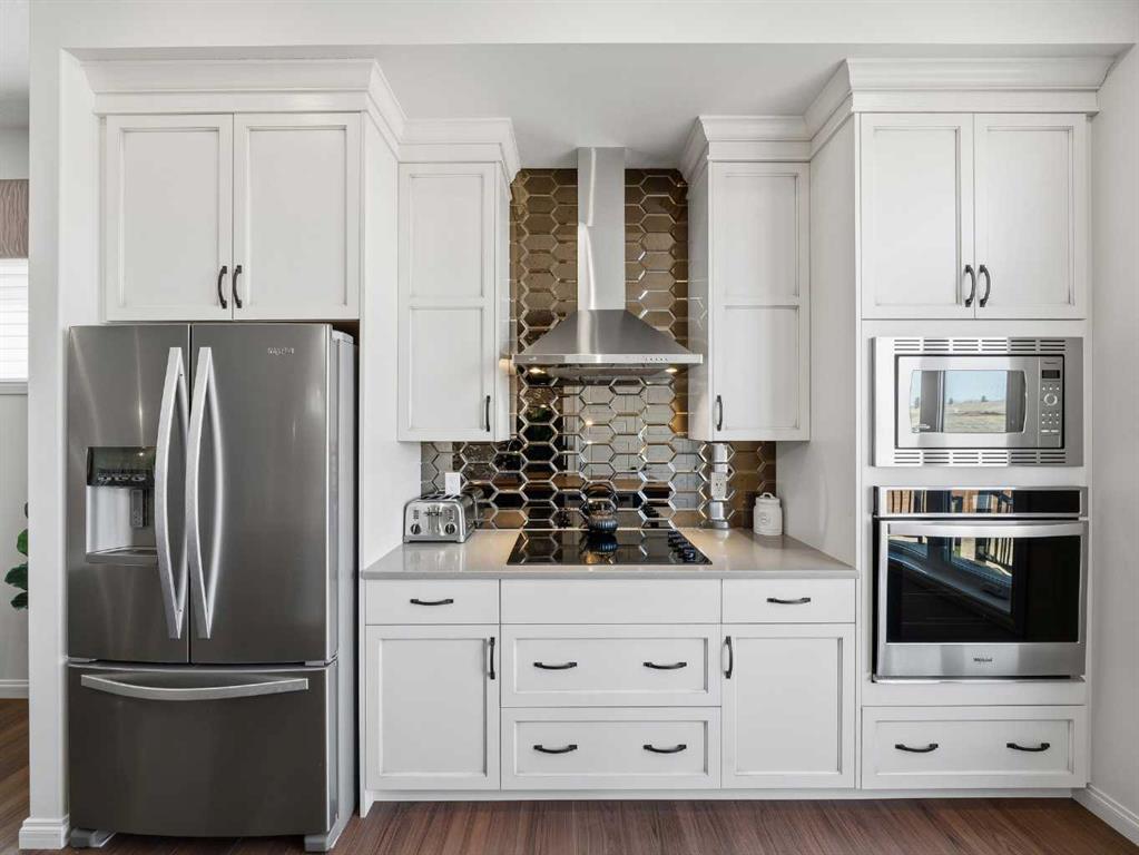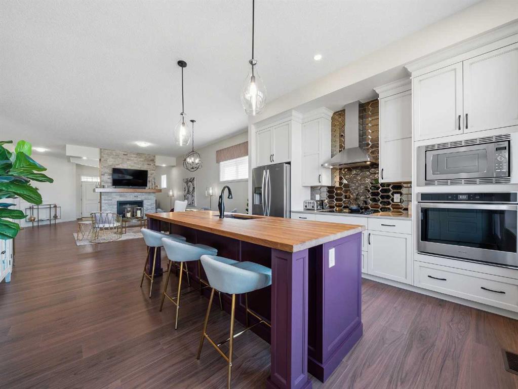 OPEN HOUSE THIS SATERDAY & SUNDAY FROM 1pm – 3pm. Stunning executive bungalow backing onto D’Arcy Golf Course! This Morrison-built villa show home (THE HEPPNER) offers one of the largest floor plans on the street with 10’ ceilings and luxury vinyl plank flooring throughout. Don’t forget to notice the Gemstone lighting and the irrigation system to help make your lawn perfect. The bright, open-concept main floor features a two-sided gas fireplace that sits between a reading/flex room and the main living room. The chef-inspired kitchen with ceiling-height white cabinetry, massive island, and stainless steel appliances is a warm and welcoming space.