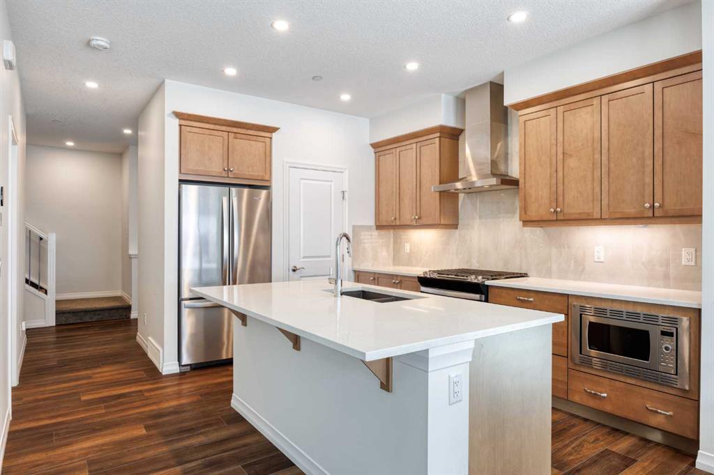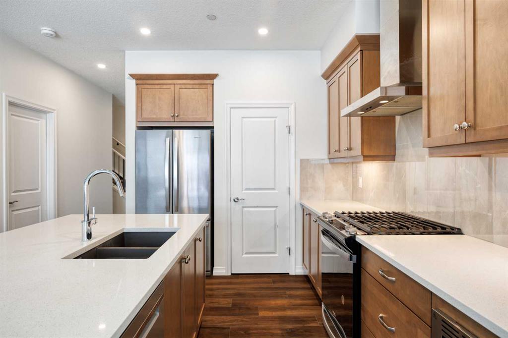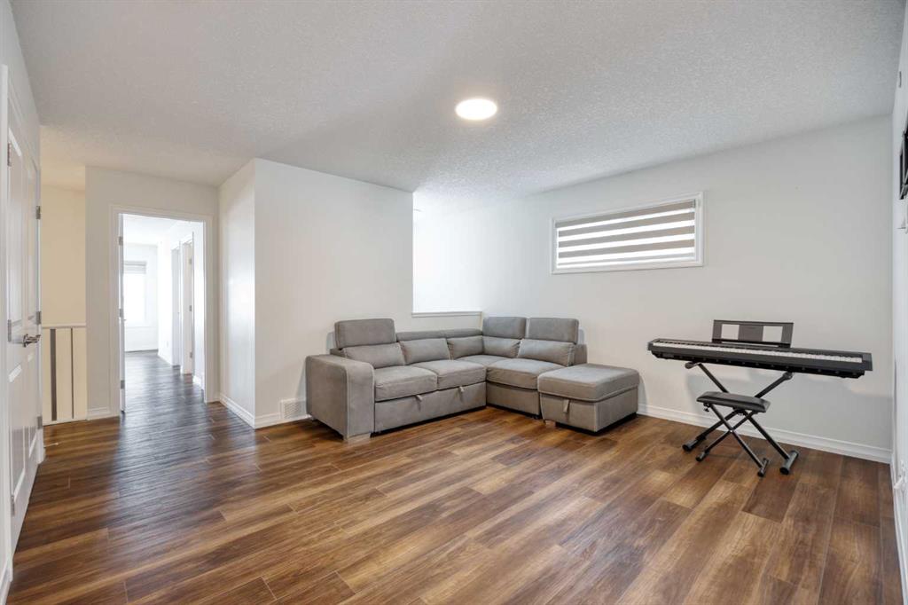 Welcome to Livingston! This certified Green Home by Jayman offers modern sustainability and smart living. Featuring solar panels, Smart Home technology, a UV water filtration system, and rough-in for an electric car charger, this home is designed for energy efficiency and future-forward convenience. The separate side entrance for a future Legal Suite (needs Building permit) provides excellent flexibility, whether for additional income or extended family living. This well-designed 3+1 bedroom, 3.5-bathroom home offers over 2,580 sqft of fine living space located on a conventional lot (NOT zero lot line). This home offers an open layout, a finished basement, and fronting on stunning unobstructed views of Livingston Pond. The landscaped and fully fenced sunny backyard features a deck with a gas hookup. Step inside to find 9-foot ceilings on the Main Level and luxury vinyl plank flooring throughout the Main and Upper floors. The open floor plan seamlessly connects the Living Room to the Kitchen, which is designed for both style and functionality. It boasts quartz countertops, stainless steel appliances, ample cabinetry, a large island, and a spacious pantry. A dedicated Den on the Main Level provides the perfect space for a home office or study. Large triple-paned windows throughout the home enhance energy efficiency while providing excellent insulation and abundant natural light. Upstairs, the large Bonus Room offers a versatile space for family gatherings and movie nights. The Primary Bedroom is a private retreat with breathtaking views of the pond and park, spacious enough for a King-size Bed, and completed with a walk-in closet with a window and an Ensuite Bath. Two additional good-sized Bedrooms and a full bath perfect for family. The convenient Upper-Level Laundry Room completes this level. The fully finished Basement completed by the builder offers even more functional living space. It includes a Recreation Room with rough-in for a future Kitchen or Bar area, a good-sized Bedroom, and a Full Bath, making it ideal for guests or a potential Legal Suite conversion (permits required). Additional features include a tankless water heater, ensuring energy-efficient, on-demand hot water. This home is ideally located near parks, playgrounds, sidewalks, streetlights, and scenic walking and biking paths, offering a perfect balance of comfort, functionality, and breathtaking views. This is a must-see home that perfectly blends modern living with a stunning natural backdrop. Book your private viewing today!