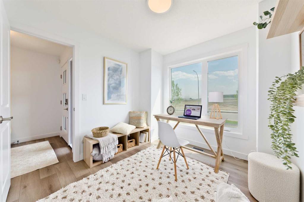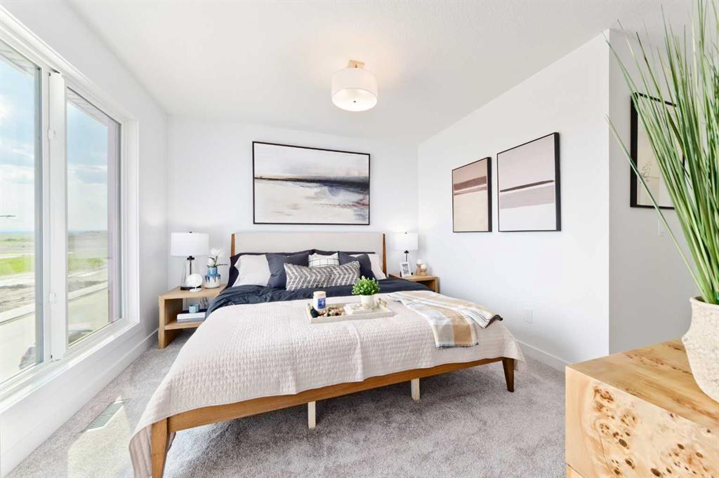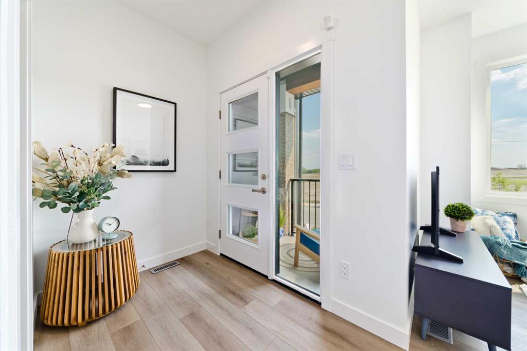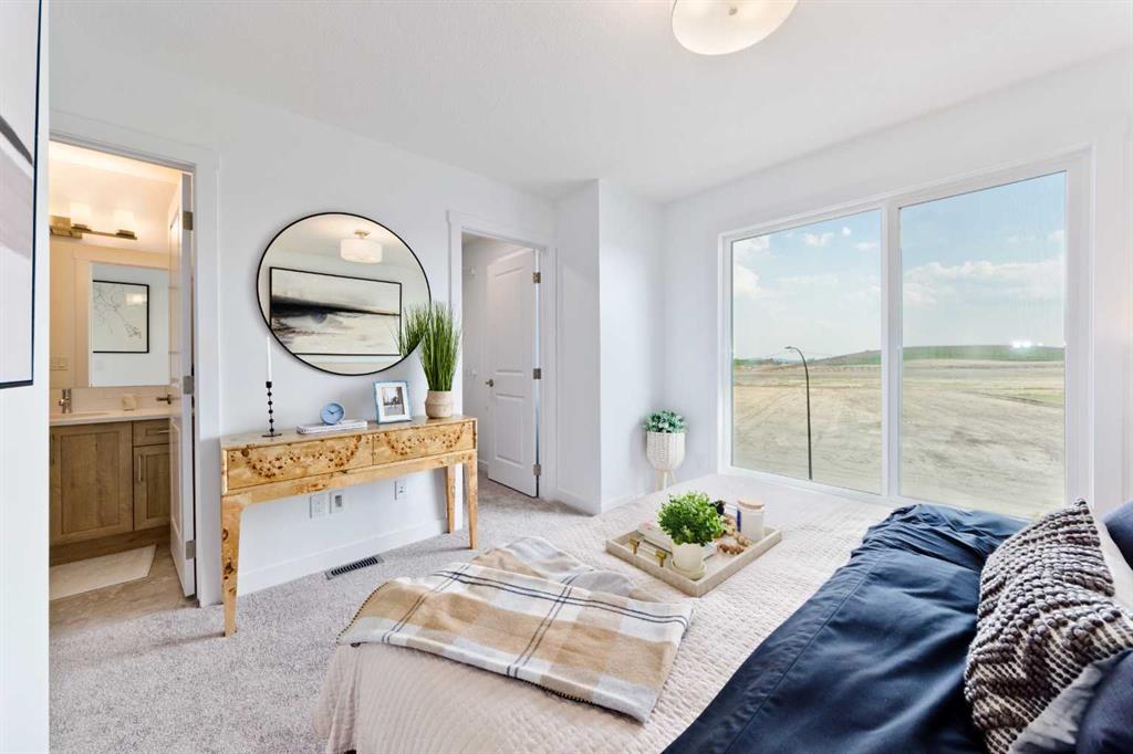 Welcome to the “Avery,” a well-designed end-unit townhome offering over 1,700 sq ft of living space across three functional levels, with a bonus: an unfinished basement. With a thoughtful layout, multiple living areas, and a double attached garage, this home delivers and checks all the boxes. The main floor is bright and open, featuring a spacious living room that flows seamlessly into the dining area and kitchen. The kitchen is efficiently laid out with ample cabinetry, a pantry, a spacious island and a sleek stainless steel appliance package. Step out onto the private balcony just off the dining area, which is a perfect place for morning coffee or summer evenings. Upstairs, you’ll find three bedrooms, including a generously sized primary retreat complete with a walk-in closet and private ensuite. Two additional bedrooms, a full bathroom, and convenient upper-floor laundry complete this level. The entry-level offers a versatile office or flex space, making it an ideal working-from-home space, home gym, or guest area, with access to the double-attached garage. The unfinished basement is a blank canvas, ready for your future development ideas. This home offers a smart layout, ample square footage, and the potential to add value over time, making it the perfect home for first-time home buyers, families, professionals, or investors alike. Situated in Calgary’s “new west,” offering quick access to the mountains and downtown via the Stoney Trail ring road. The community includes interconnected parks, creative natural playgrounds, tree-lined boulevards, and upcoming commercial spaces featuring cafes and services. *Photos are of the show home and are representative. RMS has been applied to the construction drawings provided by the builder. Taxes to be assessed.