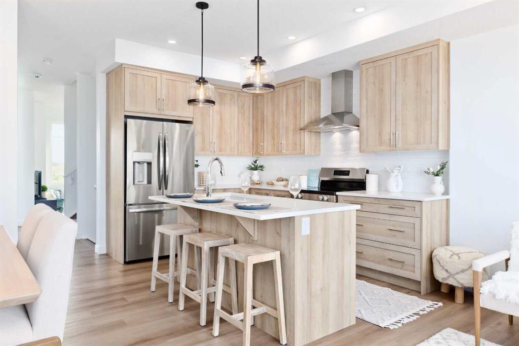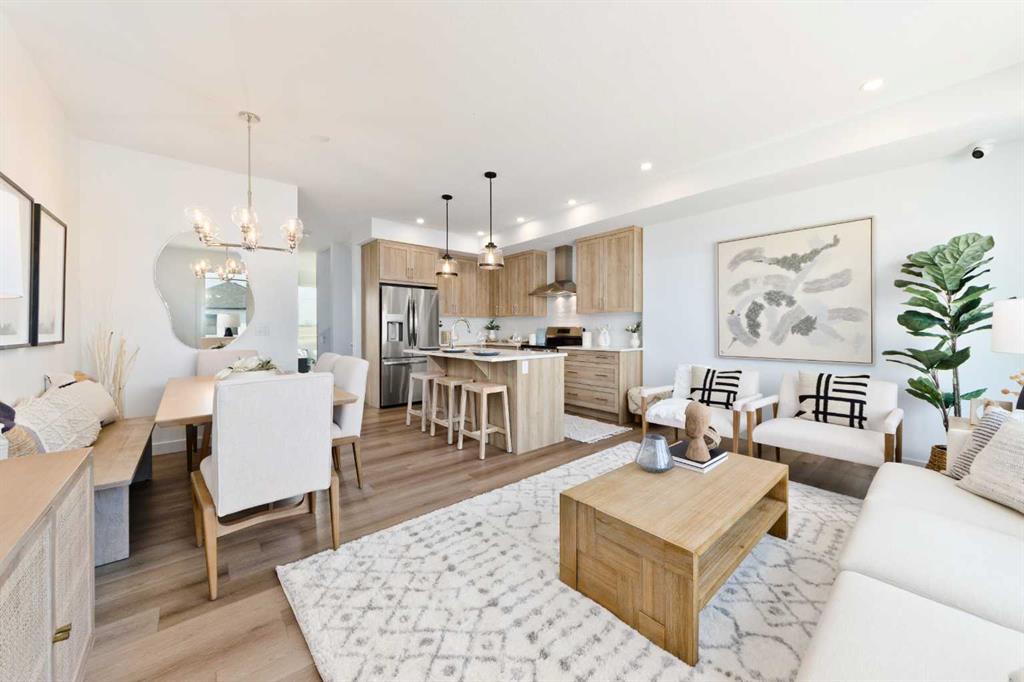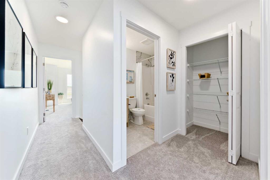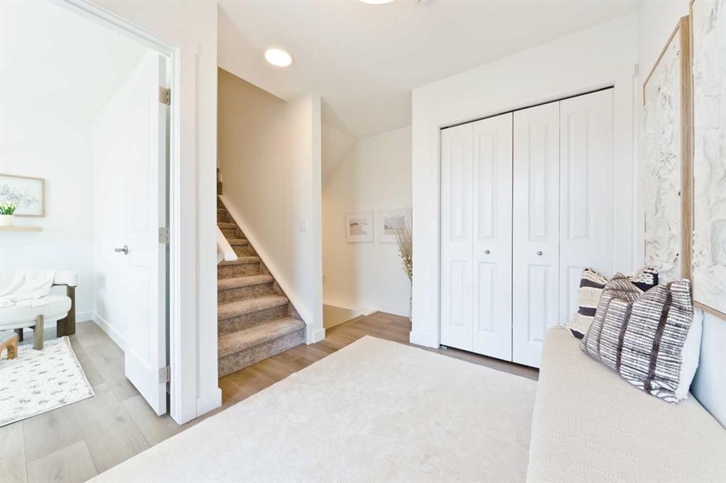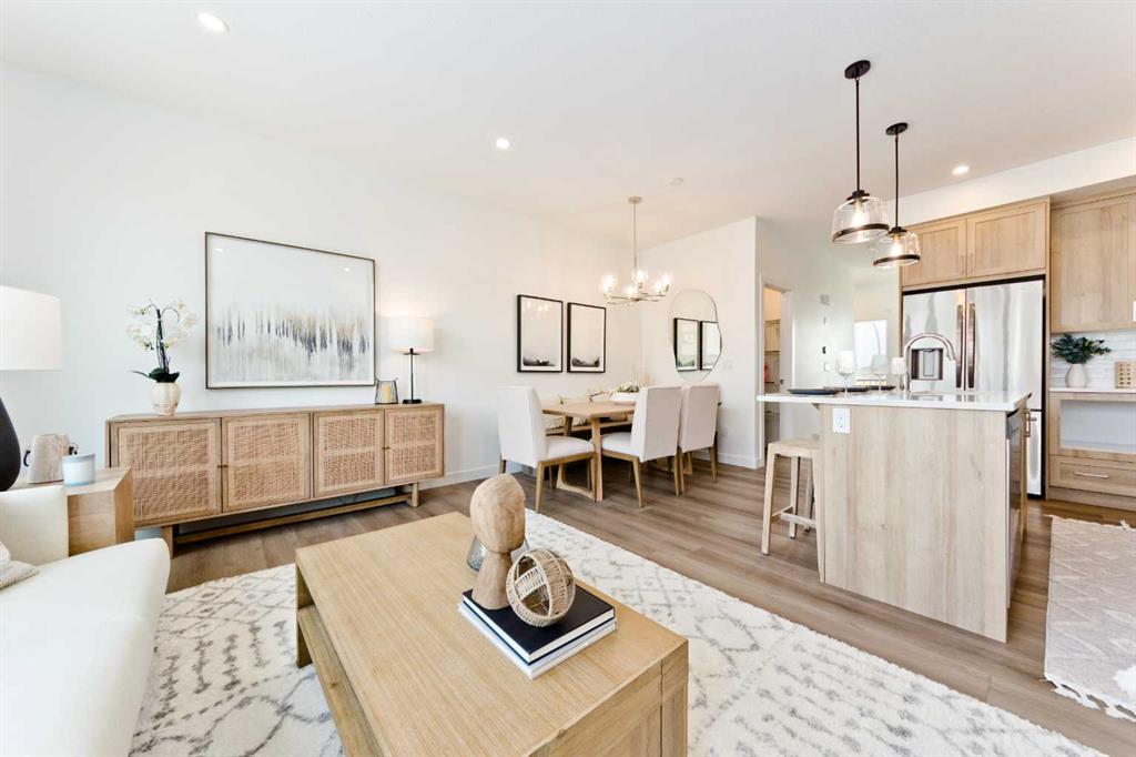 Welcome to the “Avery,” a well-designed end-unit townhome offering over 1,700 sq ft of living space across three functional levels, with a bonus: an unfinished basement. With a thoughtful layout, multiple living areas, and a double attached garage, this home delivers and checks all the boxes. The main floor is bright and open, featuring a spacious living room that flows seamlessly into the dining area and kitchen. The kitchen is efficiently laid out with ample cabinetry, a pantry, a spacious island and a sleek stainless steel appliance package. Step out onto the private balcony just off the dining area, which is a perfect place for morning coffee or summer evenings. Upstairs, you’ll find three bedrooms, including a generously sized primary retreat complete with a walk-in closet and private ensuite. Two additional bedrooms, a full bathroom, and convenient upper-floor laundry complete this level. The entry-level offers a versatile office or flex space, making it an ideal working-from-home space, home gym, or guest area, with access to the double-attached garage. The unfinished basement is a blank canvas, ready for your future development ideas. This home offers a smart layout, ample square footage, and the potential to add value over time, making it the perfect home for first-time home buyers, families, professionals, or investors alike. Situated in Calgary’s “new west,” offering quick access to the mountains and downtown via the Stoney Trail ring road. The community includes interconnected parks, creative natural playgrounds, tree-lined boulevards, and upcoming commercial spaces featuring cafes and services. *Photos are of the show home and are representative. RMS has been applied to the construction drawings provided by the builder. Taxes to be assessed.