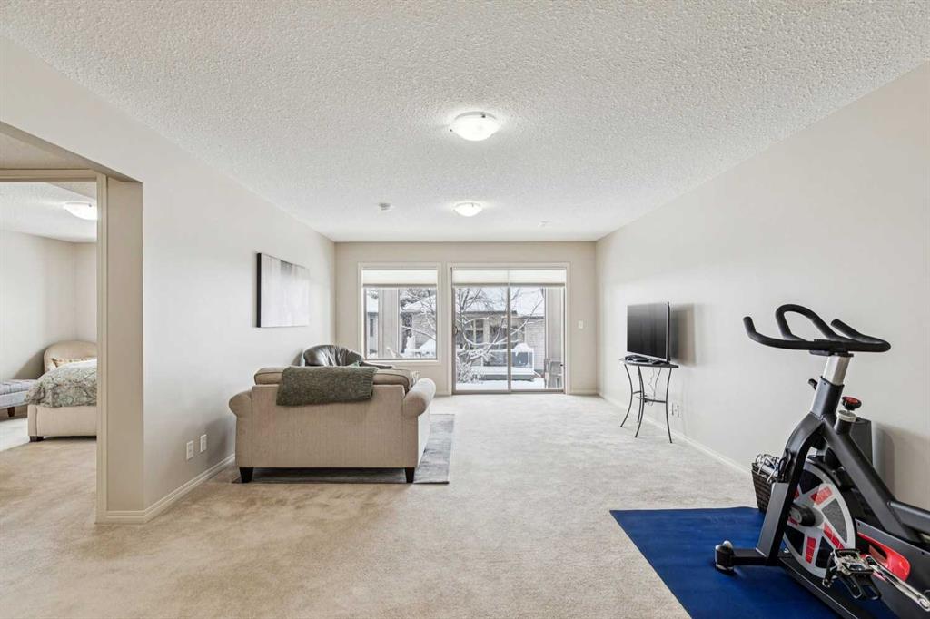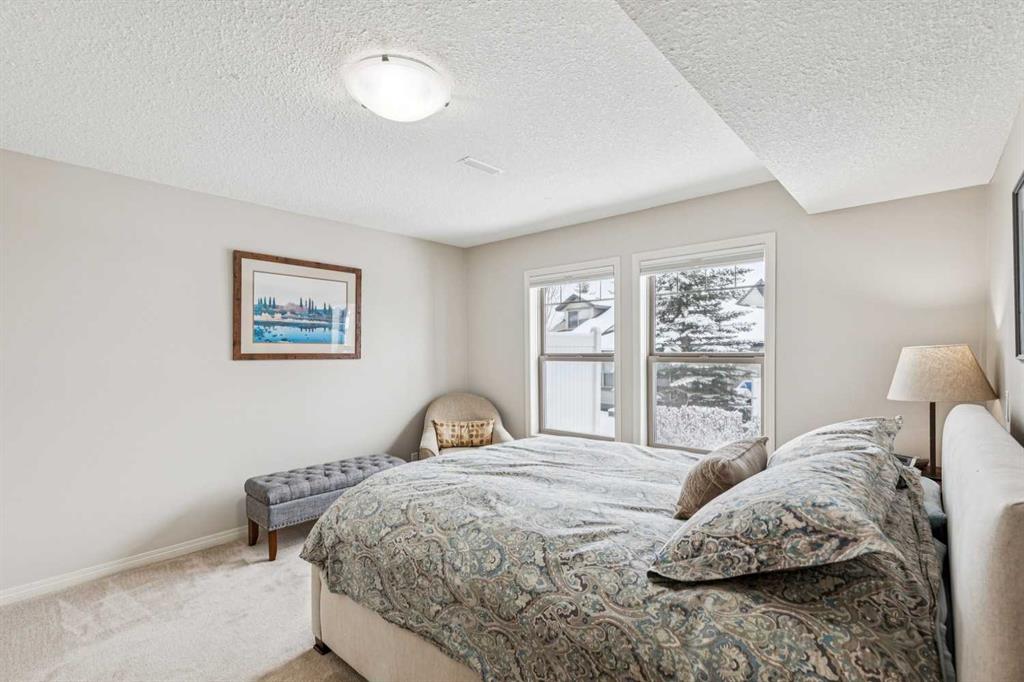 Designed for effortless living and lock-and-leave freedom, this south-facing bungalow villa with mountain views is the perfect next chapter for empty nesters, snowbirds, or anyone ready to downsize without compromise. With a second-floor loft and fully developed walkout basement, this home offers the space you want for guests, hobbies, and entertaining, without the maintenance you don’t. A welcoming foyer sets the tone, with a private home office tucked behind French doors, the ideal spot for part-time work, planning your next getaway, or managing life with ease. The main living area is bright and inviting, where large windows frame the fireplace and fill the space with natural light. An open dining area flows seamlessly into the kitchen, featuring stainless steel appliances, warm wood cabinetry, an efficient layout, and a breakfast bar perfect for casual mornings or wine with friends. The main floor primary suite is bright and comfortable, complete with double closets and a spacious ensuite featuring a soaker tub and rough-in for laundry, offering true single-level living if desired. Upstairs, the vaulted loft overlooks the main floor and adds flexible bonus space for whatever your lifestyle calls for, a TV lounge, reading retreat, fitness area, or creative workspace. The fully developed walkout basement expands your living space even further with a generous family room, guest bedroom, full bathroom, laundry room, and excellent storage. Step outside to the west-facing deck and take in the mountain views, a beautiful backdrop for morning coffee, and relaxed evenings outdoors. The covered patio below opens to a beautifully landscaped shared green space with mature trees. Additional updates provide peace of mind, including a new furnace (2025), washer and dryer, hot water tank, water softener, and air conditioning (2024). A double garage plus convenient visitor parking directly across from the unit make everyday living easy. Perfectly located for a low-maintenance lifestyle, you’ll appreciate quick access to Stoney Trail and Glenmore Drive, with shopping, dining, and amenities at Westhills just minutes away, along with the Westside Recreation Centre up the street. Lock the door, travel with confidence, and come home to comfort, views, and effortless living.