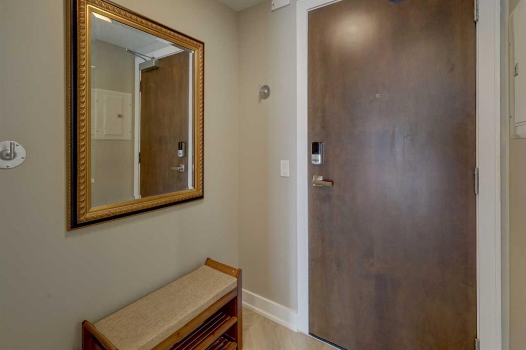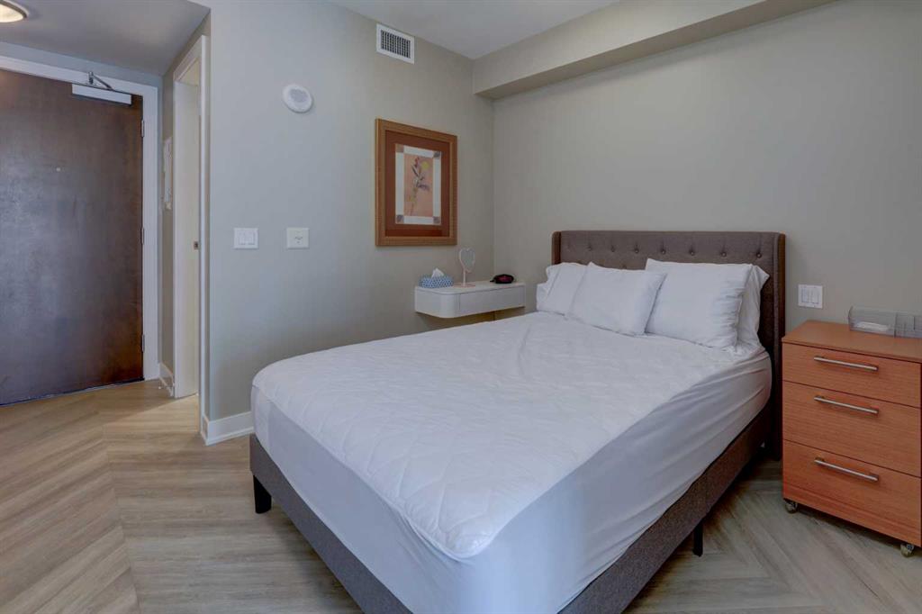 Welcome to this WEST FACING, 480 sq.ft, 1 Bedroom, 1 Bath condo situated in Luxurious Waterfront Tower 2. The size is misleading…very useful space w/ 9′ Ceilings + floor to ceiling Low E windows makes it bigger than it is. NEW LVP FLOORS throughout! Functional Chef Inspired kitchen features undermount sinks, full height mosaic backsplash, under-cabinet lighting, stone countertops & top of the line S/S appliances (Panasonic under-counter microwave, wood paneled Sub-Zero fridge w/ lower freezer, new dishwasher, gas cooktop & electric wall oven). Double Closets for bedroom, luxurious bathroom with marble counter tops, under-mount sinks & large standup shower. Air conditioned for those hot sunny days! Balcony, 1 Assigned underground parking spot and storage unit on same floor as the Unit. Walking Distance to Eau Claire, walking paths, shops, restaurants. All Furniture & Furnishings included, just bring your suitcase. Amenities include: Full Size Gym with Yoga studio, Theatre Room, Jacuzzi Tub, Steam Room, Car Wash, Recreation Room with Fireplace and Washroom, Visitor Parking.
