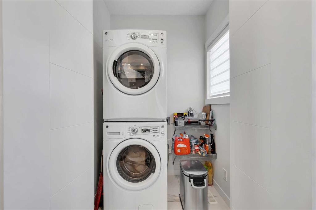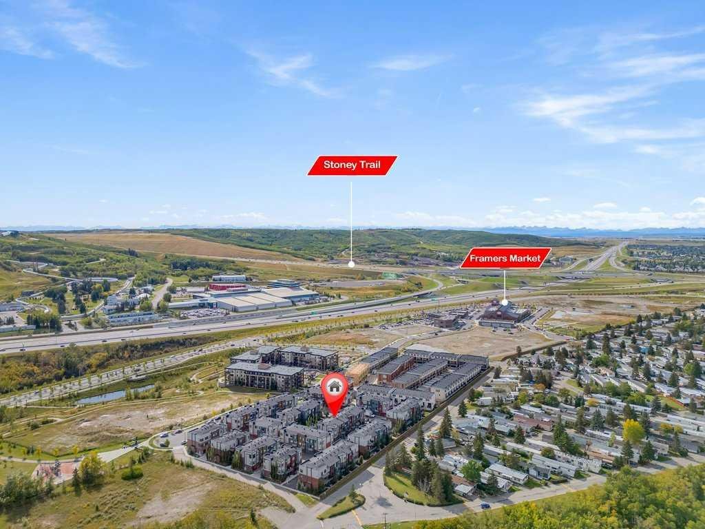 Welcome to Artis in Greenwich — a luxury townhome collection located in one of Calgary’s newest master-planned community. Greenwich spans 59 acres in NW Calgary and blends brownstone architecture with boutique urban living. Home to the Calgary Farmers’ Market West, the community offers an impressive selection of cafés, restaurants, walking paths, parks, and stunning views of WinSport and the Rocky Mountains. This townhome features 1,562 sq ft of thoughtfully designed living space, including a double-primary bedroom layout, a ground-level flex room with a full bathroom, in-floor heating, and a double attached garage. The ground level offers 268 sq ft with a spacious foyer, a versatile flex room currently used as a gym, a 3-piece bathroom, and direct access to the garage. The main level provides 637 sq ft of open-concept living with a bright kitchen, dining area, and living room. The upgraded kitchen package includes sleek white cabinetry with black hardware, stainless steel appliances, gas stove and a designer hood fan. The striking black herringbone-patterned tile backsplash frames the stove area beautifully, creating a focal point balancing the lighter elements of the kitchen. A large island with undermount sink and sleek chrome faucet creates a comfortable seating area to enjoy quick meals or is the perfect gathering spot. From kitchen, step onto the deck equipped with a gas BBQ line. The laundry room is just off the kitchen. The living room is warm and inviting with south-facing windows, an electric fireplace with brick surround, and access to a second balcony which is south facing and overlooks the central courtyard. Upstairs, you’ll find and additional 657 sq ft with two spacious primary bedrooms, each with its own ensuite — one a 5-piece and the other a 4-piece. Additional upgrades include glass panels on stairwells, undermount sinks with full-height tile and mirrors in the bathrooms, upgraded lighting and window coverings, and air conditioning. The double attached garage includes 2 wall heaters and opens up to a off-street double parking pad. The exterior showcases timeless brownstone styling with James Hardie siding, full brick accents, and stucco finishes, offering durability and low-maintenance living. Greenwich’s location is exceptional — just 20 minutes to downtown, quick access north or south, and under an hour to Canmore and Banff. With parks, playgrounds, and the Farmers’ Market within walking distance, this is urban-inspired living at its best. The sellers have been fortunate to have an excellent tenant in place, who is willing to remain should the buyer wish to purchase the property as an investment.