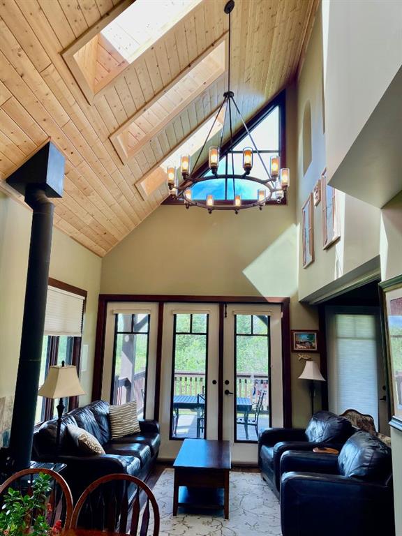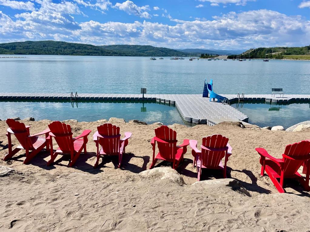 Luxury Cottage Retreat in Exclusive Gated Community – CottageClub at Ghost Lake Quality-crafted by True North Mountain Homes, this high-end cottage offers the perfect blend of comfort, style, and privacy in one of Alberta’s most sought-after recreational communities—just 30 minutes west of Calgary. Located in a quiet, gated community in Phase 1, this home backs onto a serene ravine with unobstructed views, offering rare glimpses of Ghost Lake and the Rocky Mountains. Enjoy sunsets on the massive west-facing covered deck with pot lighting—an ideal spot for entertaining or simply relaxing in total privacy. Your east-facing front porch is perfect for morning coffee, all wrapped in charming curb appeal with Hardie Board siding, stone accents, and a wraparound from balcony to front porch. Inside, be greeted by soaring vaulted ceilings with skylights, a chandelier, and in-floor heating on the main level and in all bathrooms. The open-concept kitchen features full-height cabinetry, quartz counters, tile backsplash, and a huge pantry, with a dining area boasting a built-in bench. The living room’s wood stove adds cozy charm, while a retractable wall with a Murphy bed offers flexible guest space. A main-floor 3-piece bath includes a steam shower and quartz counters. And for those hot summer days there is air conditioning. Upstairs, the primary bedroom’s private balcony showcases views of the lake, mountains, and Wildcat Hills. A second bedroom and heated half-bath complete the upper level. The undeveloped lower level has 6 foot ceilings, there is laundry, a second fridge, and ample storage and family room. Gasline brought to the house in 2022 and gas furnace installed in 2022 costing close to $15,000. Driveway 2022 costing over $8,000. Some new blinds in 2022 costing $1,000. Eaves installed too. Community amenities are unmatched—your private beach access, boat launch, and recreation centre with an indoor pool, spray park, outdoor hot tub, gourmet kitchen, fitness room, library, BBQ area, pizza oven, tennis/pickleball courts, community gardens, firepits, and extensive walking trails. Whether you’re looking for a weekend getaway, a summer escape, or year-round living, CottageClub offers a laid-back lifestyle with every convenience. Location: CottageClub at Ghost Lake Bedrooms: 2 + flex sleeping space Bathrooms: 1 full + 1 half Views: Lake, mountains, ravine Proximity: 30 min to Calgary This property’s combination of privacy, quality craftsmanship, and resort-style amenities makes it a rare find. Don’t miss your chance to own a slice of paradise!