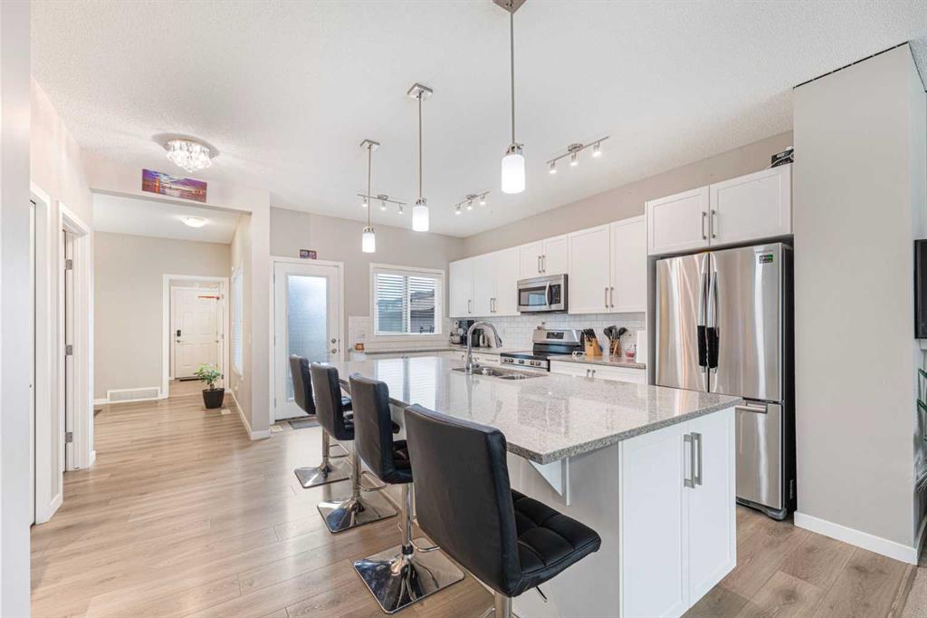 Welcome to this Jayman-Built home with 4 BEDROOMS UP and an ATTACHED REAR DOUBLE GARAGE and a South backyard. At just over 2137 sq ft, this is a great home that can grow with your family. Some bonuses include upgraded kitchen and appliances with island and eating bar, main floor den, walk-in pantry and high ceilings. Upstairs you will find 4 bedrooms, with a massive primary bedroom and walk-in closet. The primary ensuite is a luxurious 5 piece with his/her vanities plus a shower and tub. You will also find the laundry room upstairs. The large (nearly 1000 sq ft) basement is where you can let the kids play or use it for storage. There is a hot water-on-demand. This home has been well-cared-for and has very good access to Stoney Trail and lots and lots of amenities in the area.