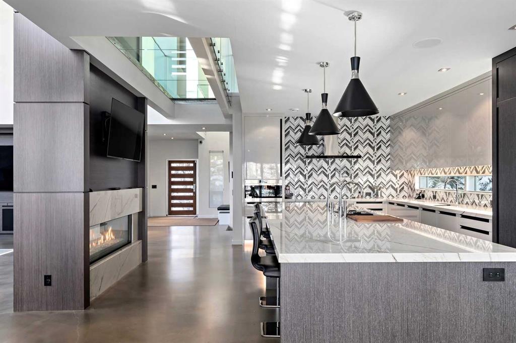 Experience Unparalleled Luxury: A Masterpiece of Design and Craftsmanship. This isn’t just a house; it’s a statement. A testament to exquisite taste and meticulous attention to detail. Since 2015, this remarkable residence has undergone a complete transformation, with well over one million dollars invested in interior and exterior tailoring, all orchestrated by the renowned Douglas Cridland and Associates. The result? A home that seamlessly blends modern elegance with unparalleled comfort, creating a sanctuary you’ll be proud to call your own. Step inside and be greeted by the warmth and sophistication of stained radiant heated concrete floors, setting the stage for the home’s contemporary design. Substantial solid core wood veneer doors, adorned with sleek black anodized Baldwin hardware, open to reveal a world of meticulous craftsmanship. The chef’s kitchen is a dream realized, equipped with top-of-the-line Wolf appliances, including an M Series oven, induction cooktop, warming drawer, and steam oven. A Grohe Blue chilled and sparkling filtration system, Sub-Zero refrigerator and freezer, two chilled vegetable drawers, two Cove dishwashers, and Galley culinary sinks ensure effortless entertaining, while a double-sided fireplace, anchored by a 55″ 4K TV, provides warmth and entertainment. The dining area, bathed in natural light from expansive Nana Walls, seamlessly connects to the outdoors. A custom-crafted wine storage unit, with a 200+ bottle capacity, showcases your collection. The living room invites relaxation with soaring ceilings and expansive windows that frame serene views of the surrounding forest. A Denca entertainment center, featuring an 85″ 4K cinematic display and a meticulously calibrated high-fidelity audio system, seamlessly integrates with the Control4 smart home system, elevating the space to a haven of discerning entertainment. Ascend the striking open-tread staircase and transition across the custom glass walkway creating an unforgettable element of architectural intrigue while leading to the luxurious primary wing which is truly an escape within itself. Two further bedrooms and a meticulously designed shared bathroom compliment the upper level while the lower levels unveil a curated selection of premier home amenities: a substantial fitness center, a comprehensive laundry suite, a private guest quarter, and a bespoke bar and cinema. Complete with a meticulously organized car salon that can accommodate a car lift for a total of 6 cars, and a striking revitalized exterior envelope. This exceptional residence is more than just a home; it’s an embodiment of refined living, where every detail has been carefully considered to create a sanctuary of luxury, comfort, and enduring style.