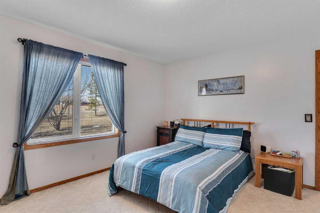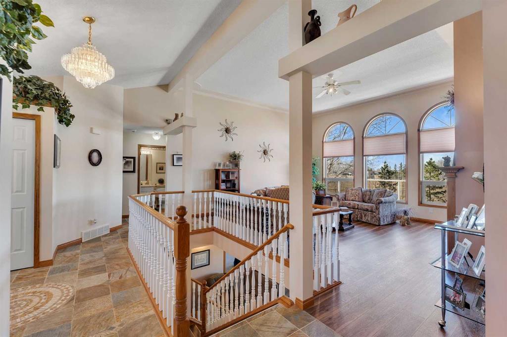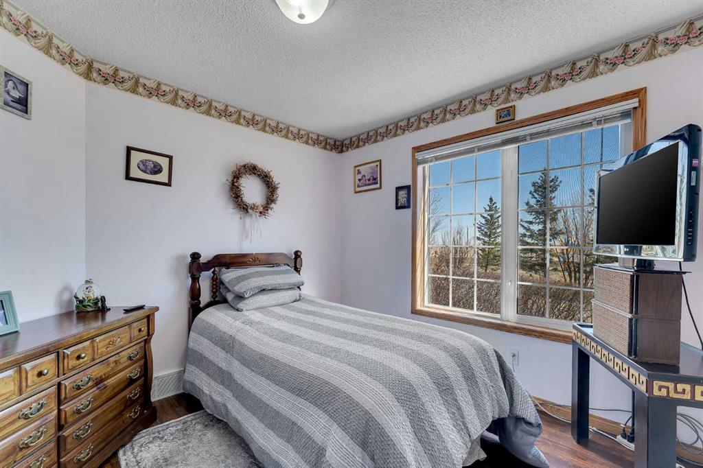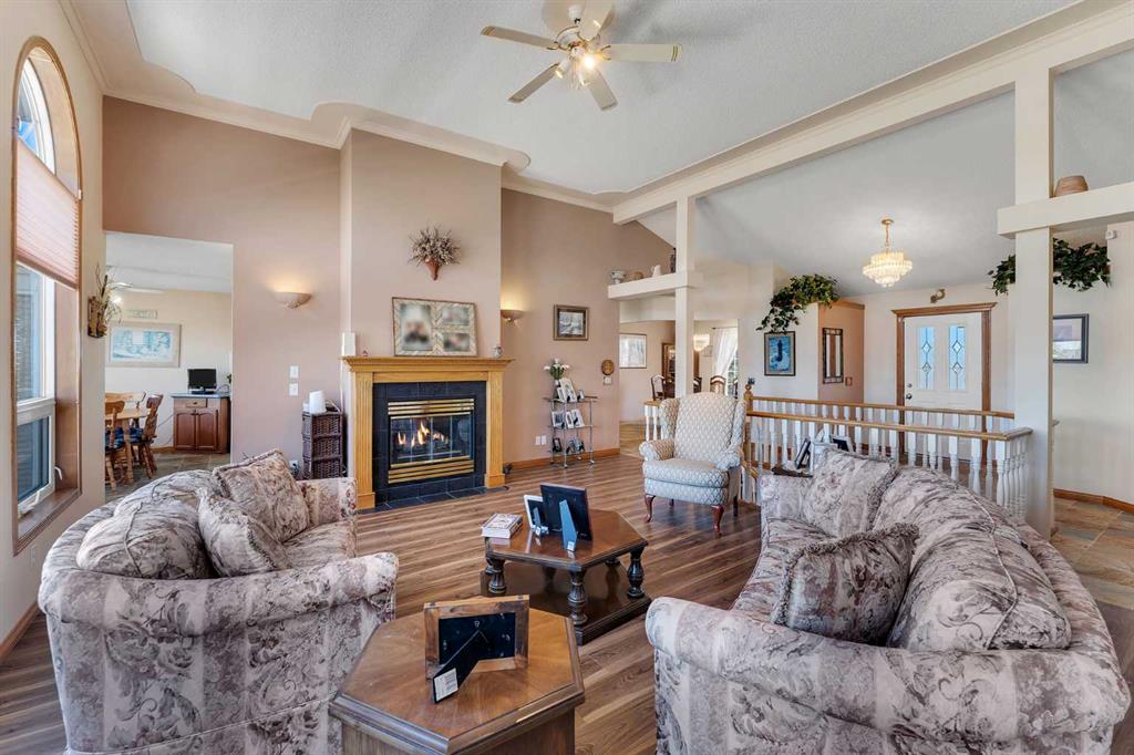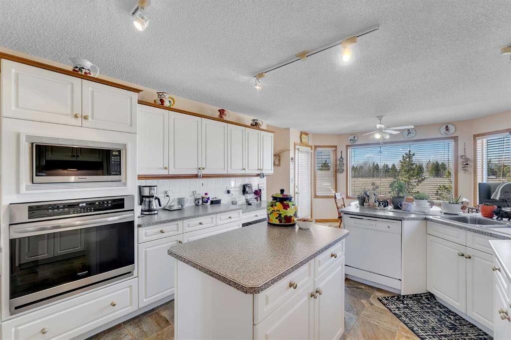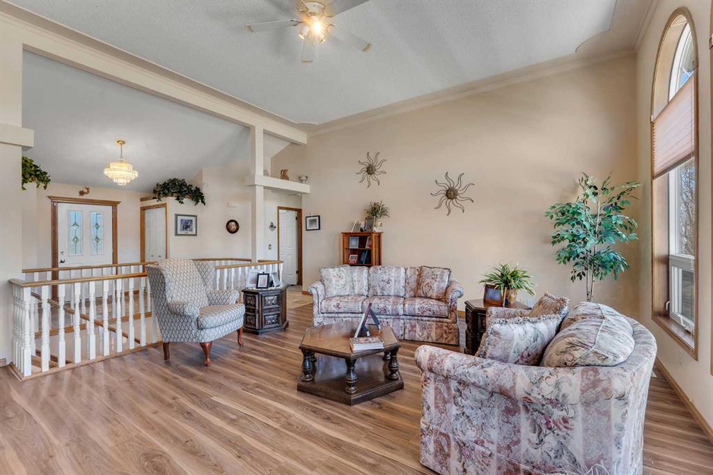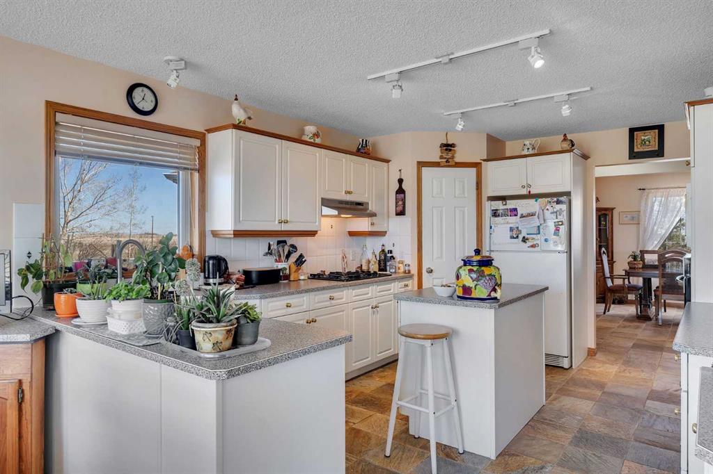 Walkout bungalow on 4 acres with a triple attached garage and over 3000 sq ft of developed living space. This is the kind of property that offers both space and flexibility—inside and out. The main floor is bright and open with high ceilings that make the entire home feel even larger. The living room is anchored by a gas fireplace and flows easily into the white kitchen, complete with ample cabinetry, generous counter space, and a sunny breakfast nook overlooking the property. A formal dining room adds the perfect spot for hosting family dinners or special occasions. There are two bedrooms on the main level, including the primary with its own ensuite, offering a comfortable and private retreat. The fully developed walkout basement expands your living space with three additional bedrooms, a large rec room, and direct access to the outdoors—ideal for guests, a growing family, or multi-generational living. Outside, the 4 acres provide endless possibilities. Enjoy the privacy, the views, and the freedom to use the land the way you want—all just a short drive from amenities.
