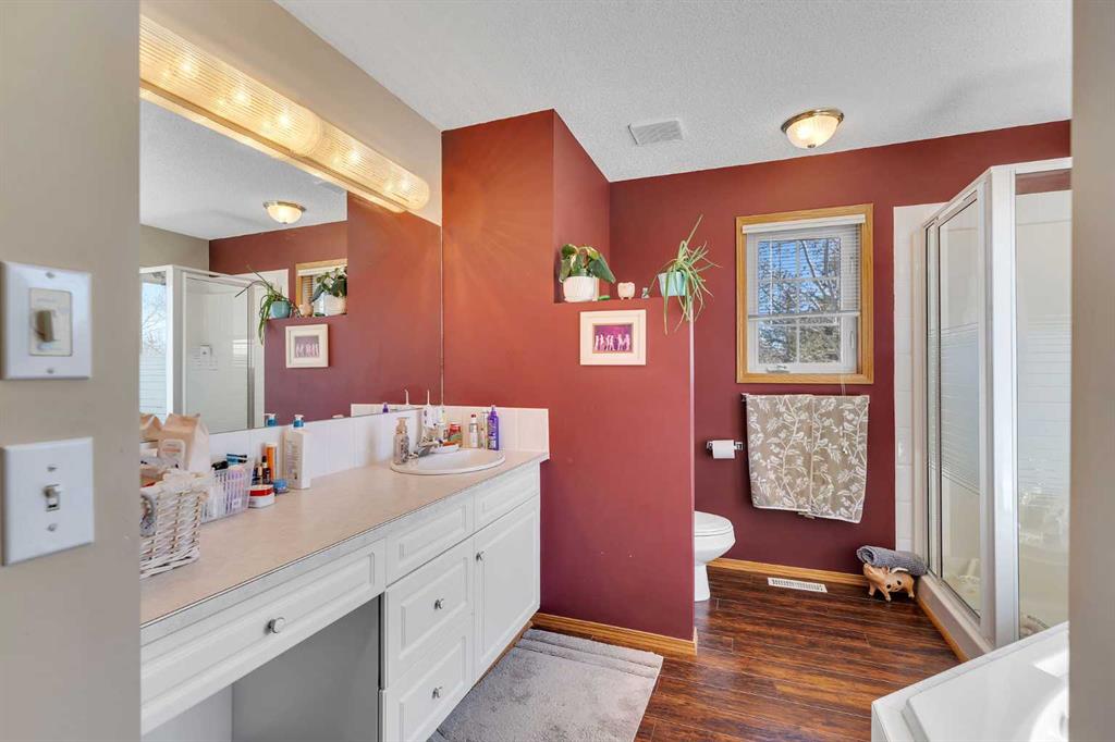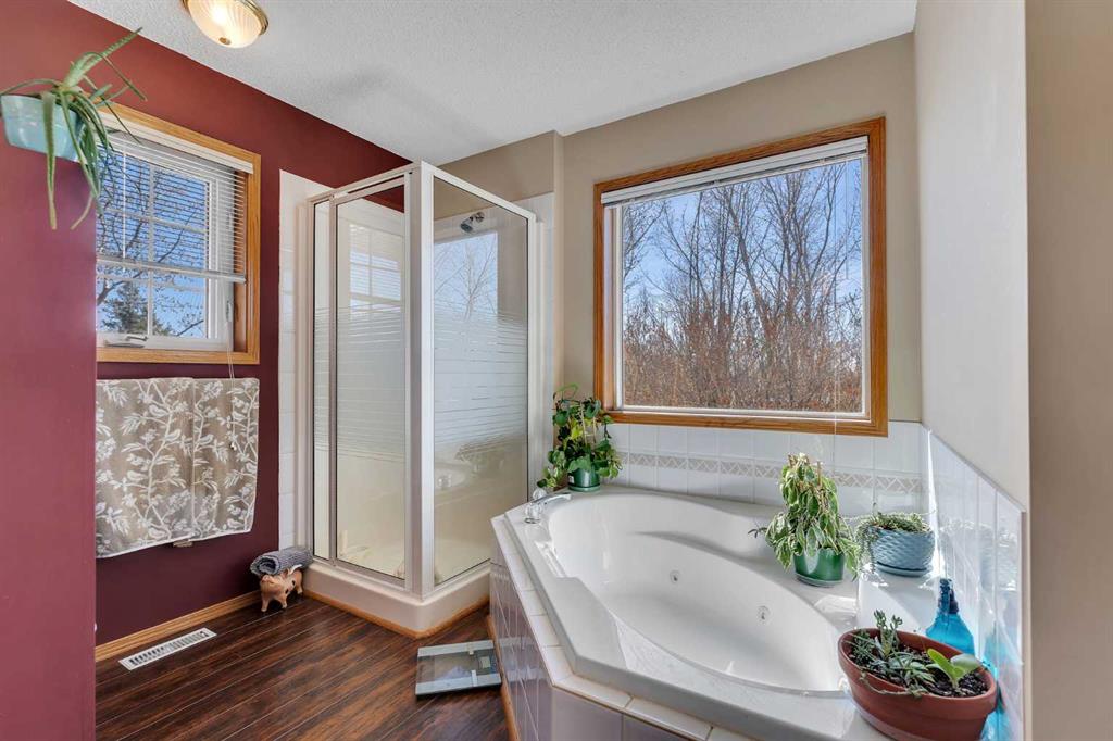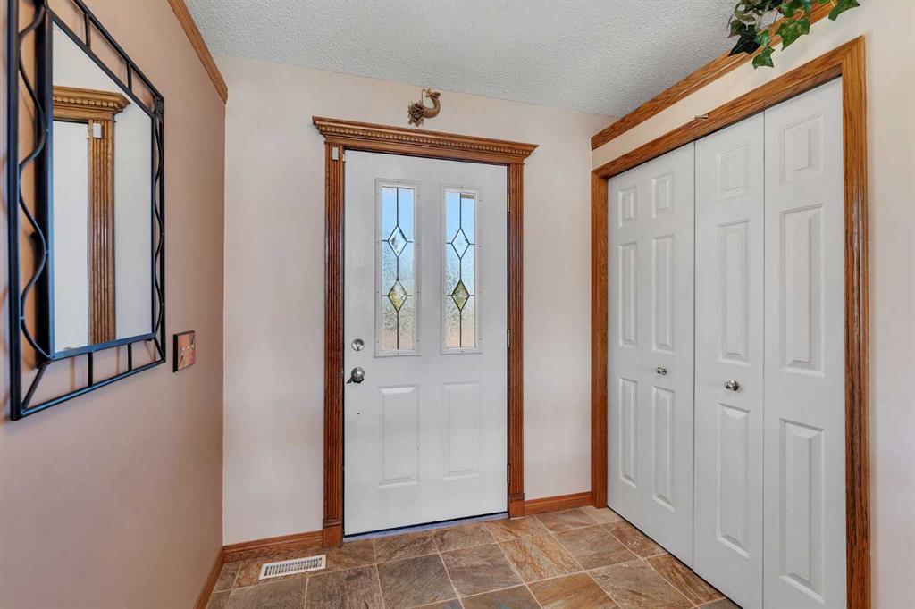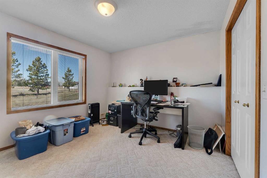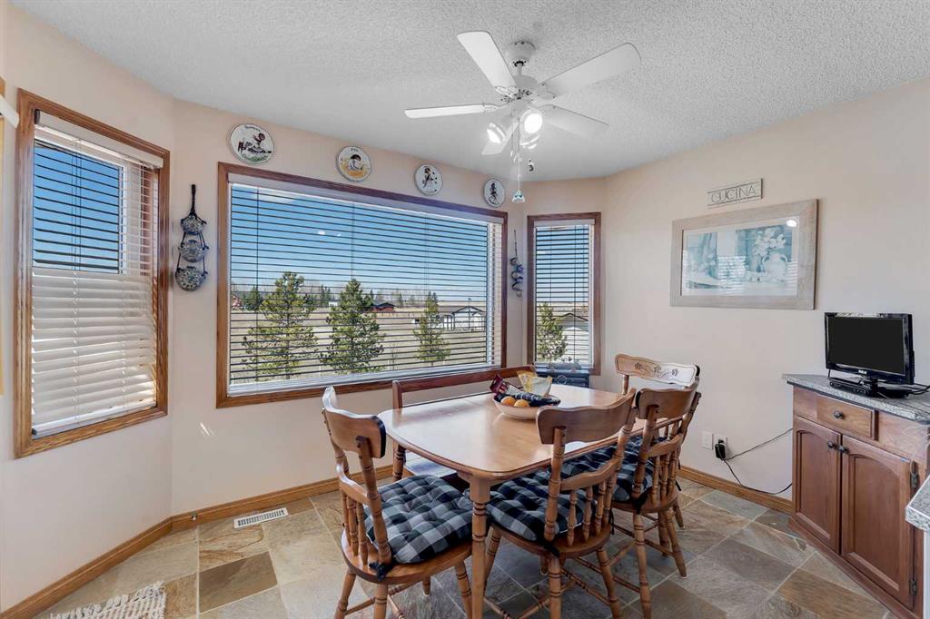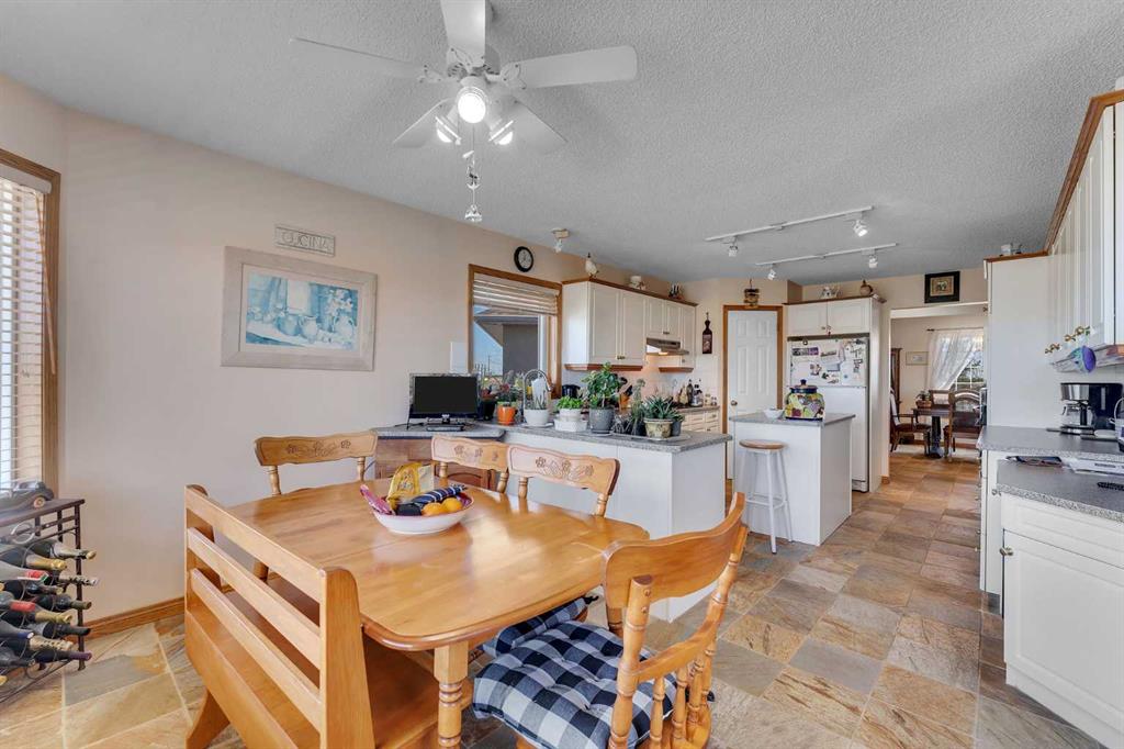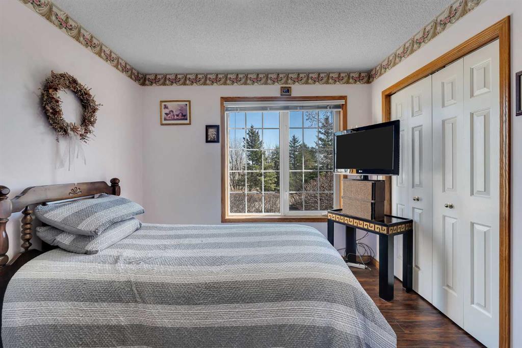 Walkout bungalow on 4 acres with a triple attached garage and over 3000 sq ft of developed living space. This is the kind of property that offers both space and flexibility—inside and out. The main floor is bright and open with high ceilings that make the entire home feel even larger. The living room is anchored by a gas fireplace and flows easily into the white kitchen, complete with ample cabinetry, generous counter space, and a sunny breakfast nook overlooking the property. A formal dining room adds the perfect spot for hosting family dinners or special occasions. There are two bedrooms on the main level, including the primary with its own ensuite, offering a comfortable and private retreat. The fully developed walkout basement expands your living space with three additional bedrooms, a large rec room, and direct access to the outdoors—ideal for guests, a growing family, or multi-generational living. Outside, the 4 acres provide endless possibilities. Enjoy the privacy, the views, and the freedom to use the land the way you want—all just a short drive from amenities.
