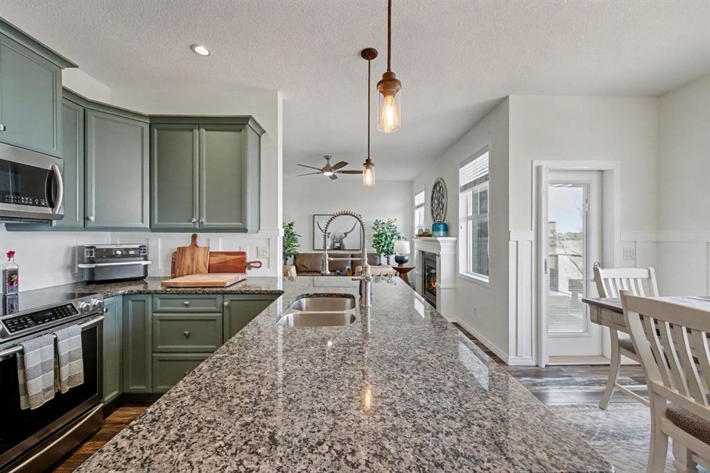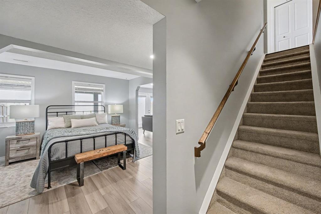 One of BEST LOCATIONS in the complex BACKING onto ENVIRONMENTAL RESERVE/GREEN SPACE, offering privacy and scenic views. This STUNNING and UPDATED home looks like a SHOWHOME – complete with a DOUBLE attached garage and a fully finished WALKOUT basement. The main floor has an open layout -perfect for entertaining guests. The kitchen is well-appointed with UPGRADES throughout such as GRANITE countertops, And STAINLESS STEEL appliances, The dining area flows into the SPACIOUS living room, which features a cozy gas FIREPLACE. You can enjoy the outdoors on the BALCONY just off the kitchen, which offers a stunning view of the ENVIRONMENTAL RESERVE. Upstairs, there are two large bedrooms , one with a full ENSUITE and the other has a large separate bonus room (that was originally a 3rd bedroom.)There is also LAUNDRY and a 4-piece bathroom. The WALKOUT basement is fully finished with NEWER vinyl plank flooring. It features a LARGE Rec room and an open 3rd bedroom ( it could easily be enclosed by adding 2 walls. There are patio doors that lead to your PATIO and FENCED yard that overlooks Greenspace- The patio downstairs is a great area for shade and entertaining. There is also ANOTHER 4-piece bathroom, and storage. This IMMACULATE home is move-in ready, with all the UPGRADES you could want. Don’t miss the opportunity to make this stunning townhome YOURS today!