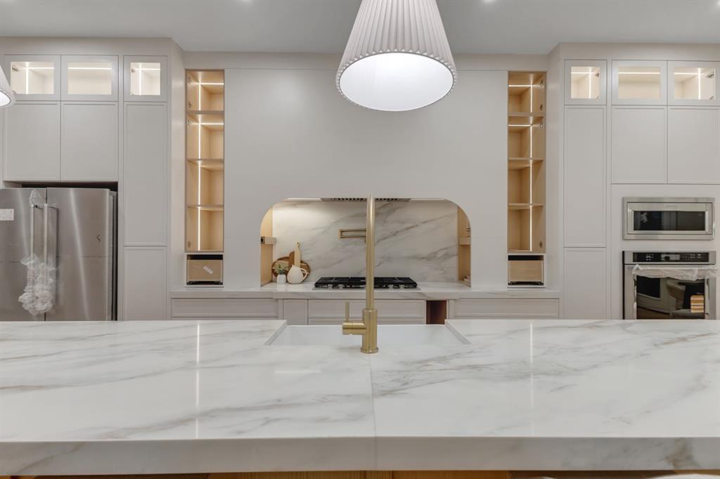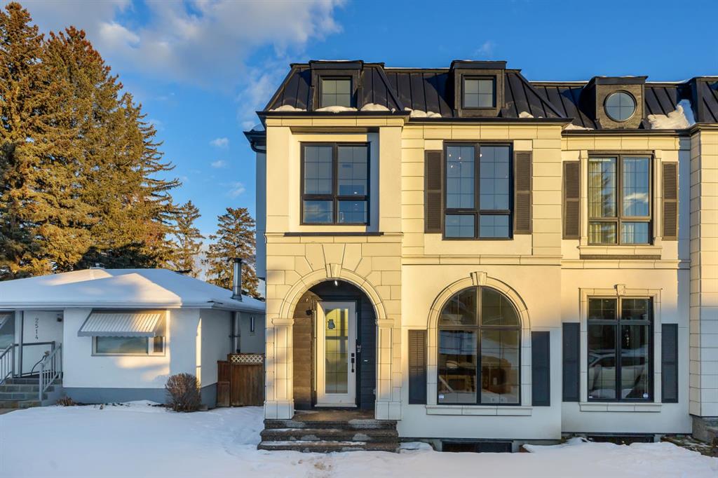 One Unit Remaining! Elegant French Chateau-Style Duplex in Richmond | Over 3,200 Sq Ft | Oversized Garage. Step into timeless sophistication with this beautifully crafted French chateau-inspired duplex, ideally located in the prestigious community of Richmond. Boasting over 3,100 sq ft of luxurious living space, this residence seamlessly blends classic charm with modern comfort. Engineered wood flooring flows throughout the main and upper levels, setting the tone for the refined finishes found throughout the home. Upstairs, you’ll find three generously sized bedrooms, each complete with walk-in closets and private ensuites.. The stunning 5-piece primary ensuite is a true retreat, offering heated floors, a steam shower, a free-standing tub, a double vanity with a custom tower, and recessed lighting to create a spa-like atmosphere. The main floor is thoughtfully designed for both work and relaxation, featuring a convenient pocket office, a chef-inspired kitchen with a massive 15-foot island and high-end Kitchen Aid appliances, and an inviting living room centered around a cozy gas fireplace. A stylish mudroom with built-in cabinetry leads to the powder room and out to your private backyard through large patio doors. The fully finished basement offers a wet bar, bedroom with a 3 pc bathroom along with a huge rec area. Situated on a rare 135-foot deep lot, the backyard is generously sized—perfect for outdoor entertaining—and complemented by a double oversized garage for added convenience. This is a one-of-a-kind home that perfectly balances elegance, comfort, and versatility in one of Calgary’s most sought-after neighbourhoods.