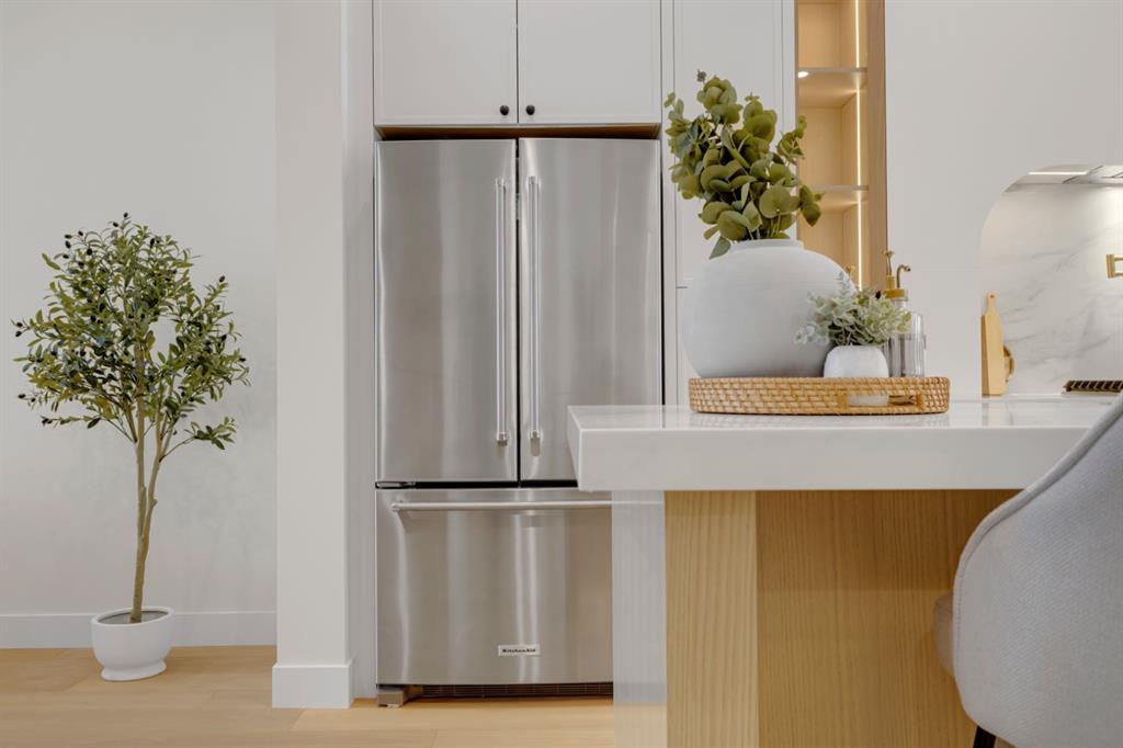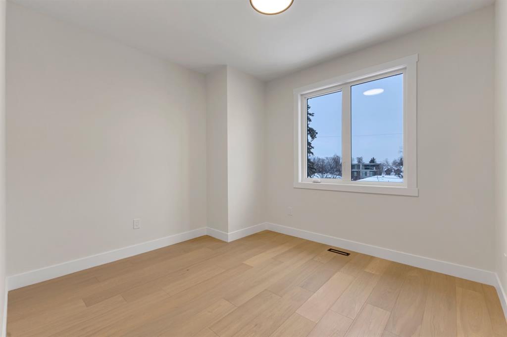 One Unit Remaining! Elegant French Chateau-Style Duplex in Richmond | Over 3,100 Sq Ft | Oversized Garage. Step into timeless sophistication with this beautifully crafted French chateau-inspired duplex, ideally located in the prestigious community of Richmond. Boasting over 3,100 sq ft of luxurious living space, this residence seamlessly blends classic charm with modern comfort. Engineered wood flooring flows throughout the main and upper levels, setting the tone for the refined finishes found throughout the home. Upstairs, you’ll find three generously sized bedrooms, each complete with walk-in closets and private ensuites.. The stunning 5-piece primary ensuite is a true retreat, offering heated floors, a steam shower, a free-standing tub, a double vanity with a custom tower, and recessed lighting to create a spa-like atmosphere. The main floor is thoughtfully designed for both work and relaxation, featuring a convenient pocket office, a chef-inspired kitchen with a massive 15-foot island and high-end Kitchen Aid appliances, and an inviting living room centered around a cozy gas fireplace. A stylish mudroom with built-in cabinetry leads to the powder room and out to your private backyard through large patio doors. The fully finished basement offers a wet bar, bedroom with a 3 pc bathroom along with a huge rec area. Situated on a rare 135-foot deep lot, the backyard is generously sized—perfect for outdoor entertaining—and complemented by a double oversized garage for added convenience. This is a one-of-a-kind home that perfectly balances elegance, comfort, and versatility in one of Calgary’s most sought-after neighbourhoods.
