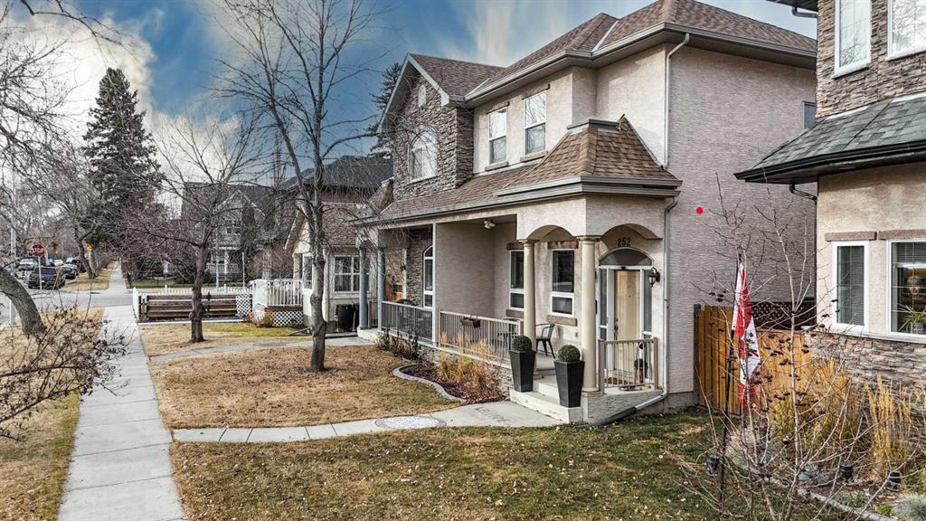 Pride of ownership! I am pleased to present this original owner & exceptional semi-detached home located in the heart of Tuxedo. Situated directly across from the Balmoral School field, this unique 2004-built property offers partial downtown views and sits just minutes from the city center, public transit, and the new Balmoral Circus Park. The home’s exterior features a stylish blend of stucco and stone, complemented by a covered front porch and a professionally landscaped, fenced backyard with a spacious deck and stone patio. Inside, the main level is defined by beautiful hardwood flooring, 10-foot ceilings in the front living room, and a custom-built curved staircase with integrated lighting.
