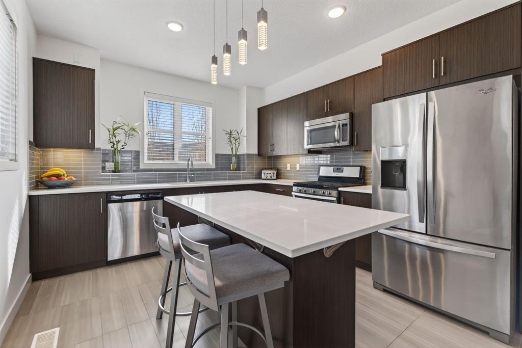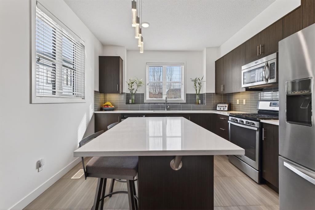 OPEN HOUSE SATURDAY MARCH 7TH 2PM-4PM. Welcome to this stylish and well-maintained 3-bedroom, 2.5-bathroom townhouse located in the vibrant community of Walden. Built in 2015 and thoughtfully designed for modern living, this inner-loop end unit offers added privacy while facing a quiet green space — creating a peaceful setting just steps from everyday conveniences. The bright and open main level features a contemporary layout perfect for both daily living and entertaining. Large windows allow natural light to fill the living room, while the modern kitchen showcases sleek cabinetry, quartz countertops, stainless steel appliances including a gas range, and ample counter space for cooking and gathering. The dining area flows seamlessly to the private balcony, creating a great space to enjoy morning coffee or relax in the evening. Upstairs, the home offers three comfortable bedrooms, including a spacious primary retreat complete with its own private ensuite bathroom. Two additional bedrooms and a full bathroom provide flexibility for family, guests, or a home office. The lower level provides access to the double attached garage, offering secure parking and excellent storage, along with the added convenience of an additional outdoor parking stall. One of the standout features of this home is its exceptional location. Residents will appreciate being just a short walk to the Township shopping area, with restaurants, groceries, cafés, and everyday amenities nearby. Outdoor enthusiasts will love the nearby parks, pathways, and green spaces, perfect for walking, biking, or enjoying the outdoors. Commuting is also easy with convenient access in and out of the community and quick connections to major routes. Offering modern design, functional living space, and a fantastic location, this home is an excellent opportunity to enjoy comfortable townhouse living in one of Calgary’s sought-after south communities.