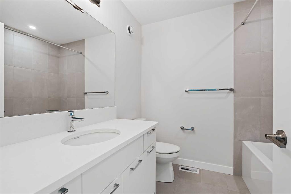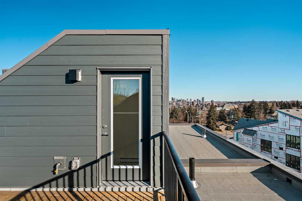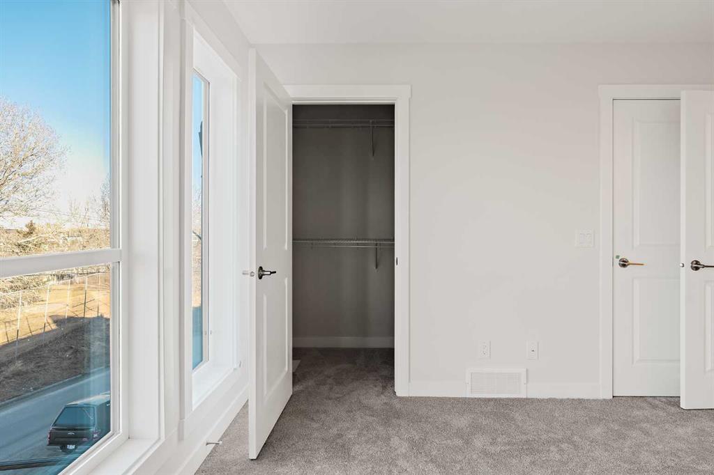 Welcome to The Alameda by Brookfield Residential – where modern design meets urban convenience, just minutes from downtown Calgary with stunning views! This beautiful 2-bedroom, 2.5-bathroom townhome offers over 1,500 sq. ft. of thoughtfully designed living space, complete with a single attached garage and a spacious main-level flex room – perfect for a home office, gym, or creative studio + 3 outdoor living spaces including a rooftop patio! The lower level features an expansive flex room spanning ~14’x14′ with soaring 10′ ceilings and a wall of windows overlooking your private patio and the front street. Experience open-concept living on the main level highlighted by 9’ ceilings throughout with oversized triple-pane windows at either end providing endless natural light all year long. The kitchen is a chef’s dream, featuring KitchenAid gourmet appliances, including a gas cooktop, wall oven/microwave, and a chimney hood fan, all complemented by elegant finishes and generous counter space and a pantry. The timeless white kitchen is central to the main level, opening to both the dining area and great room, creating the ideal space for entertaining. The great room has direct access to the main level balcony that spans 15′ x 9’8″ and includes a BBQ gas line for everyday convenience. The upper level features a large primary suite complete with walk-in closet and a private 4pc ensuite with dual sinks and a tiled walk-in shower. A large second bedroom, full bathroom and laundry complete the upper level. The top level of the home is where you’ll spend your summers – soaking up the sun on your private ~200 ft2 rooftop patio with views overlooking the Shaganappi golf course and stunning views to the south and downtown Calgary! Complete with 2 living areas, 2 bedrooms, 2.5 bathrooms and 3 outdoor living spaces + a private attached garage, this home is perfect for professionals or down-sizers that appreciate convenience. Located away from Bow Trail, this premium location offers a quiet space for daily living with convenient access to the CTrain and downtown Calgary just minutes away. Additional features include convenient street parking in front, and full builder warranty + Alberta New Home Warranty – allowing you to purchase with peace of mind. This maintenance-free home is fully move-in ready with free legal fees for the purchaser in desirable Crown Park!