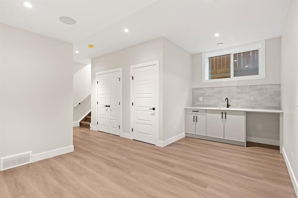 A rare offering in West Hillhurst, this brand-new semi-detached home features a highly sought-after front attached double garage and backs directly onto tranquil greenspace. Spanning over 2,200 square feet, the home offers four bedrooms and three and a half bathrooms with a layout designed for both luxury and functionality. The main floor is bright and thoughtfully designed, highlighted by a front-facing south-exposed office with oversized windows that flood the space with natural light, ideal for working from home. The open living and dining areas are anchored by a chef-inspired kitchen with premium appliances, custom cabinetry, and an oversized island, while folding patio doors off the living room seamlessly open to a large rear deck overlooking the greenspace, creating an exceptional indoor-outdoor living experience. Upstairs, the south-exposed primary retreat is filled with natural light and features a spa-like ensuite, walk-in closet, and a private balcony, while two additional bedrooms, a full bathroom, upper-level laundry, and a versatile loft space complete the second level. The fully developed lower level adds even more living space with a generous recreation room, fourth bedroom, and full bath. Ideally located steps from parks, river pathways, schools, and the vibrant amenities of Kensington, with quick access to downtown, the University of Calgary, SAIT, and Foothills Hospital, this home delivers a rare combination of luxury, light-filled design, and an exceptional inner-city lifestyle. Call today to book your tour!