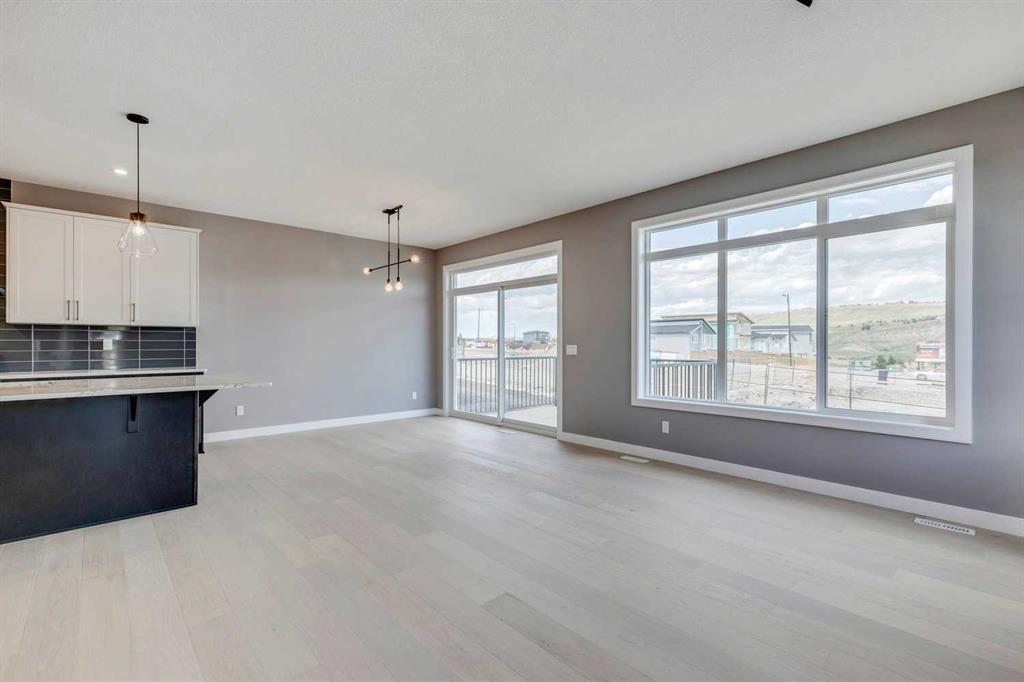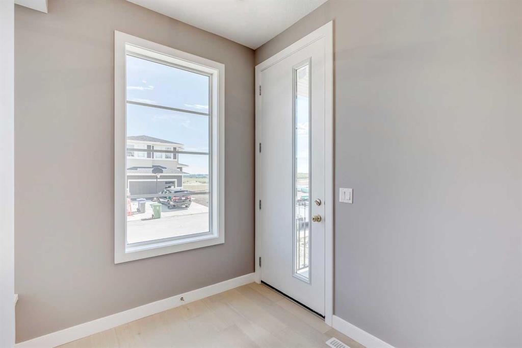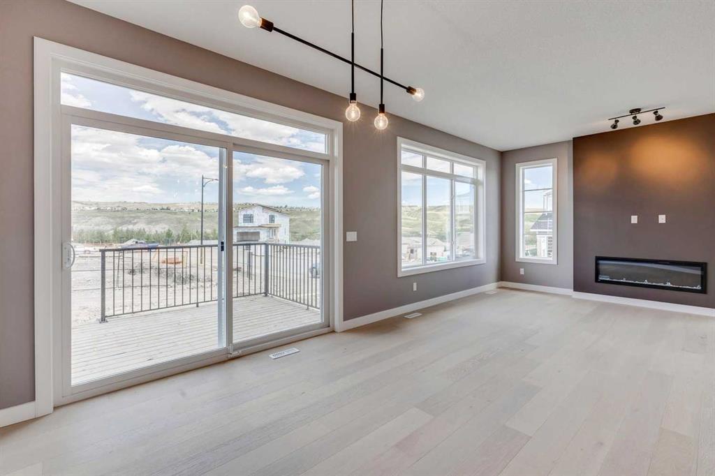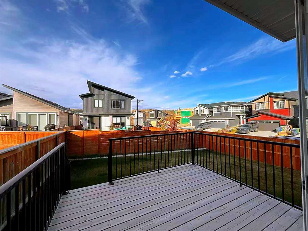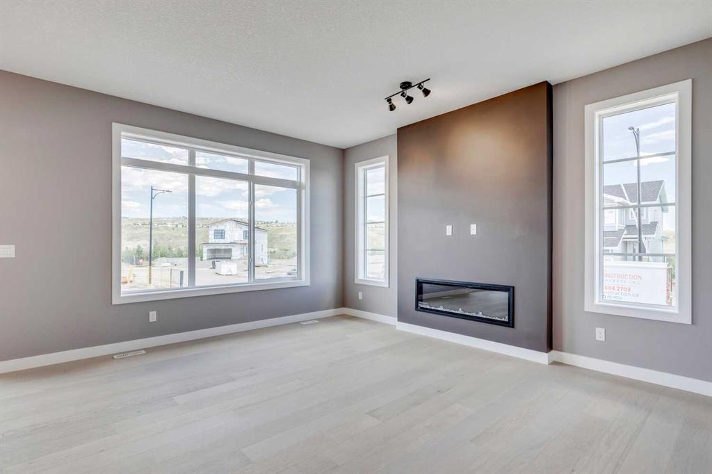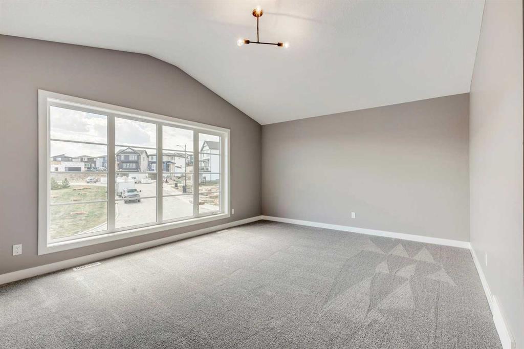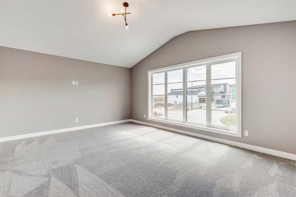 Please enjoy a virtual tour of this immaculate and beautifully designed home, ideally situated in one of Cochrane’s most convenient and sought-after neighbourhoods! Located on a large corner lot directly across from central Reindeer Park, this spacious 3-bedroom, 2.5-bath home offers over 2,000 sq ft of stylish and comfortable living space—perfect for larger or upscaling families. From the moment you step through the grand 8′ front door, you’ll be greeted by soaring 9′ ceilings, oversized windows, and gleaming hardwood floors that flow throughout the foyer, hallway, great room, kitchen, and nook—creating a warm and elegant atmosphere. The open floor plan enhances the sense of space and flow, ideal for both everyday living and entertaining. The stunning kitchen features dual-colour quartz countertops and cabinetry, a tiled walk-through pantry connecting to the mudroom, stainless steel appliances including a self-cleaning gas range, a built-in microwave, and a dishwasher. A spacious great room anchored by a sleek Napoleon Alluravision fireplace adds a cozy yet modern touch. Upstairs, the generous master bedroom includes a luxurious 5-piece ensuite with dual quartz vanities, undermounted sinks, a deep soaker tub beneath a bright window, and an oversized tiled shower. A large, separate walk-in closet provides ample space. The upper floor also boasts a forward-facing bonus room with a dramatic two-sided vaulted ceiling, two additional good-sized bedrooms with double-door closets, a main bath with quartz countertops, and a bright upper-floor laundry room with linen storage and tiled flooring. This home sits on a quiet street in a family-friendly area, less than 5 minutes from elementary, junior high, and high schools, and under 8 minutes to grocery stores, parks, coffee shops, and restaurants. With easy access to downtown Calgary (just 40 minutes away) and the Tuscany LRT station (only 25 minutes away), convenience is at your doorstep. Beautiful, elegant, and functional—this home has it all. Book your private showing today!