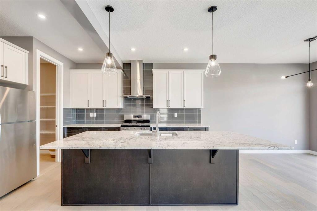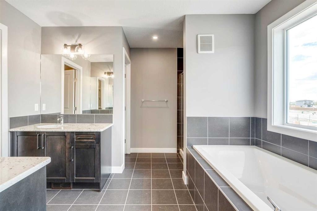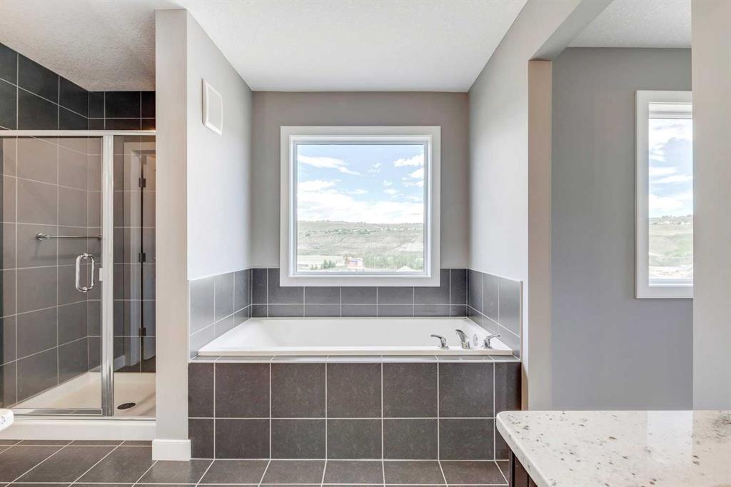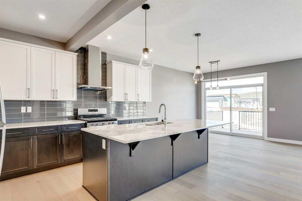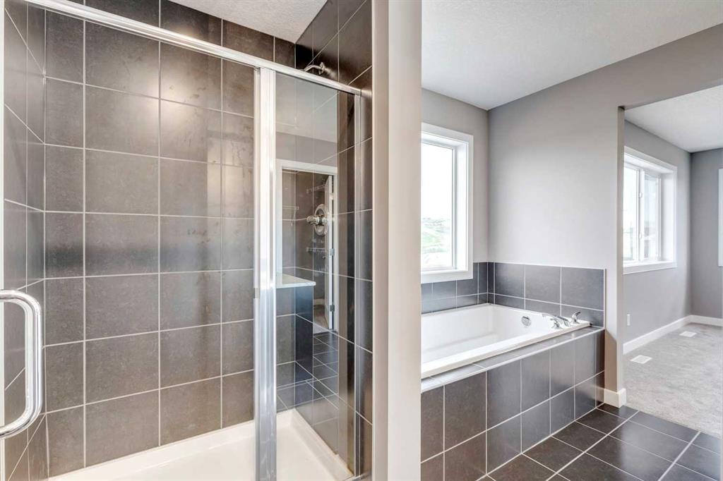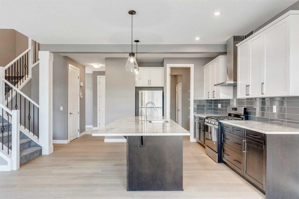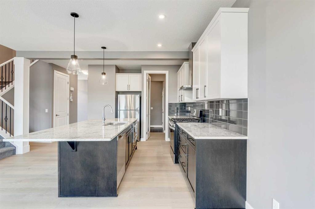 Please enjoy a virtual tour of this immaculate and beautifully designed home, ideally situated in one of Cochrane’s most convenient and sought-after neighbourhoods! Located on a large corner lot directly across from central Reindeer Park, this spacious 3-bedroom, 2.5-bath home offers over 2,000 sq ft of stylish and comfortable living space—perfect for larger or upscaling families. From the moment you step through the grand 8′ front door, you’ll be greeted by soaring 9′ ceilings, oversized windows, and gleaming hardwood floors that flow throughout the foyer, hallway, great room, kitchen, and nook—creating a warm and elegant atmosphere. The open floor plan enhances the sense of space and flow, ideal for both everyday living and entertaining. The stunning kitchen features dual-colour quartz countertops and cabinetry, a tiled walk-through pantry connecting to the mudroom, stainless steel appliances including a self-cleaning gas range, a built-in microwave, and a dishwasher. A spacious great room anchored by a sleek Napoleon Alluravision fireplace adds a cozy yet modern touch. Upstairs, the generous master bedroom includes a luxurious 5-piece ensuite with dual quartz vanities, undermounted sinks, a deep soaker tub beneath a bright window, and an oversized tiled shower. A large, separate walk-in closet provides ample space. The upper floor also boasts a forward-facing bonus room with a dramatic two-sided vaulted ceiling, two additional good-sized bedrooms with double-door closets, a main bath with quartz countertops, and a bright upper-floor laundry room with linen storage and tiled flooring. This home sits on a quiet street in a family-friendly area, less than 5 minutes from elementary, junior high, and high schools, and under 8 minutes to grocery stores, parks, coffee shops, and restaurants. With easy access to downtown Calgary (just 40 minutes away) and the Tuscany LRT station (only 25 minutes away), convenience is at your doorstep. Beautiful, elegant, and functional—this home has it all. Book your private showing today!
