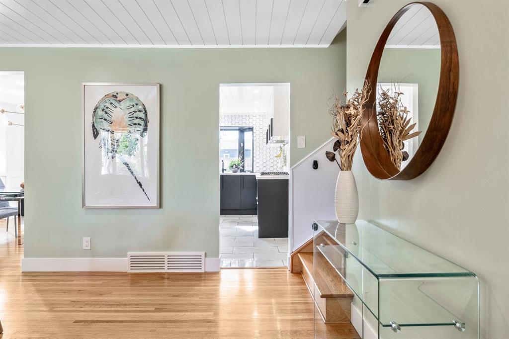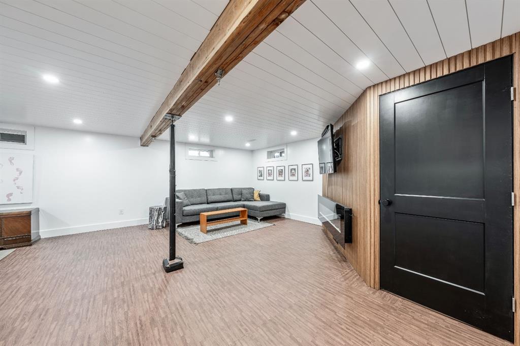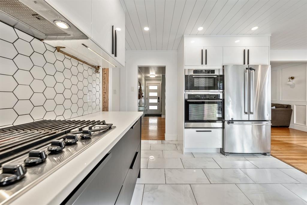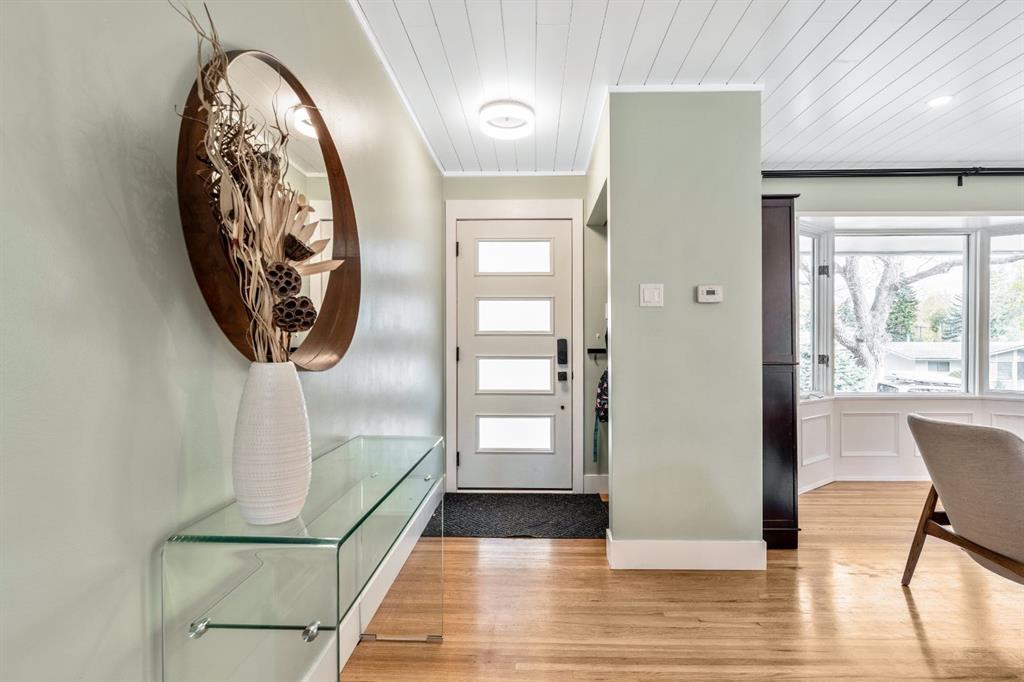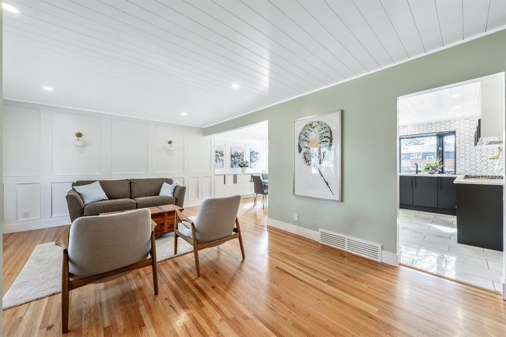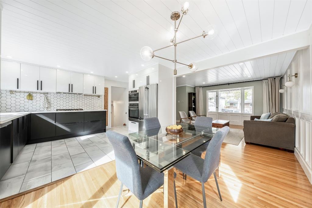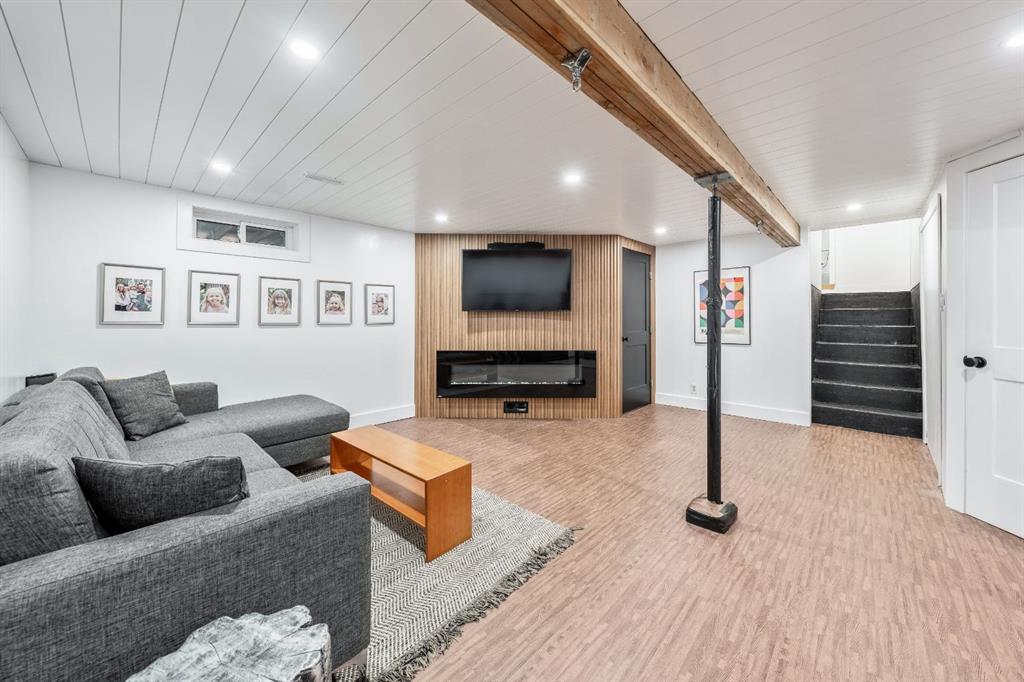 **OPEN HOUSE Saturday October 4 from 1-3 PM** Charleswood Charmer with Updates! | Nestled on a peaceful, tree-lined street right in the heart of Charleswood, this beautifully updated four-level split is the perfect mix of charming character, modern convenience, and a welcoming, family-friendly community. With over 1,950 square feet of thoughtfully developed space, this home has been lovingly upgraded over the years to be both warm and stylish, and mechanically efficient. Step inside and you’ll be greeted by gorgeous hardwood floors, rustic shiplap ceilings and wood panelled walls, and a bright, open-plan living space that feels inviting and effortlessly livable. The sleek designer kitchen is a dream for busy family life, with two-tone modern cabinetry, quartz countertops, stainless steel appliances, and plenty of counter space. The adjacent dining and living areas are both spacious and flexible, filled with natural light that creates a cheerful and homey vibe. Upstairs, you’ll find three comfortable bedrooms and a beautifully updated family bathroom. The lower level has a versatile fourth bedroom (or home office) along with an updated three-piece bathroom and fabulous dual purpose laundry-mudroom that keeps everything organized and the mess at bay. Check out the cozy family room in the lower level, with a stylish electric fireplace complimented by a wooden slat wall, and additional flexible space that’s perfect as a play space or exercise area. Out back, the south facing backyard feels like your own private oasis—complete with mature, fruit-bearing trees, lush landscaping, and enough space for outdoor fun and entertaining. The home also features a heated double detached garage in addition to the single attached garage, giving you plenty of parking and storage options. Located in one of Calgary’s most desirable NW neighbourhoods, you’re just minutes from the University, K-9 schools, parks, pathways, and all the amenities you could need. Don’t miss your chance to own this beautifully updated charmer in ever-popular Charleswood!