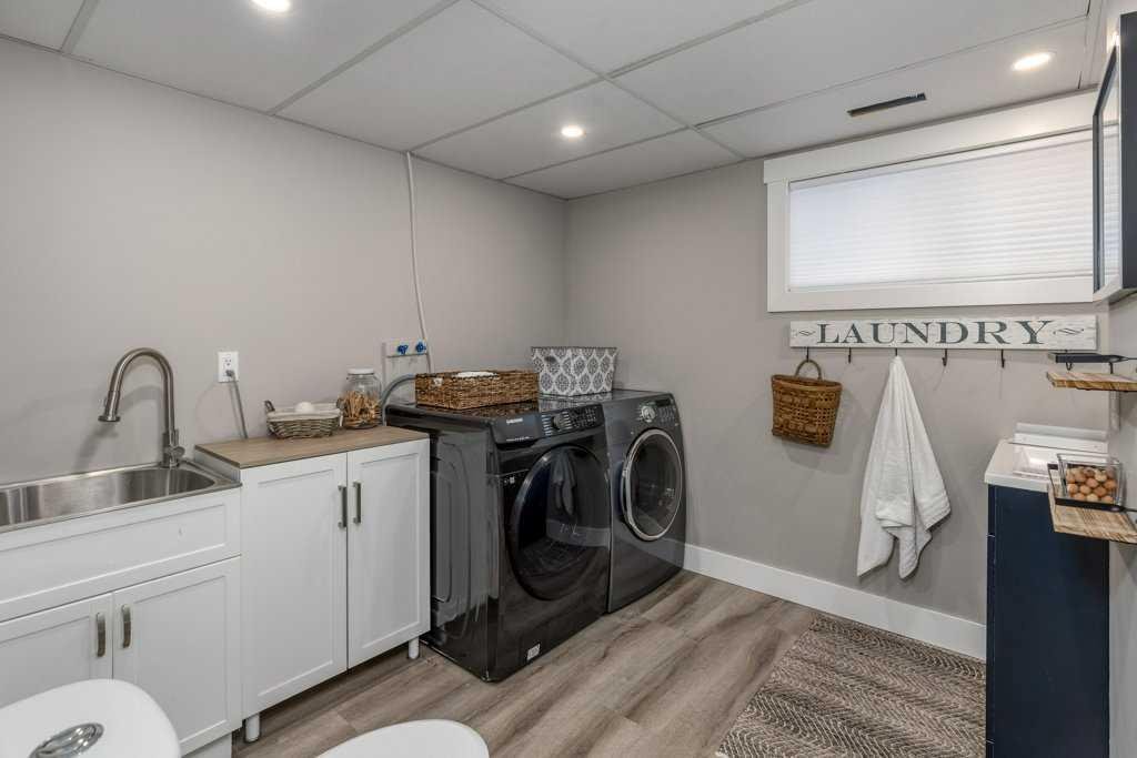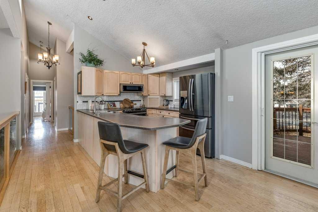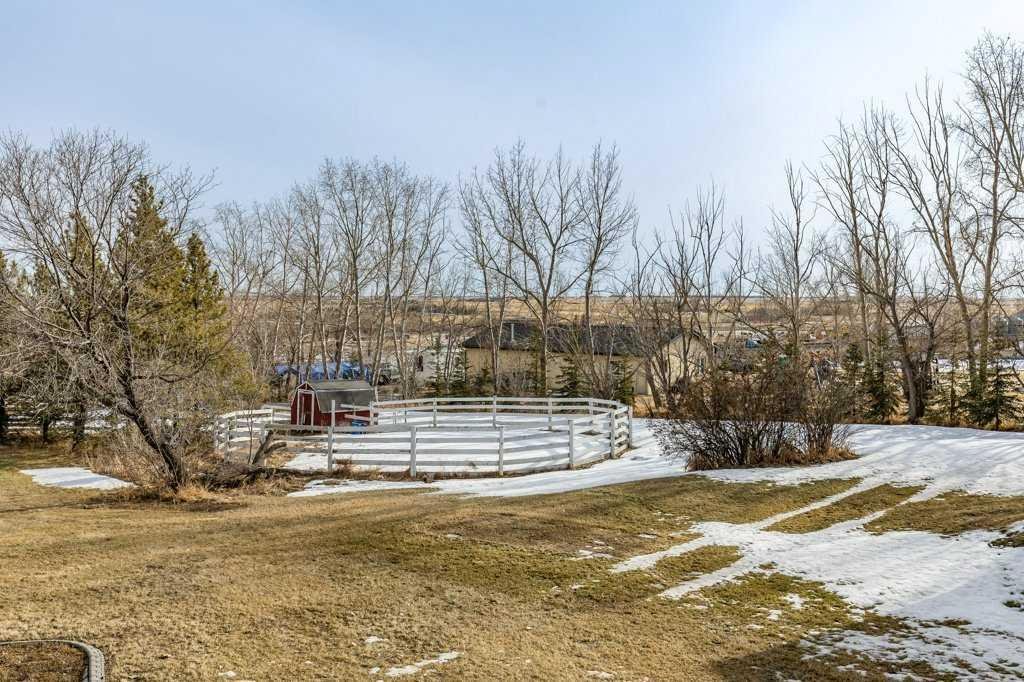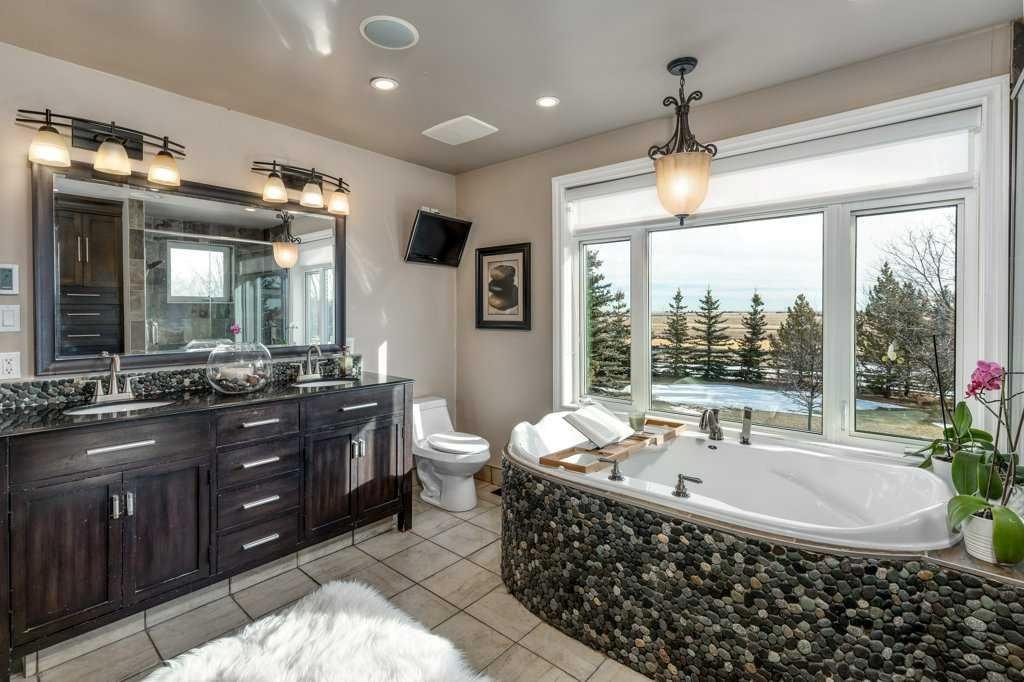 Experience the best of acreage living just minutes from Calgary city limits on this picturesque 4.28-acre property featuring a beautifully updated home full of character. The unique split-level design offers three bedrooms on the main level, including a spacious primary suite complete with a luxurious ensuite showcasing heated floors, a soaker tub, double sinks, and abundant built-in storage. Vaulted ceilings and hardwood flooring enhance the main living areas, while the sunken family room creates a warm and inviting space with a gas fireplace and direct access to the outdoors.